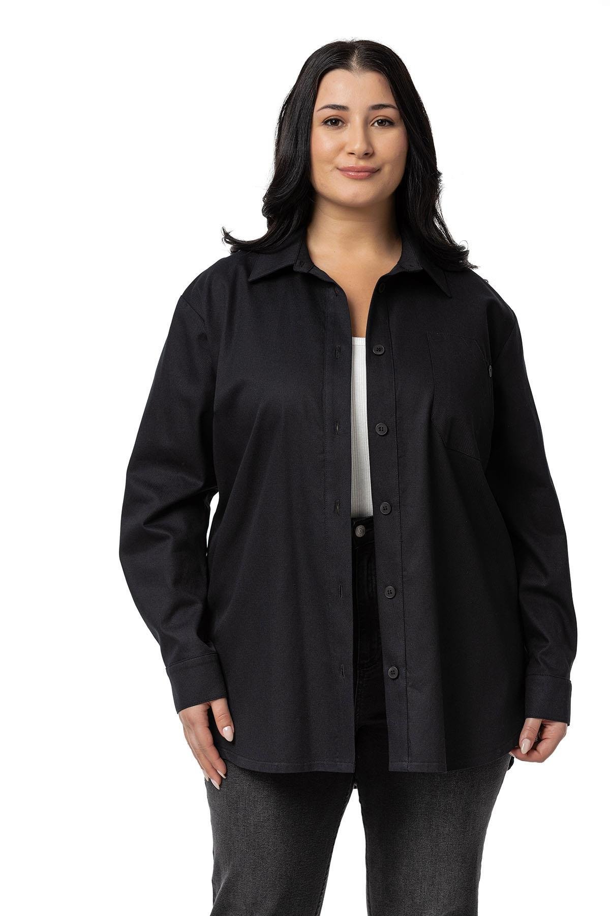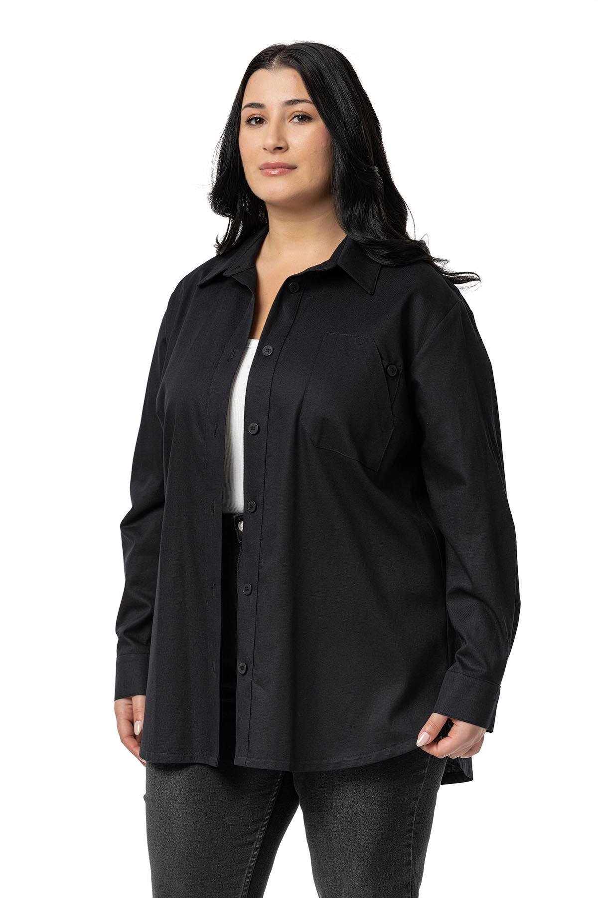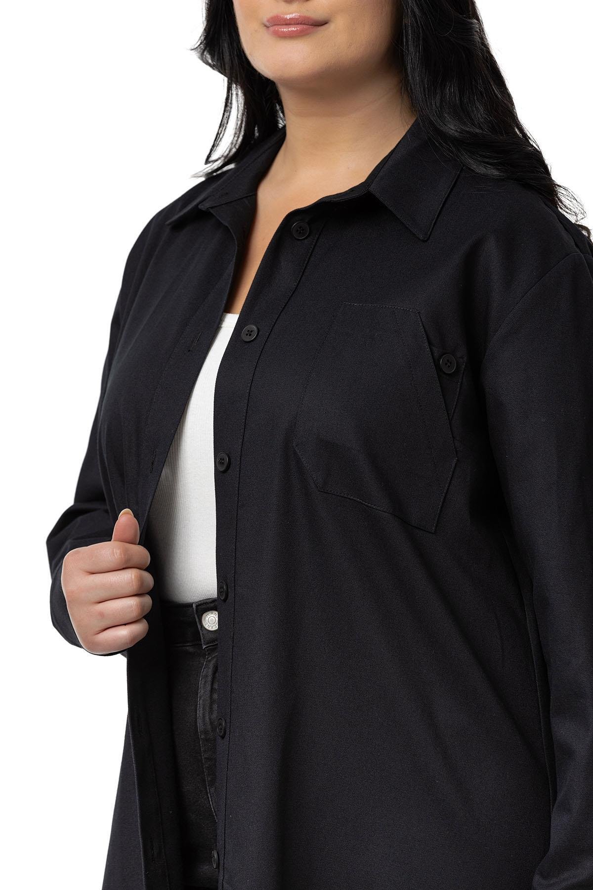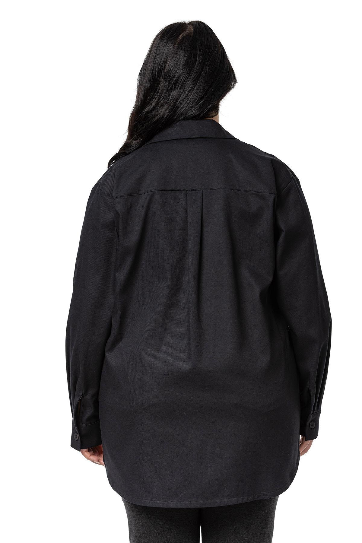 Büyük beden cep detaylı gabardin sırtta plikaşe detaylı manşetli uzun kollu ceket gömlek.