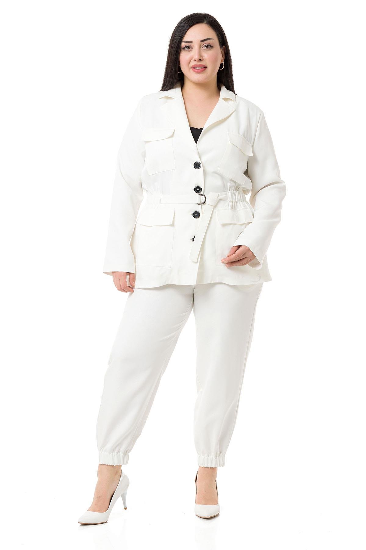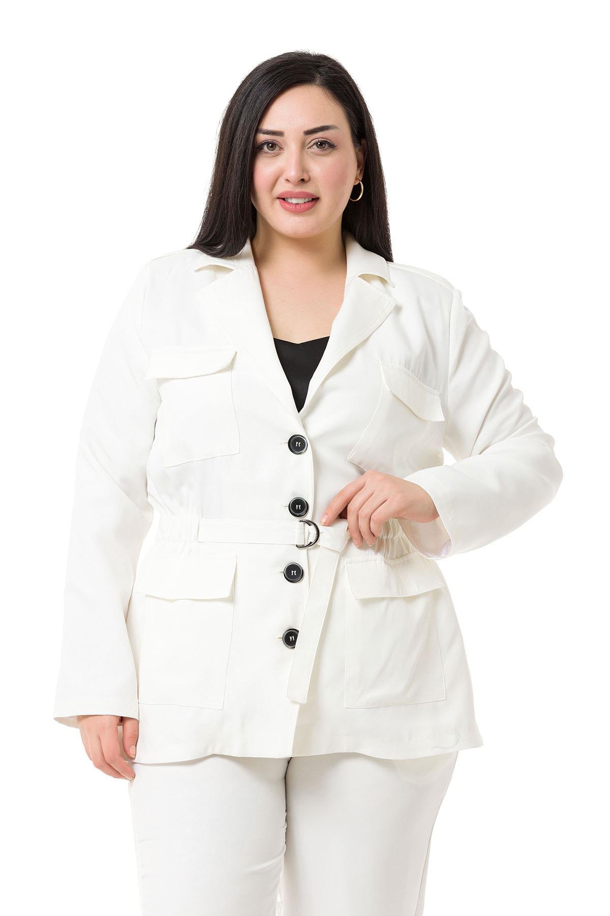 Büyük beden beli lastikli kendinden kemer detaylı omuzları apoletli cepli astarlı ceket.
