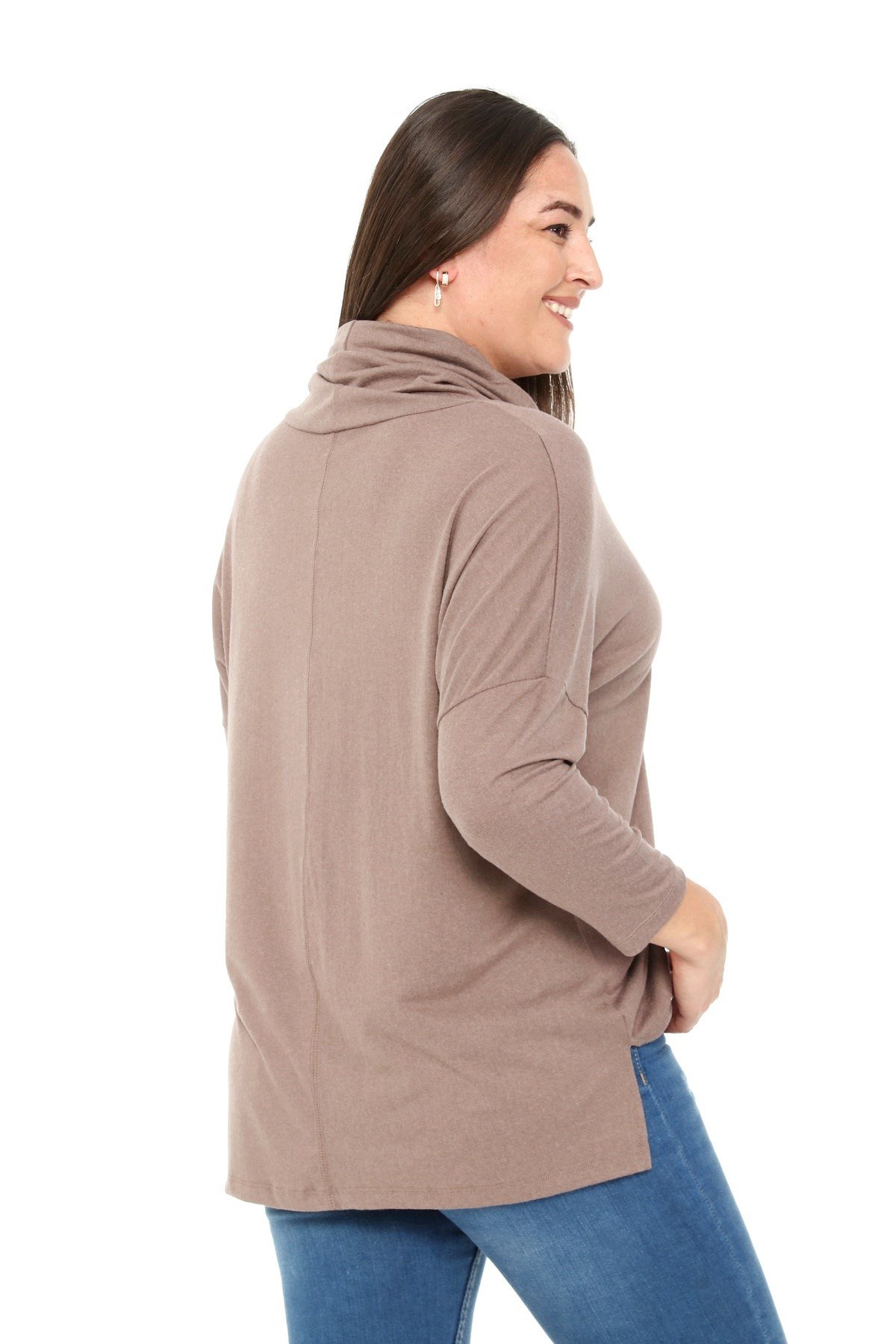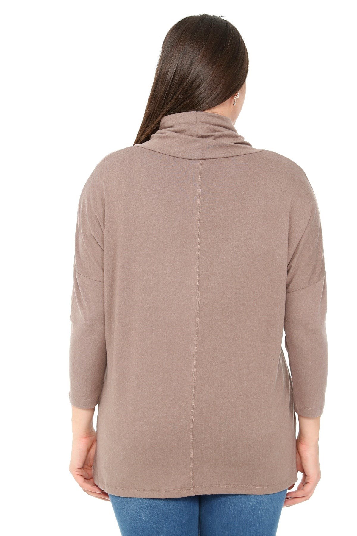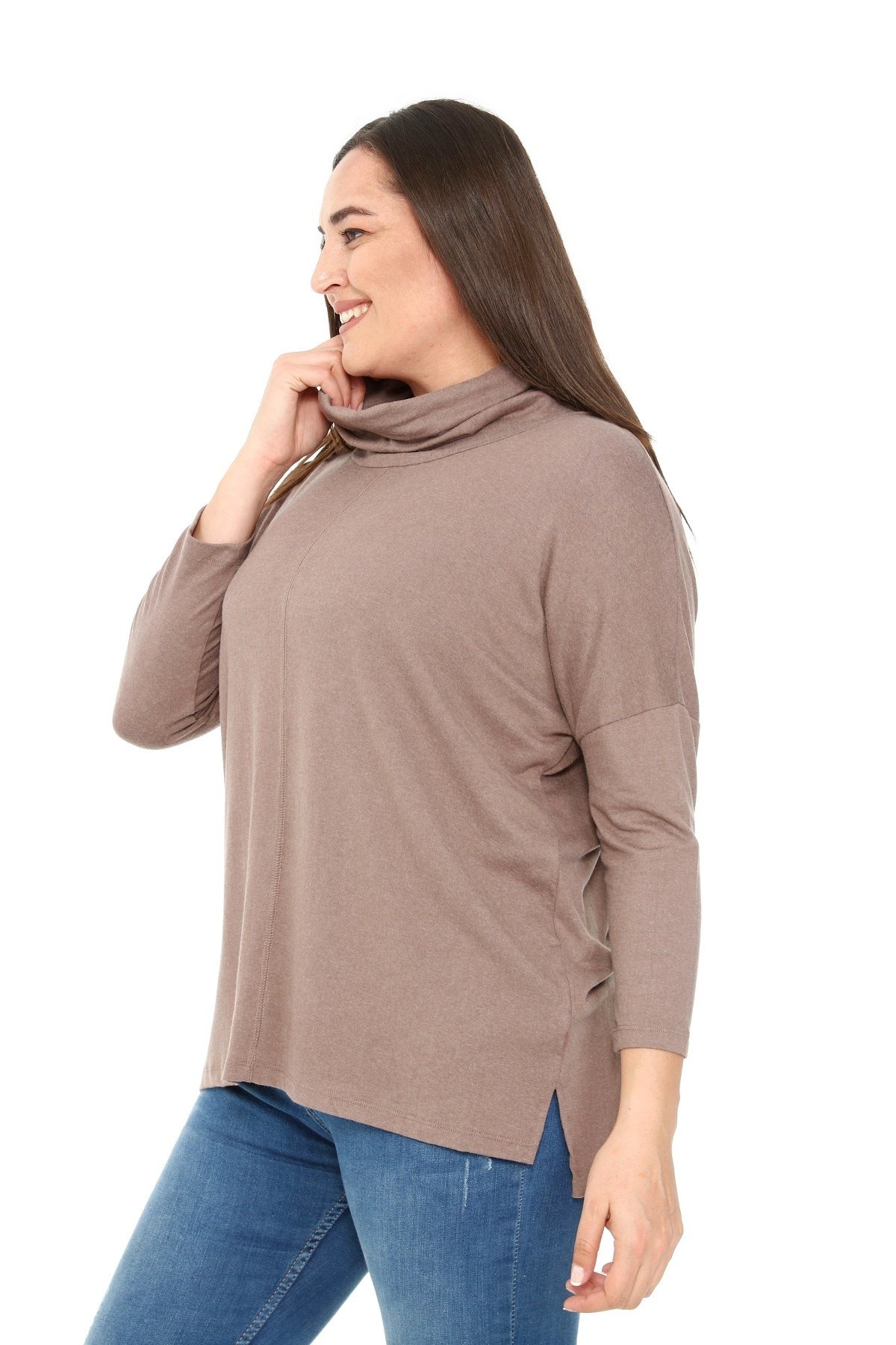 Büyük beden degaje yaka yırtmaç detaylı yün viskon bluz.