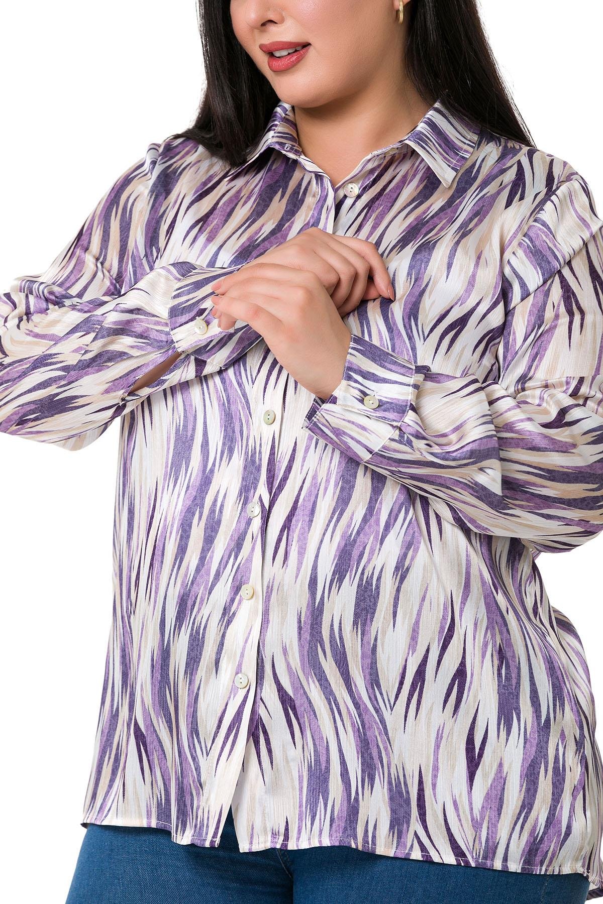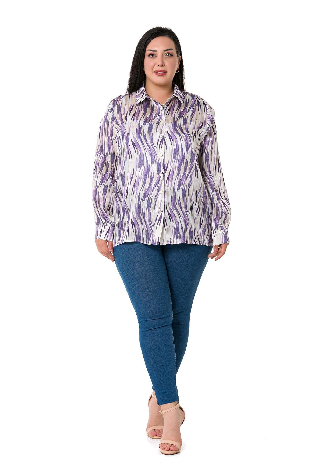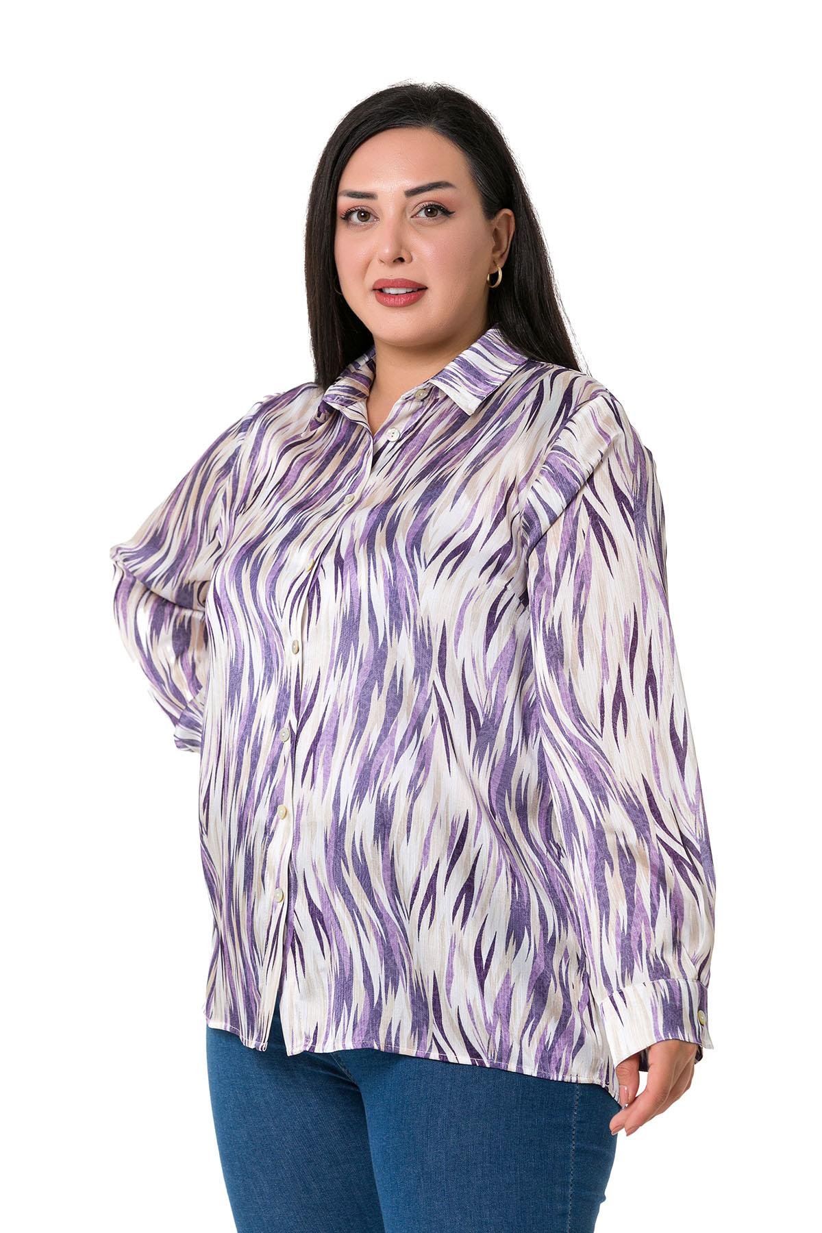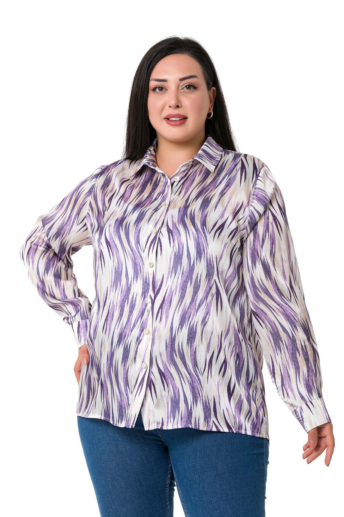 Büyük beden manşetli desenli yoryo saten gömlek.