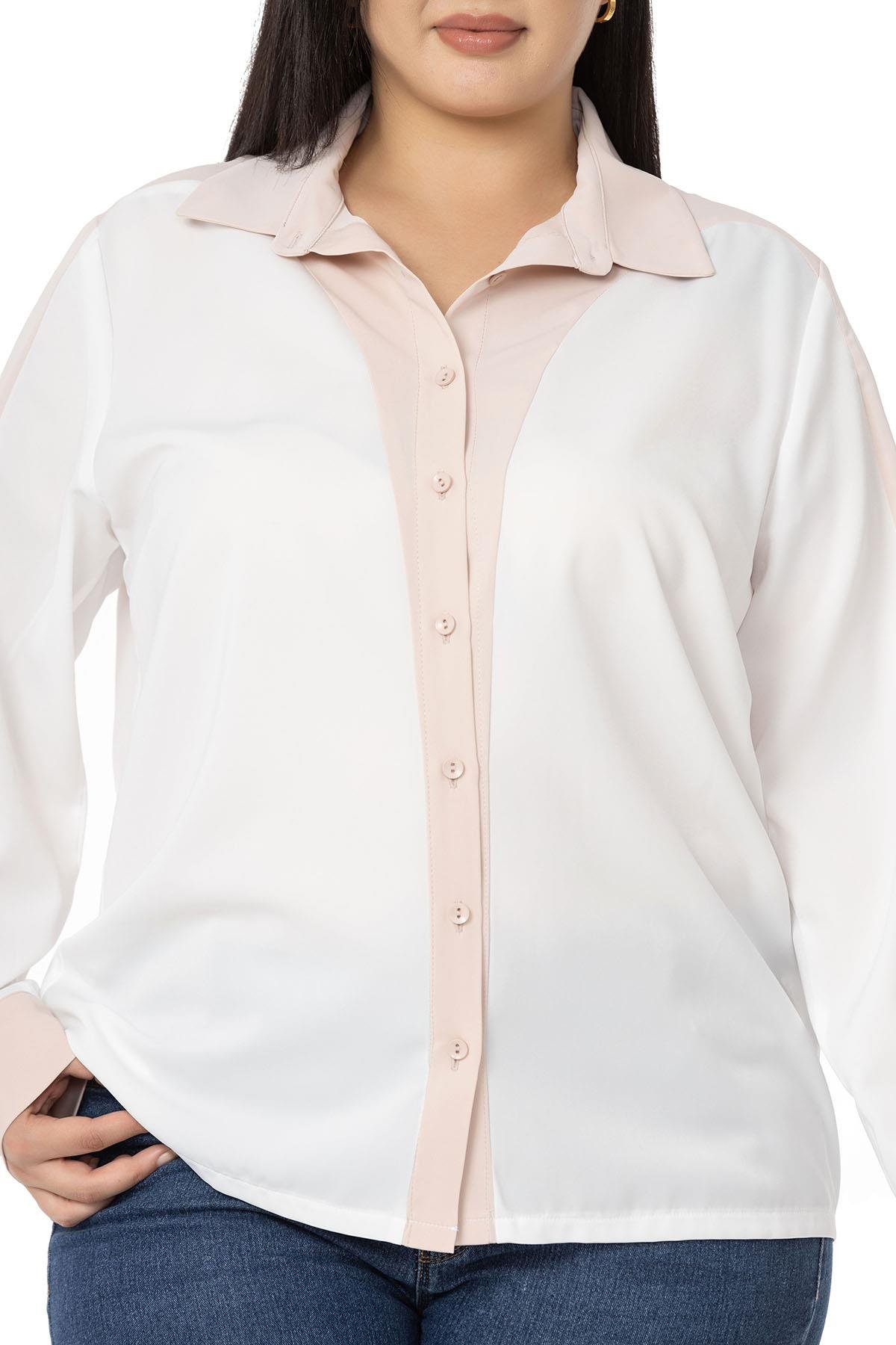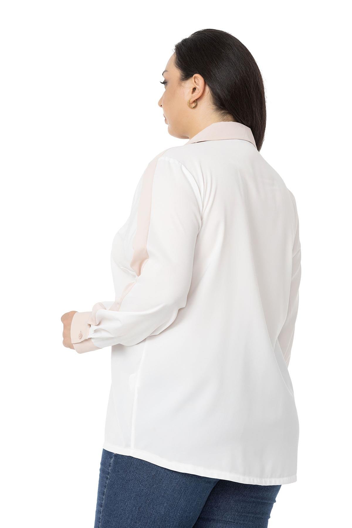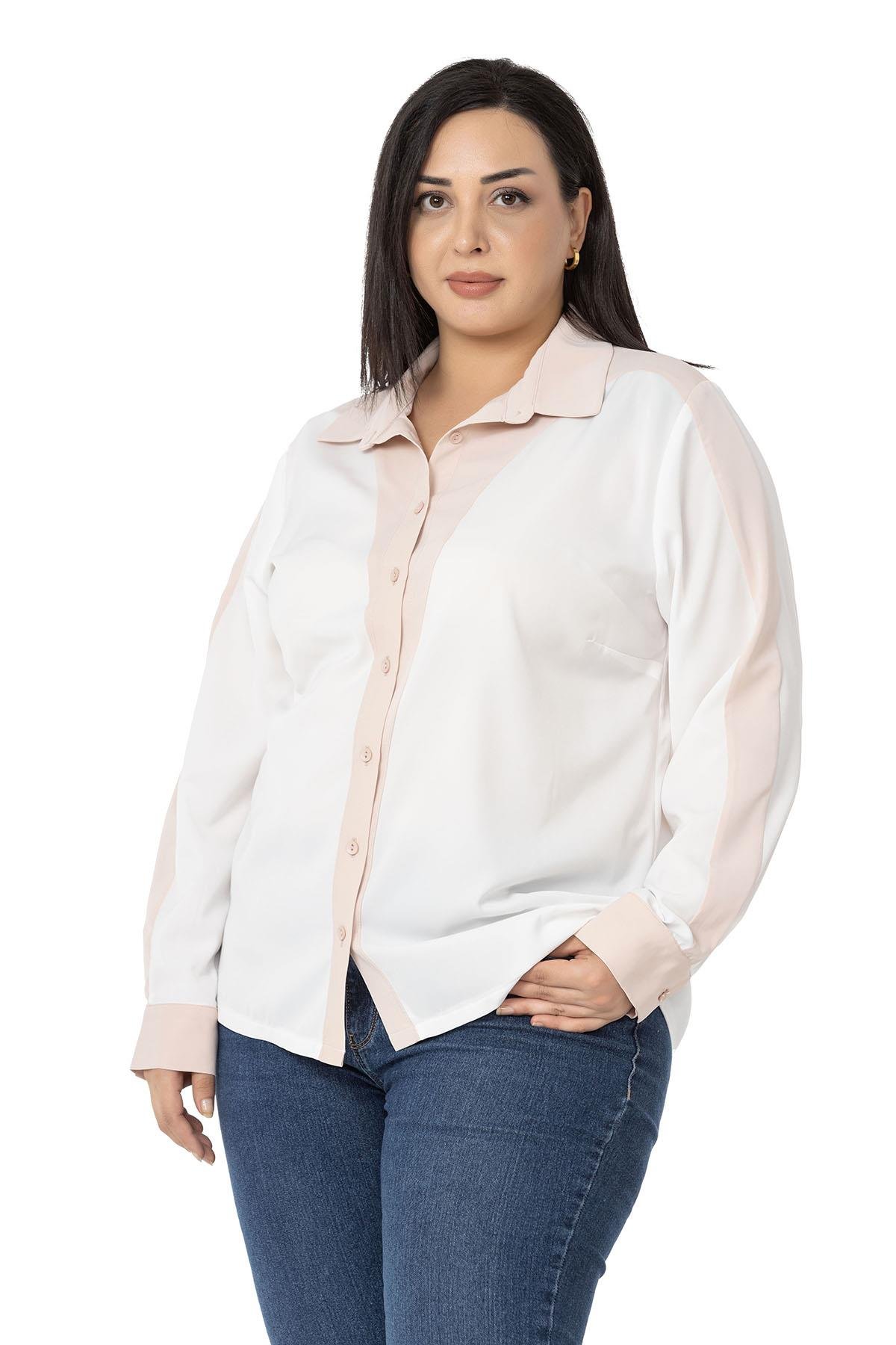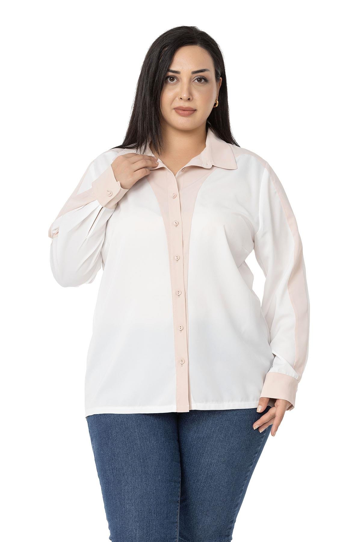 Büyük Beden Garnili Uzun Kollu Beyaz Pudra Gömlek