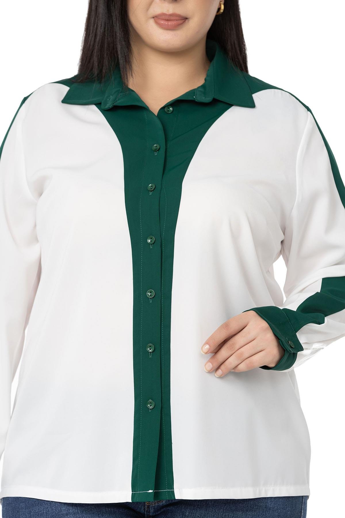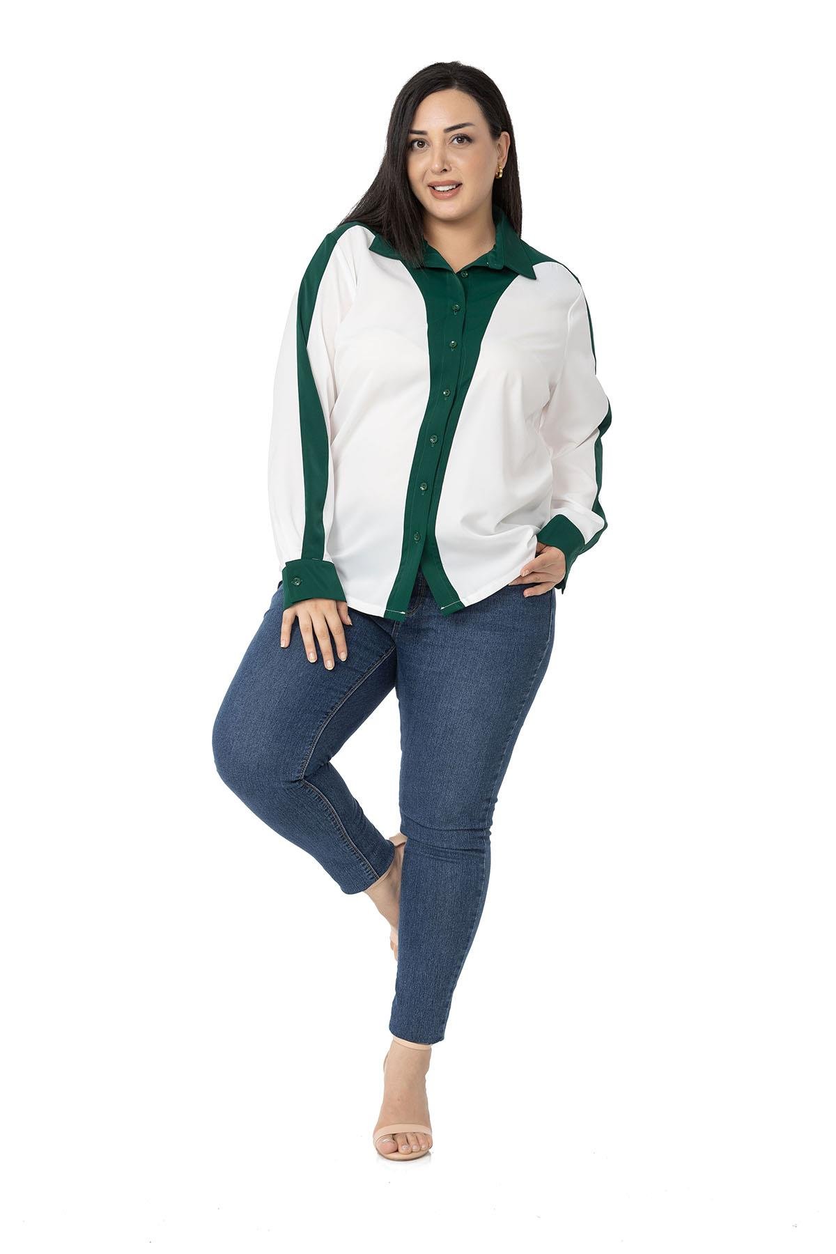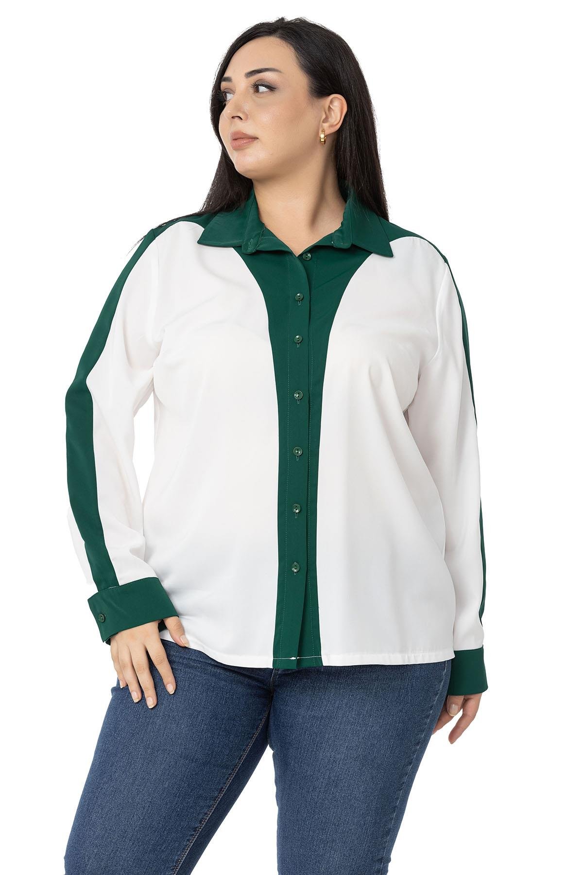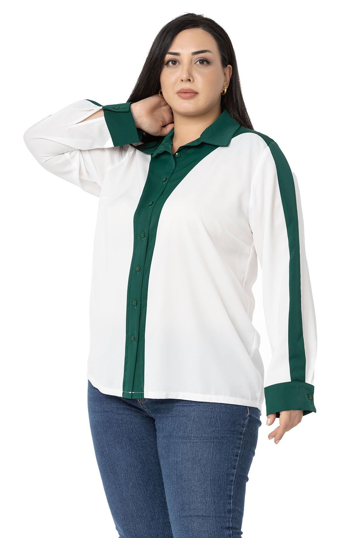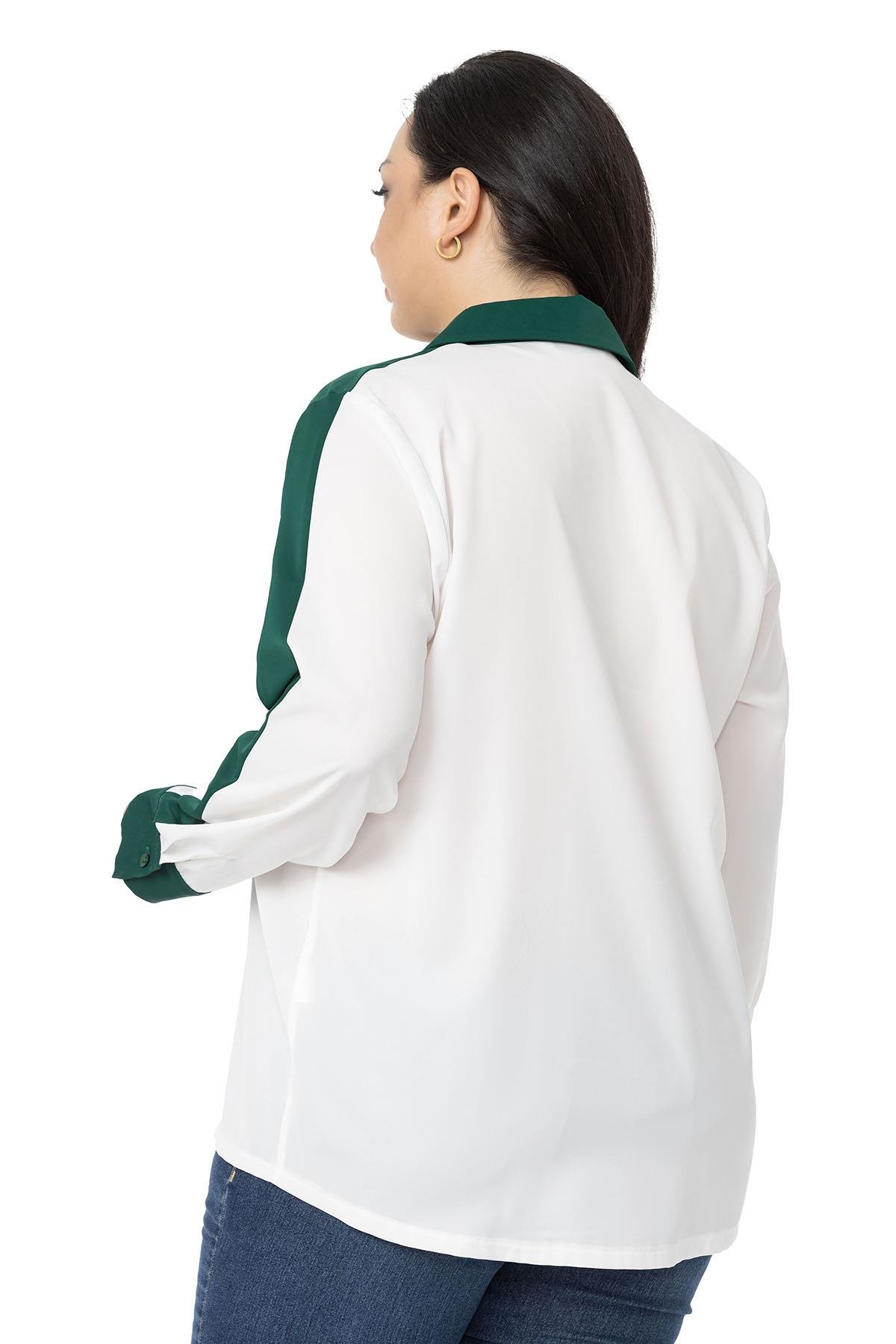 Büyük Beden Garnili Uzun Kollu Beyaz Zümrüt Gömlek