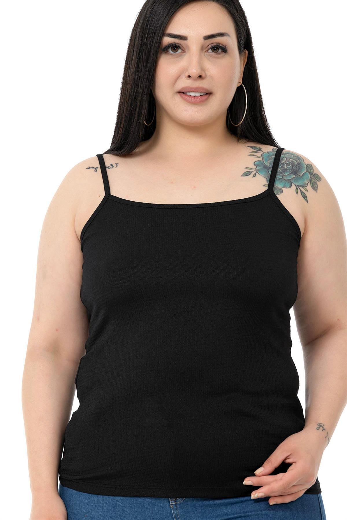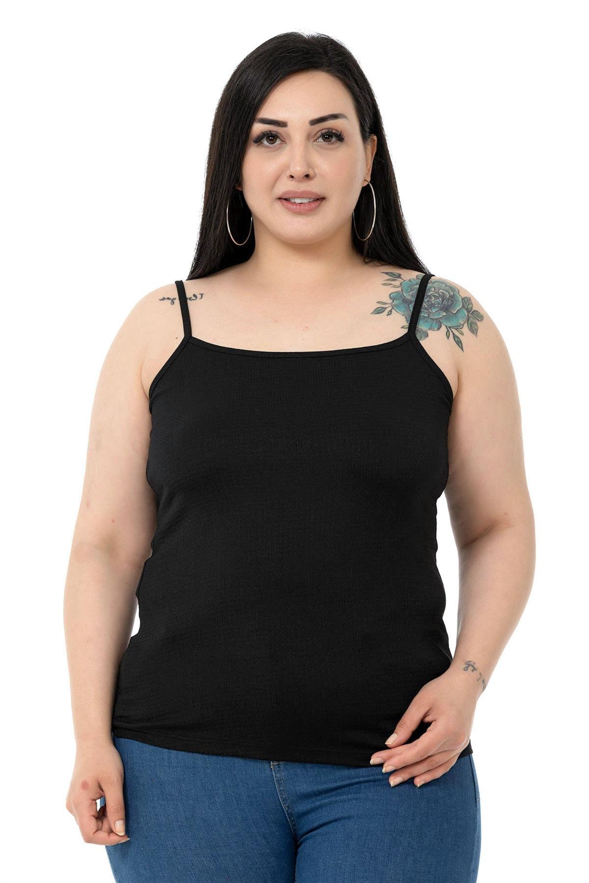Büyük Beden İp Askılı Bürümcük Siyah Body