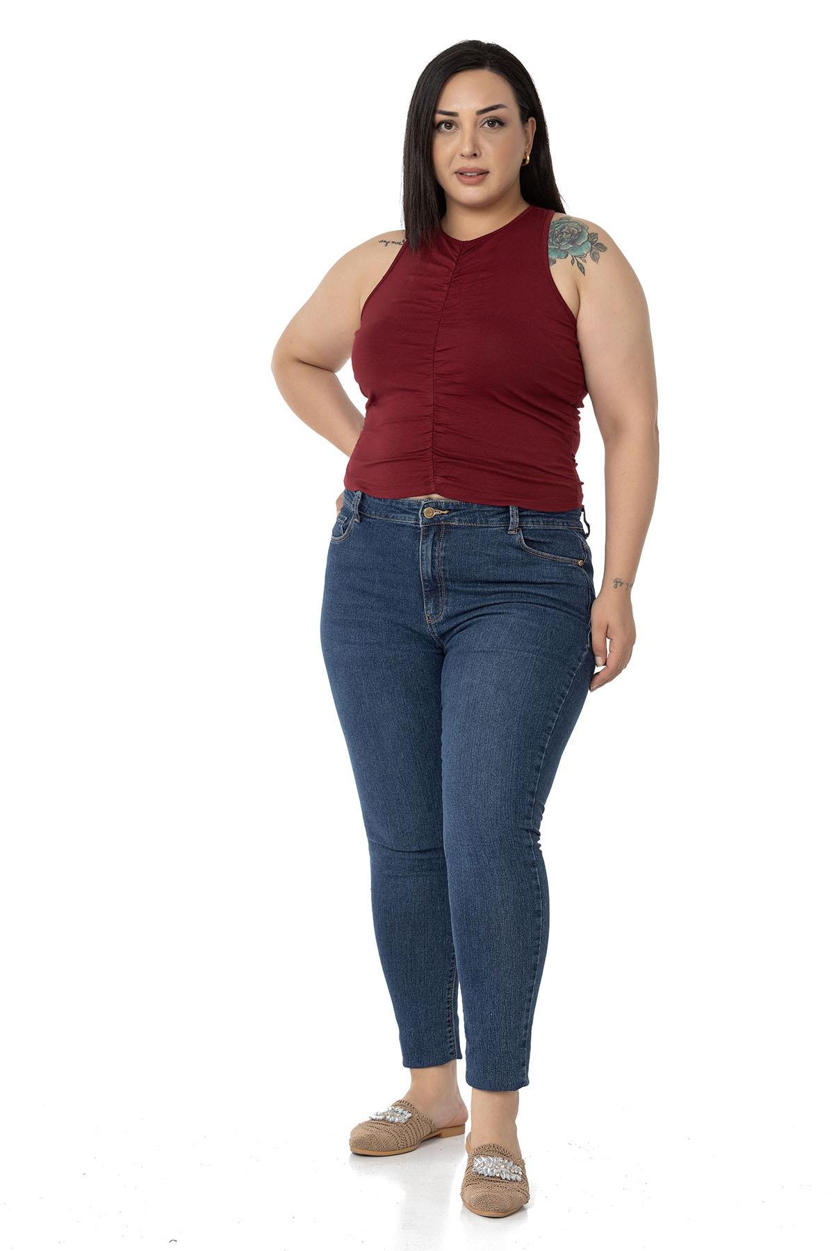 Büyük beden önü ve yanları drapeli halter yaka kısa viskon body.