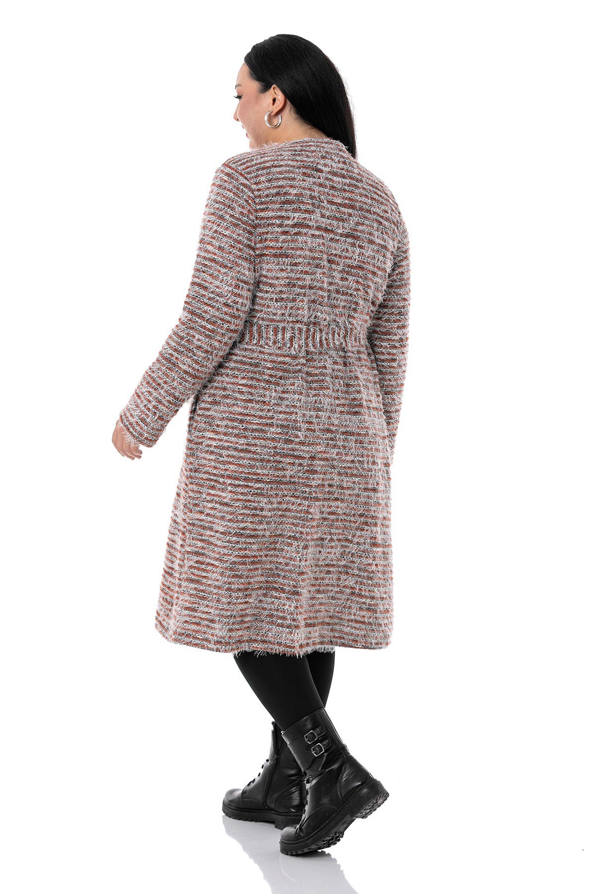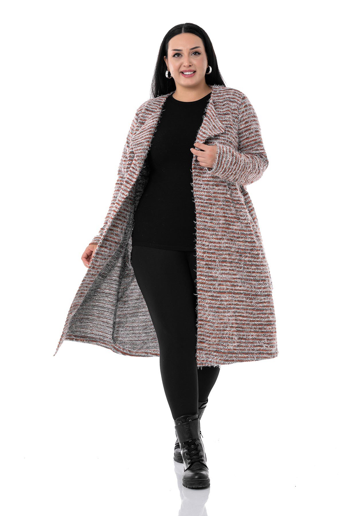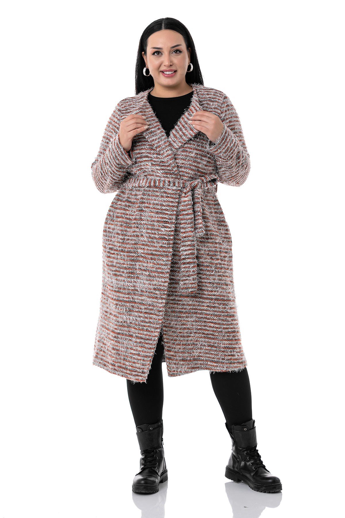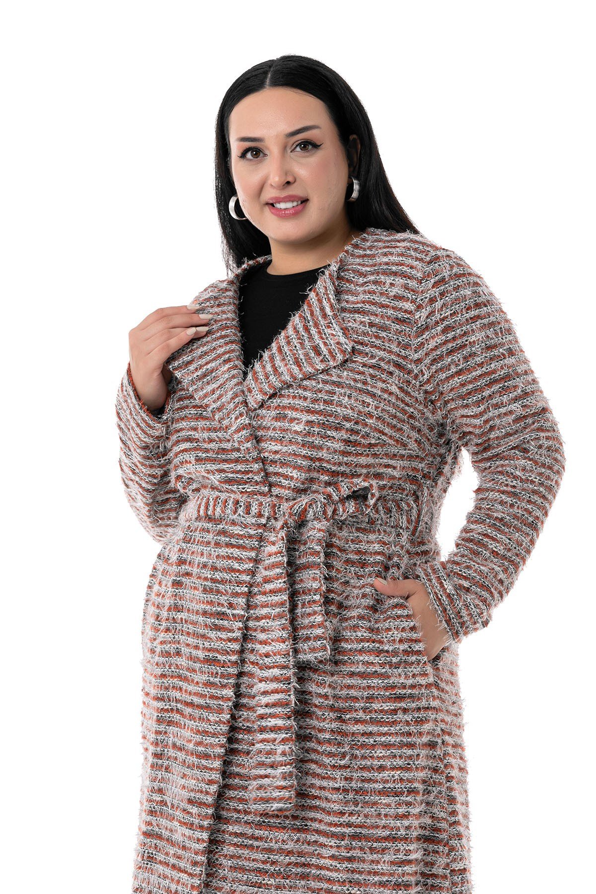 Büyük beden şal yaka midi boy cepli kuşaklı kırçıllı hırka.
