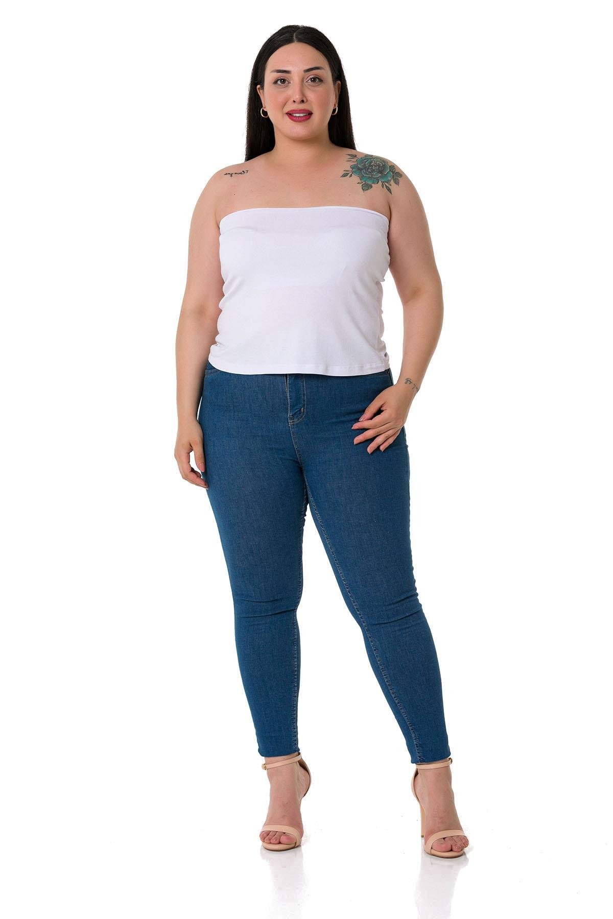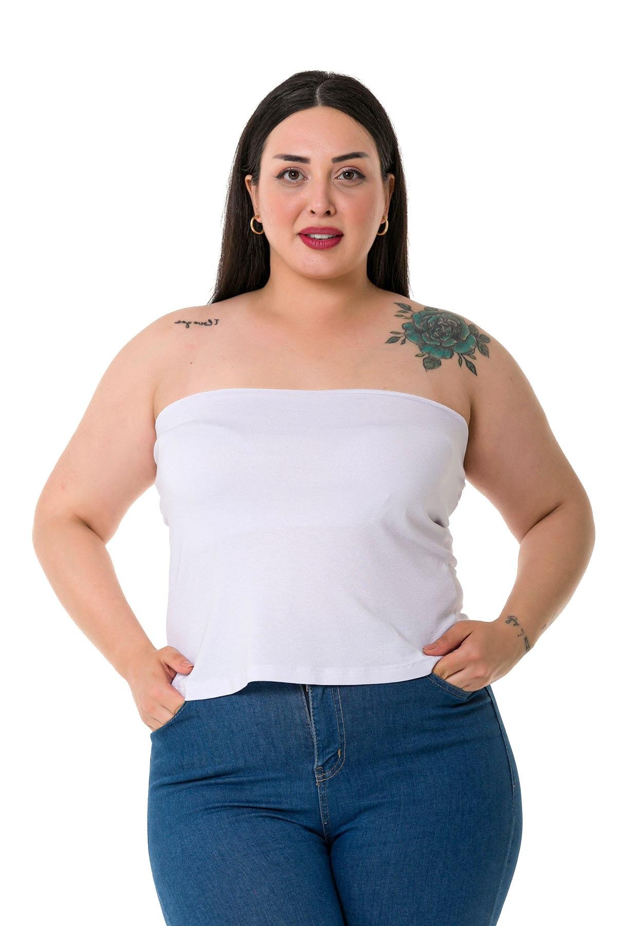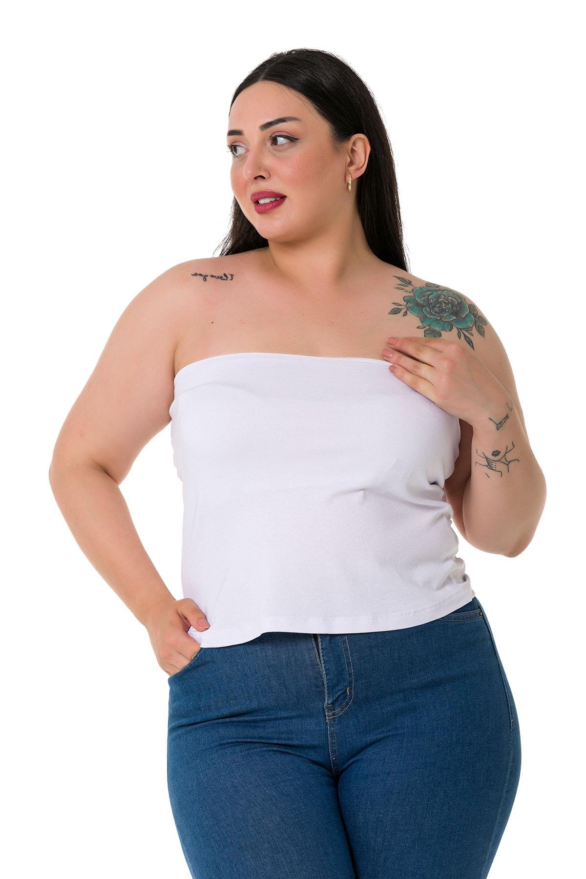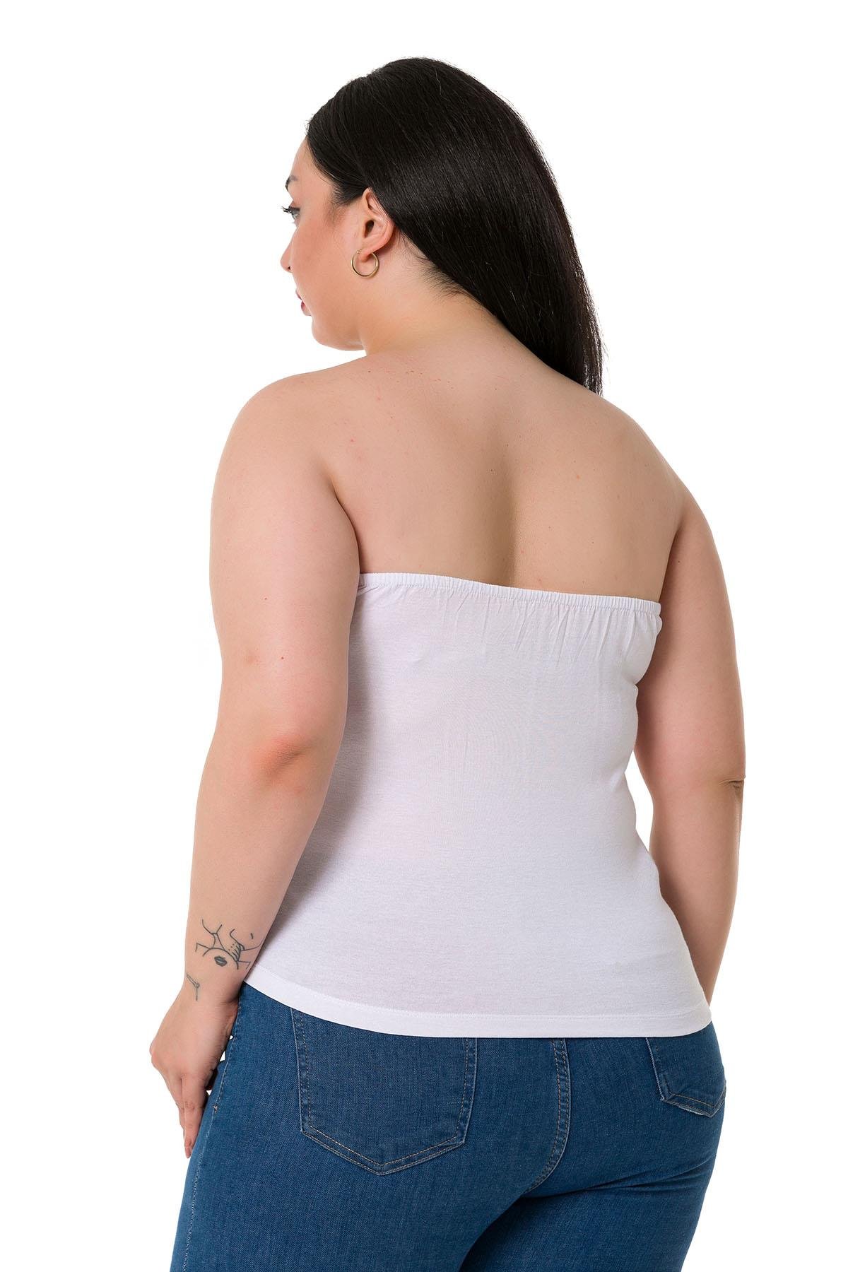 Büyük beden straplez arkası lastikli viskon body.