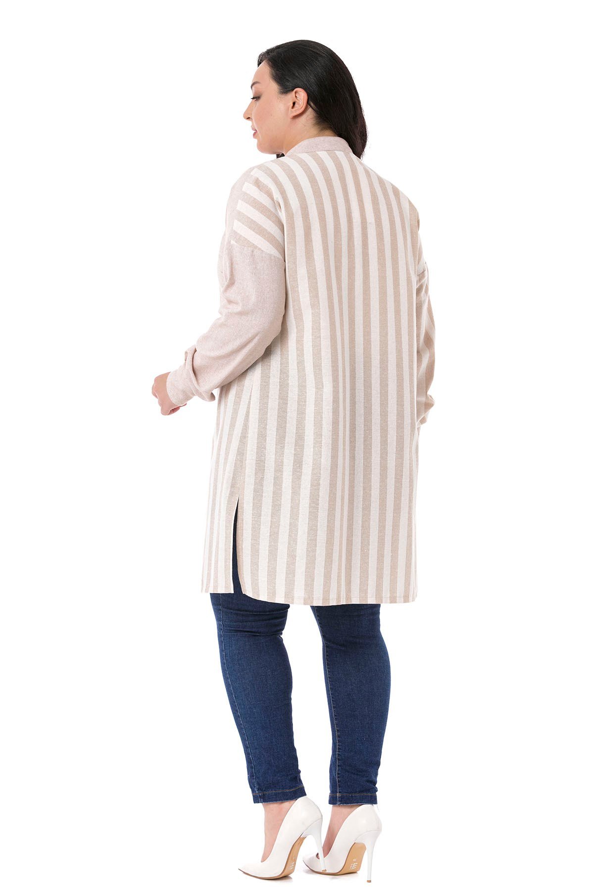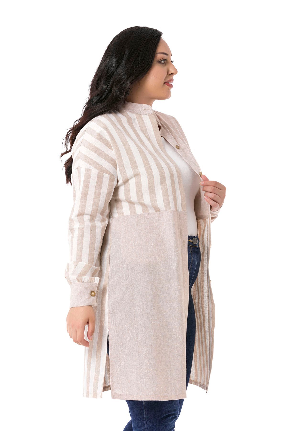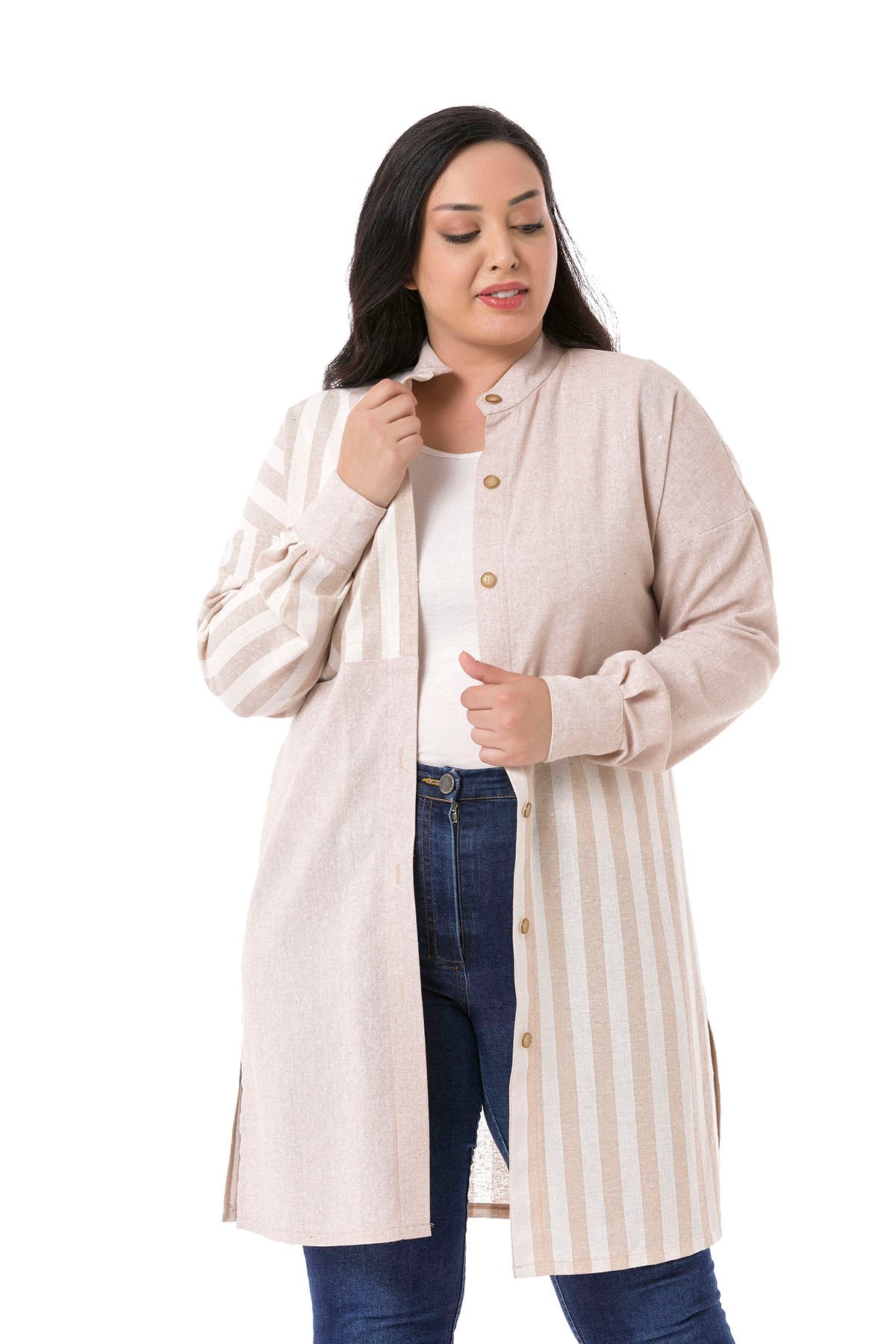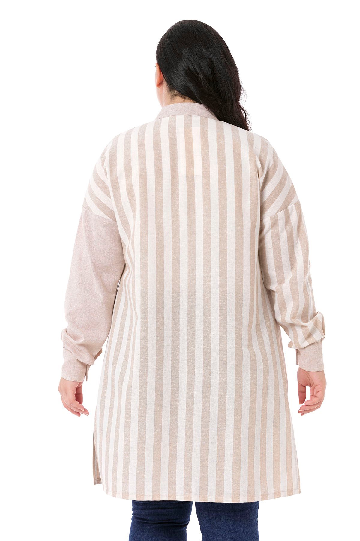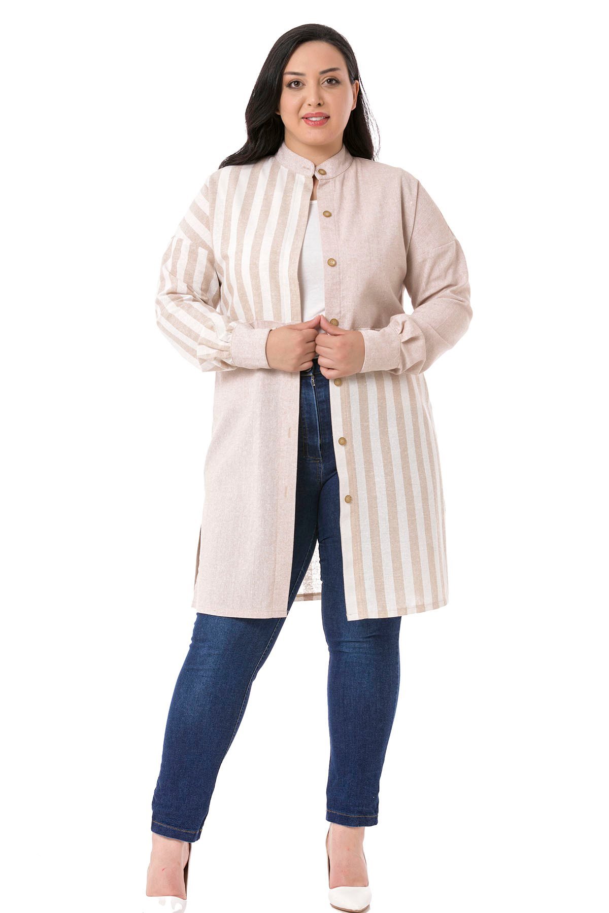 Büyük beden yanı yırtmaçlı çizgili ve düz kumaş garnili tunik gömlek.