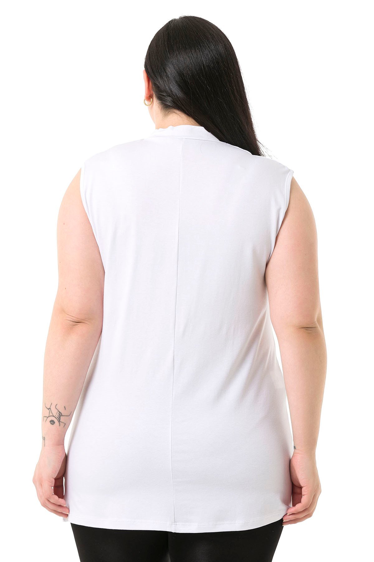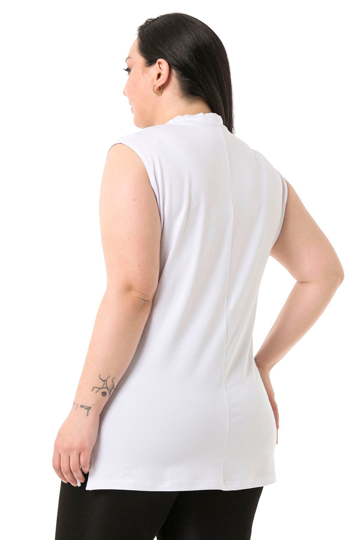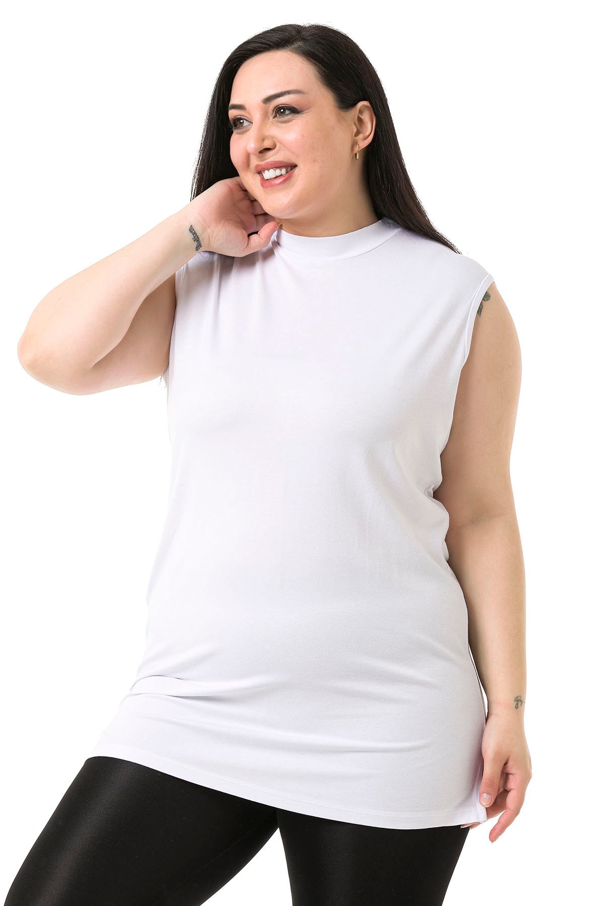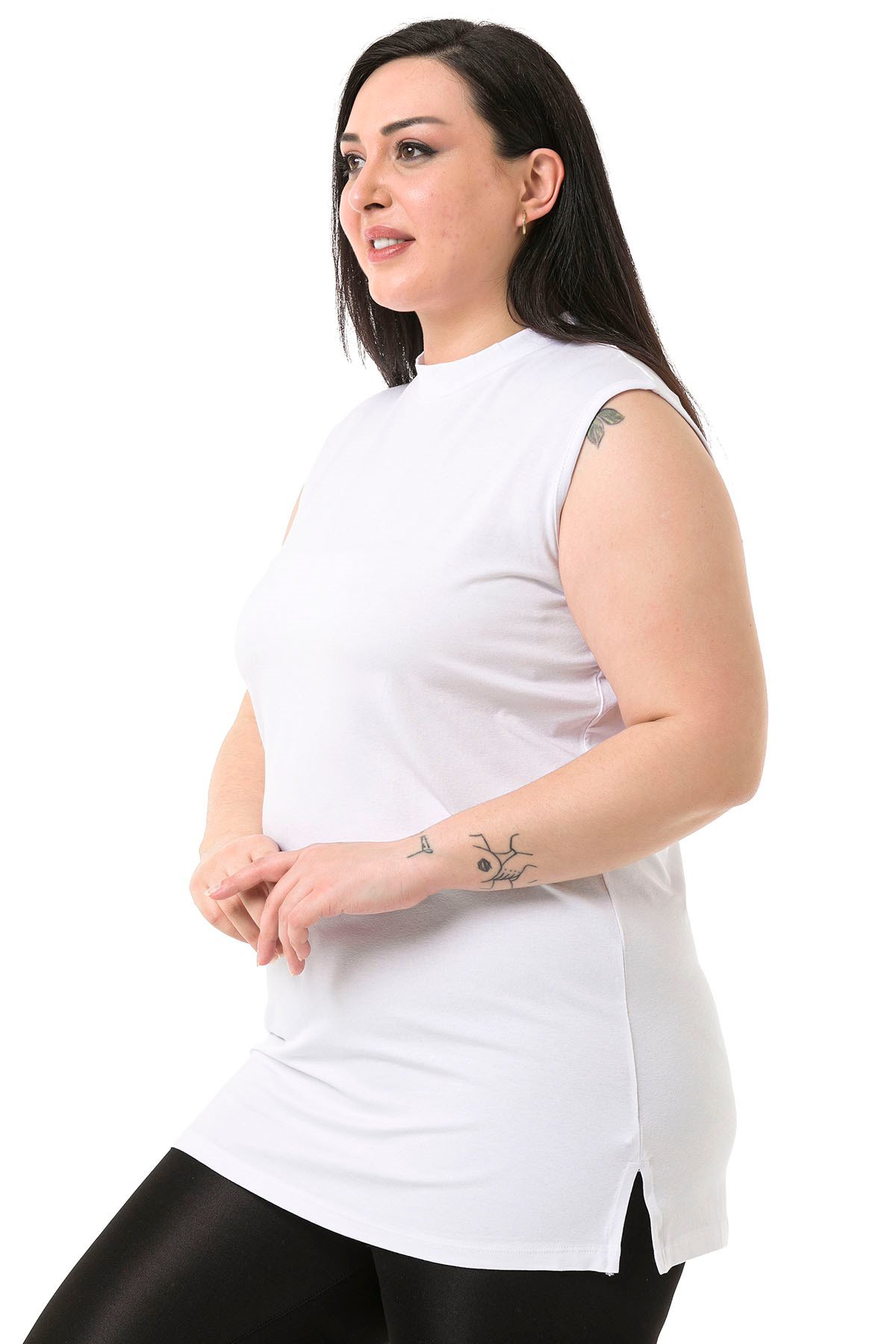 Büyük Beden Yarım Balıkçı Yanları Yırtmaçlı Uzun Viskon Beyaz Body