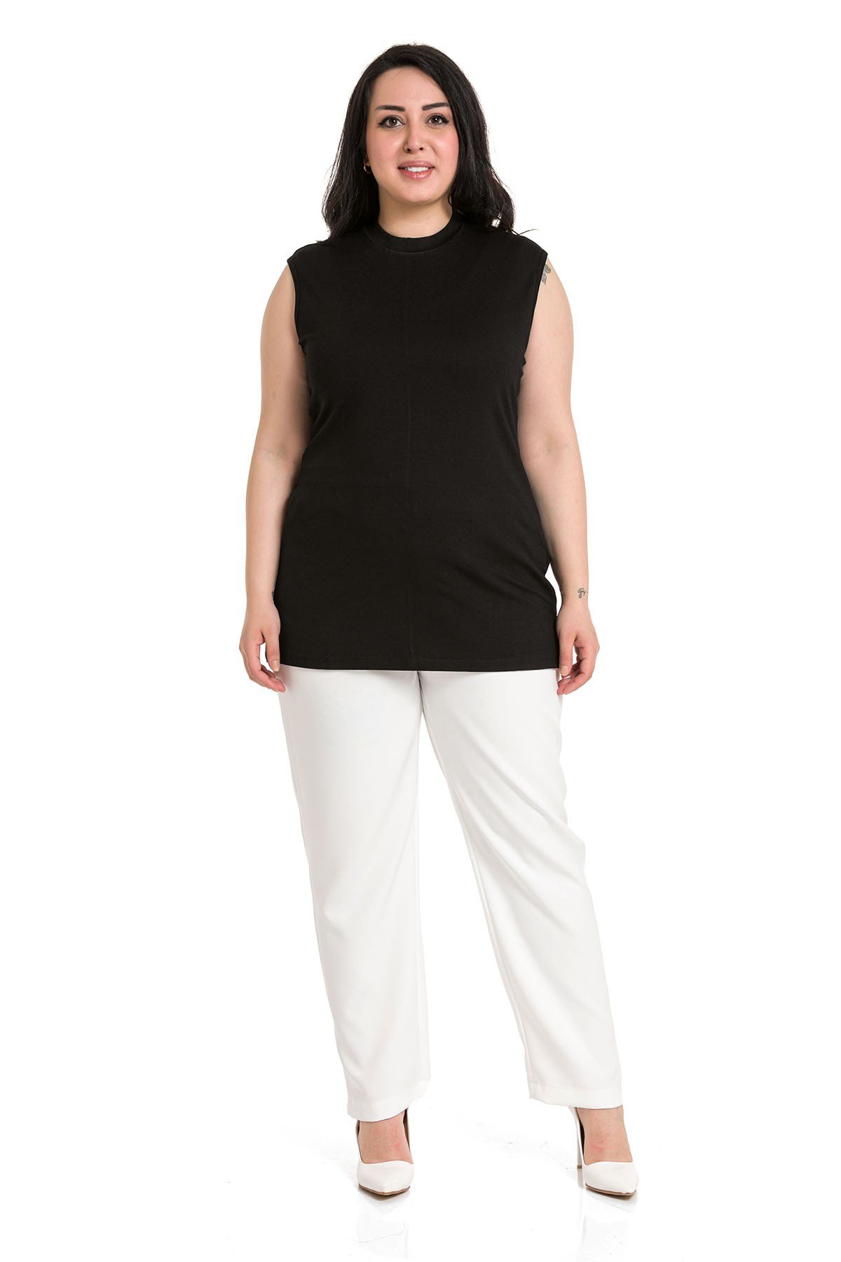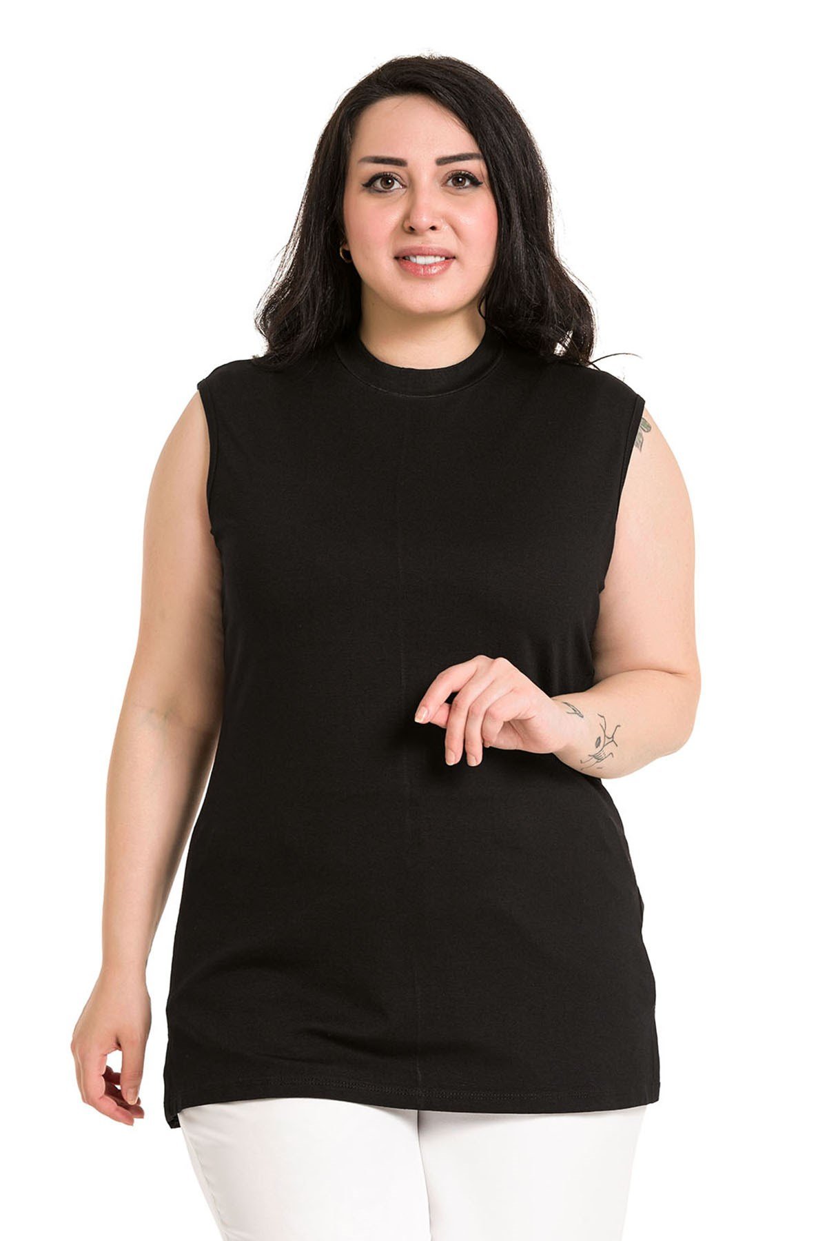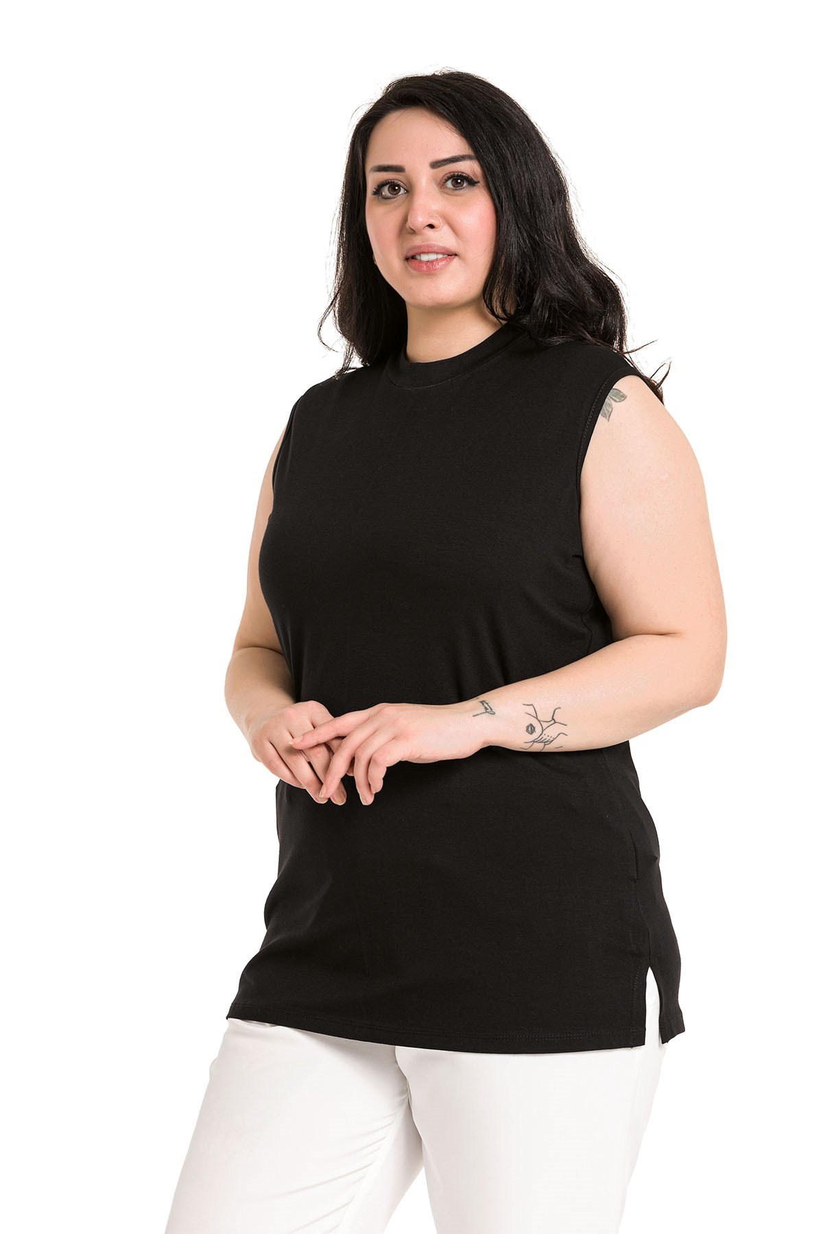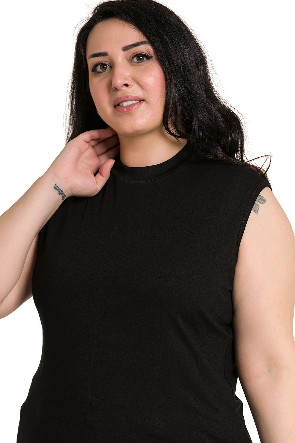 Büyük Beden Yarım Balıkçı Yanları Yırtmaçlı Uzun Viskon Siyah Body