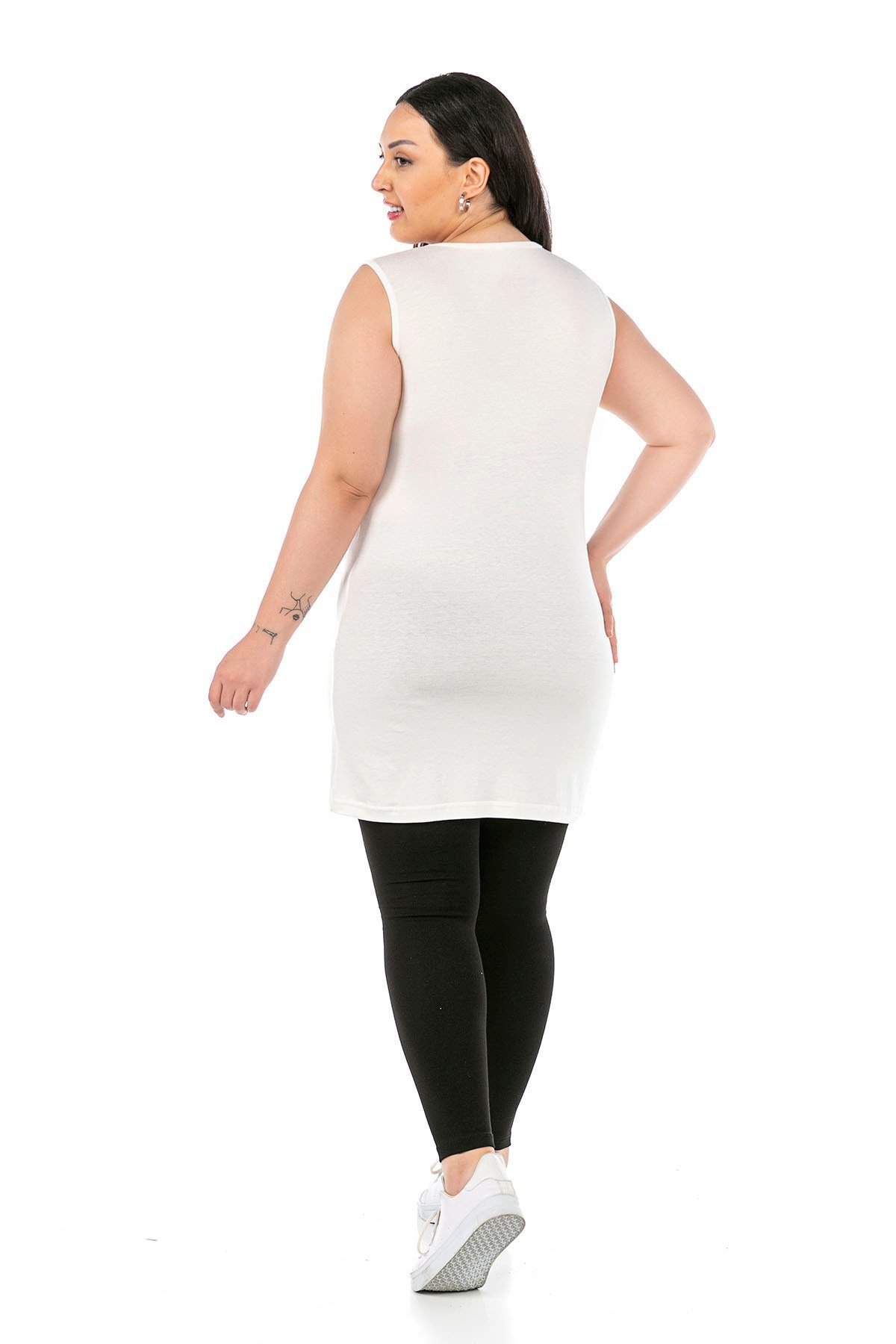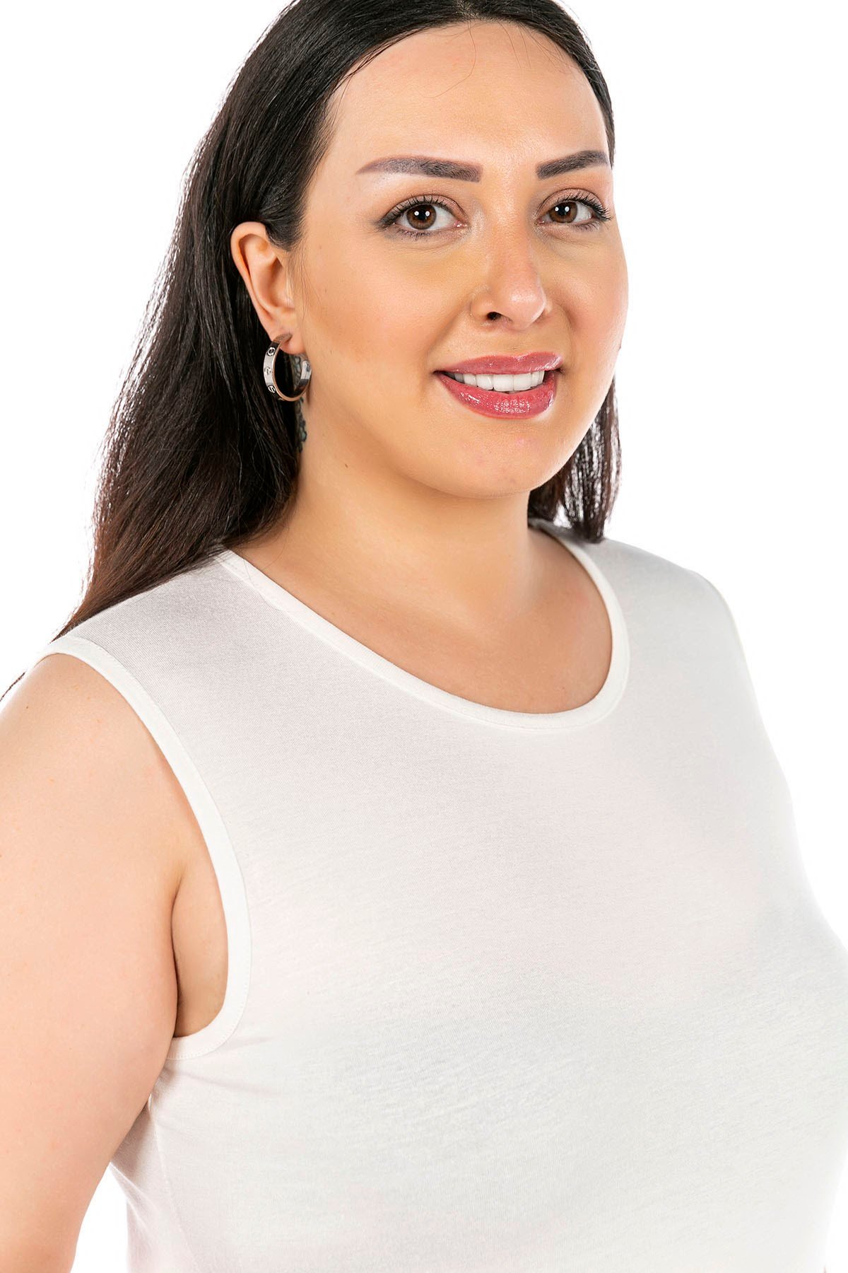 Büyük beden yuvarlak yaka kalın askılı viskon uzun body.