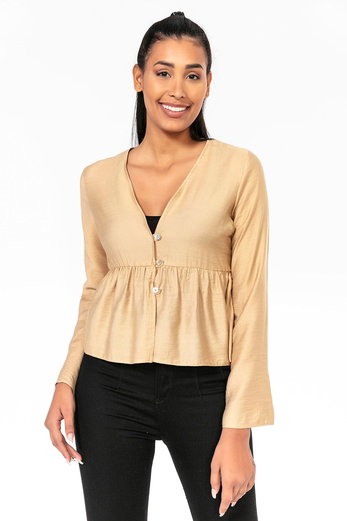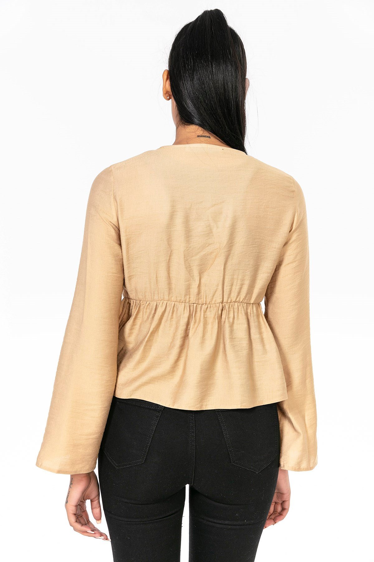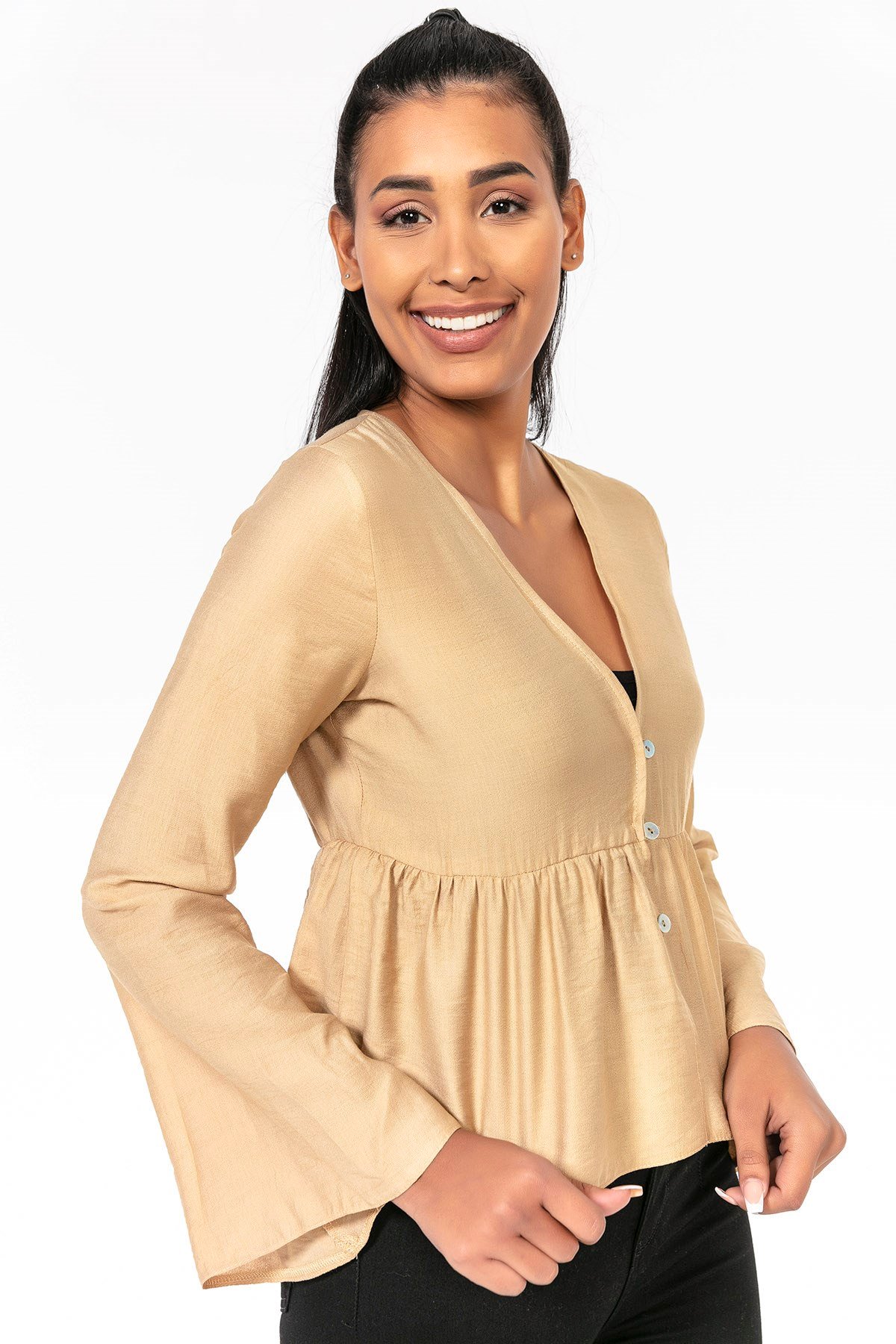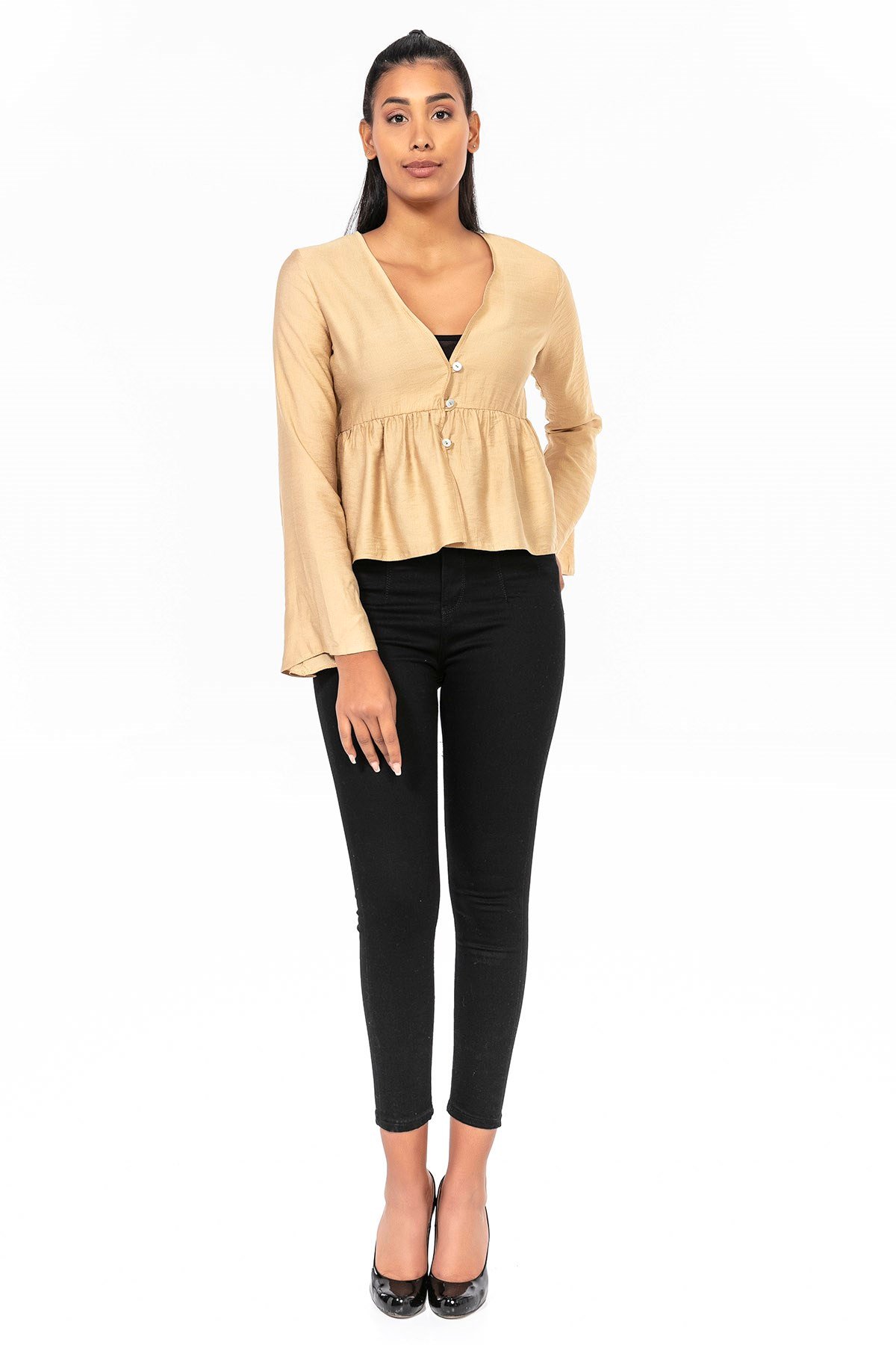 İspanyol Kol Önden Düğmeli Bej Rengi Kısa Bolero