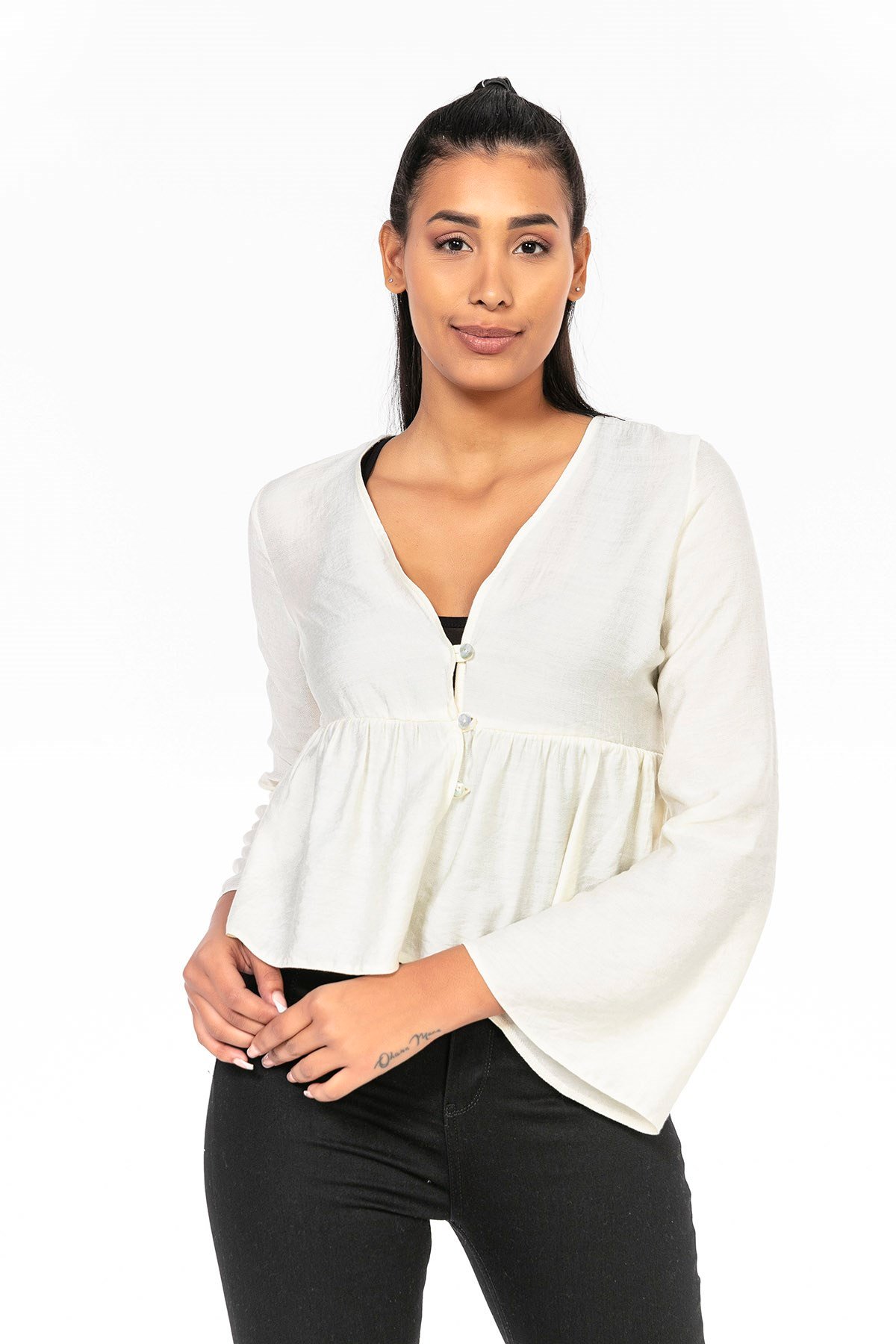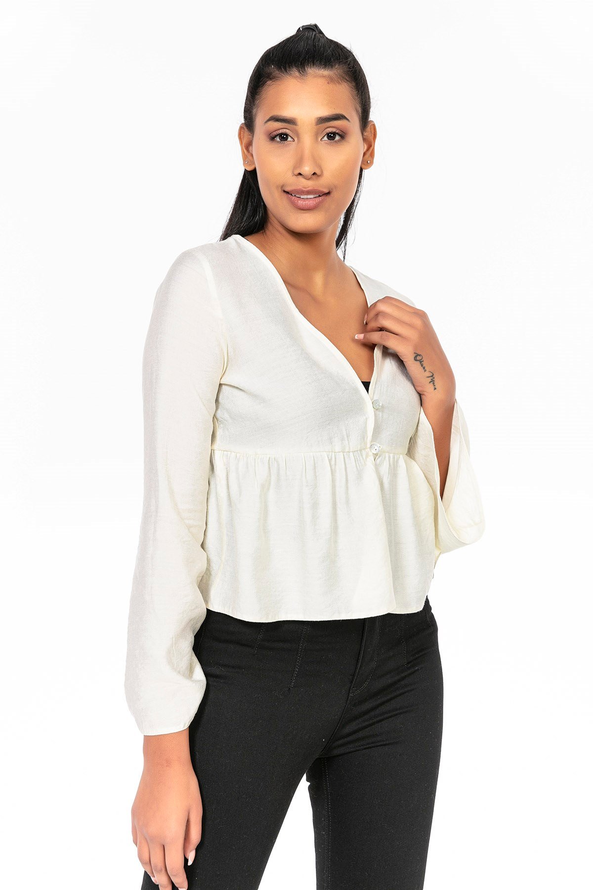 İspanyol Kol Önden Düğmeli Ekru Rengi Kısa Bolero