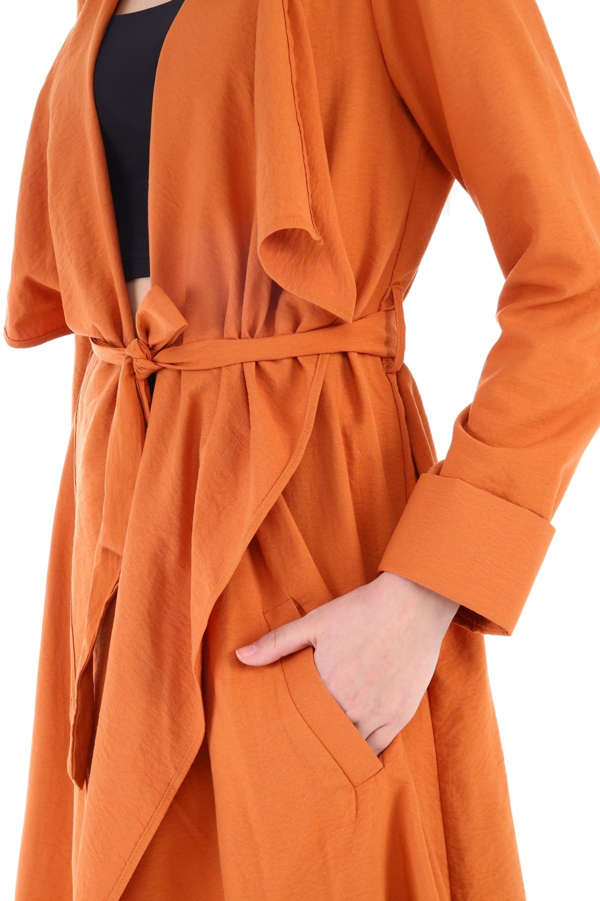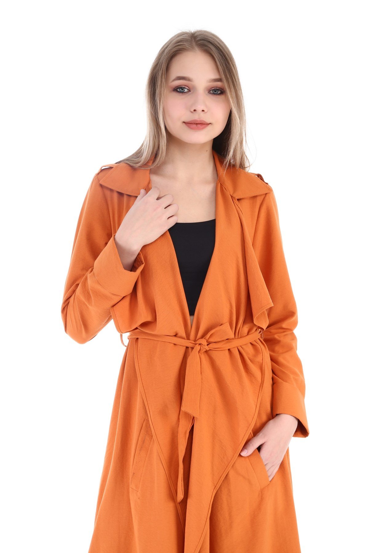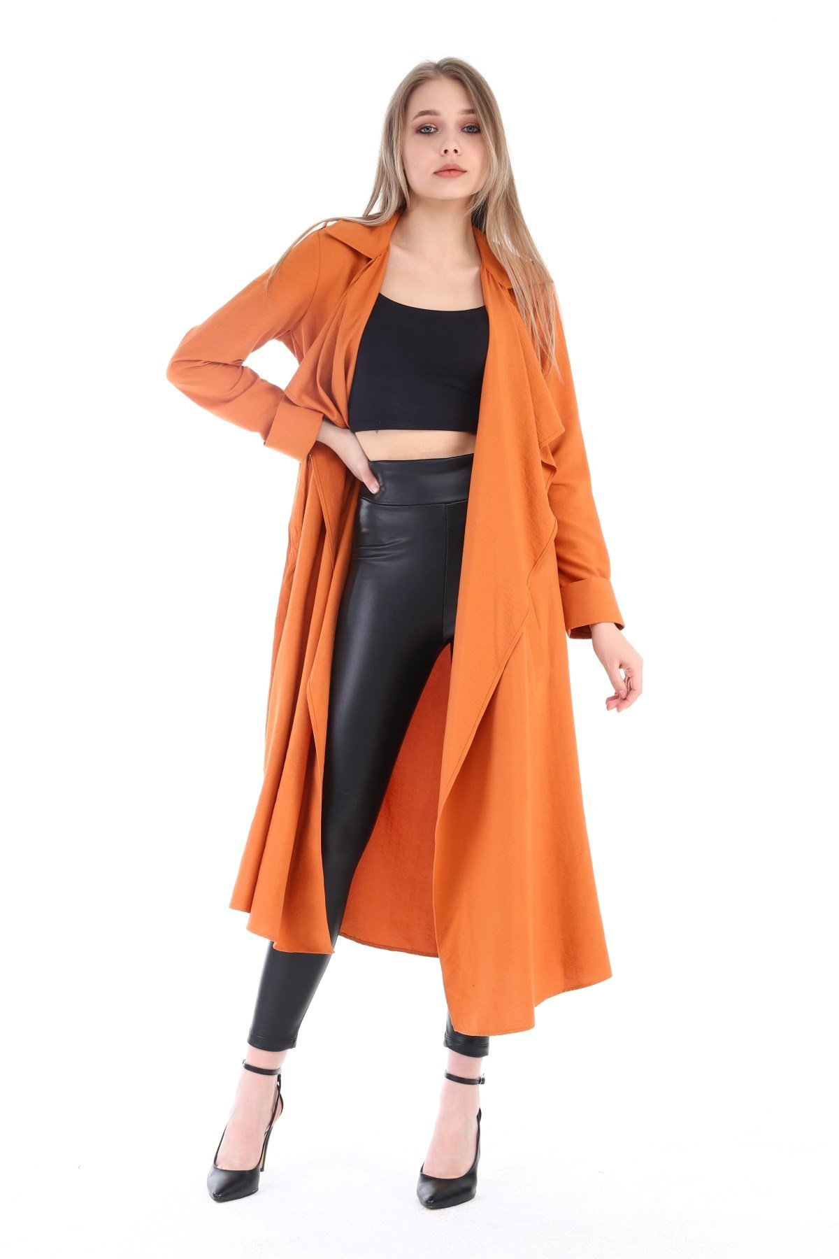 Long Claret Brick Women's Jacket with Epaulettes, Slits on the Sides and a Belt
