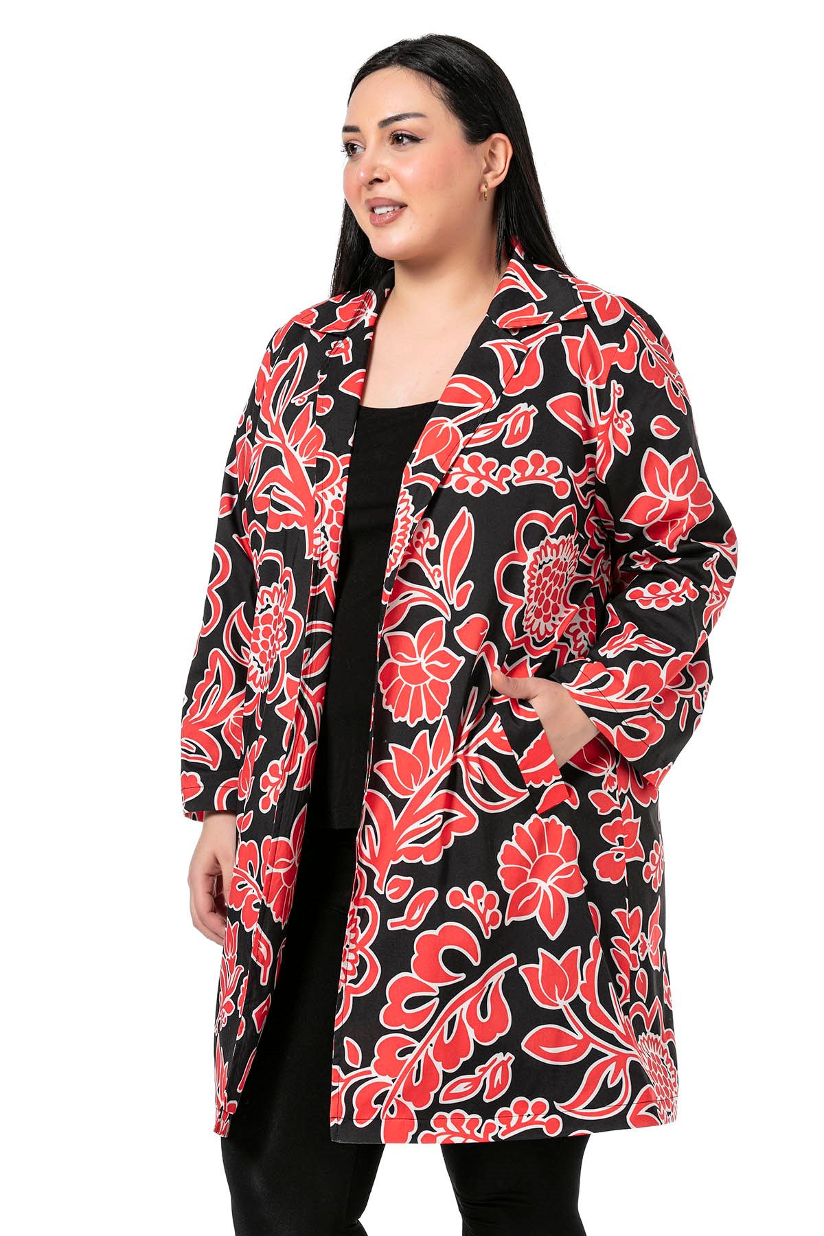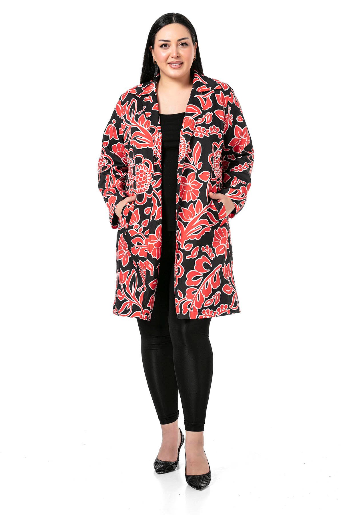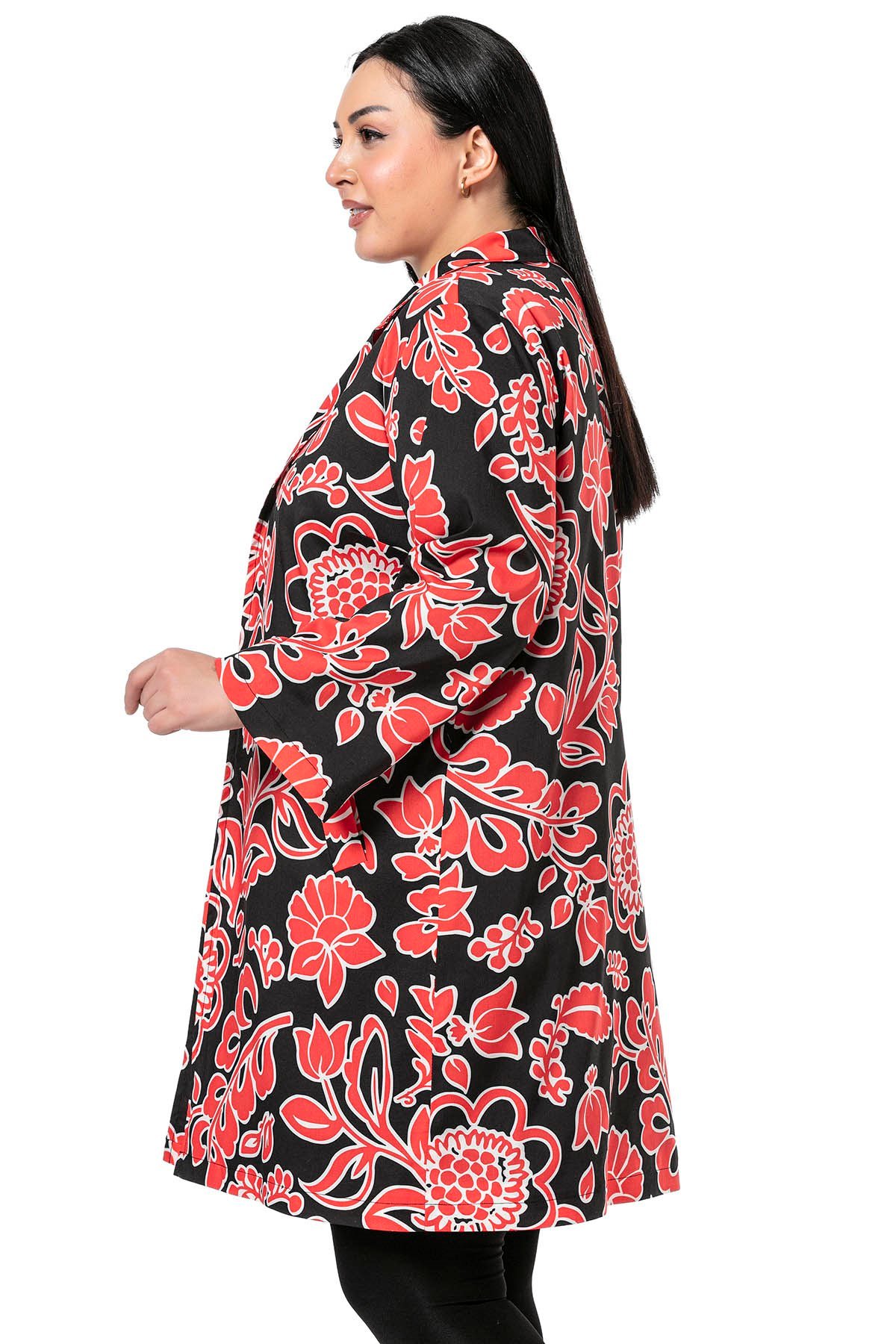 Mono Collar Pocket Lined Red Flower Patterned Women's Jacket