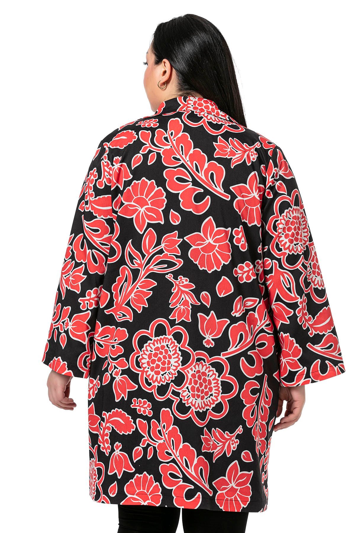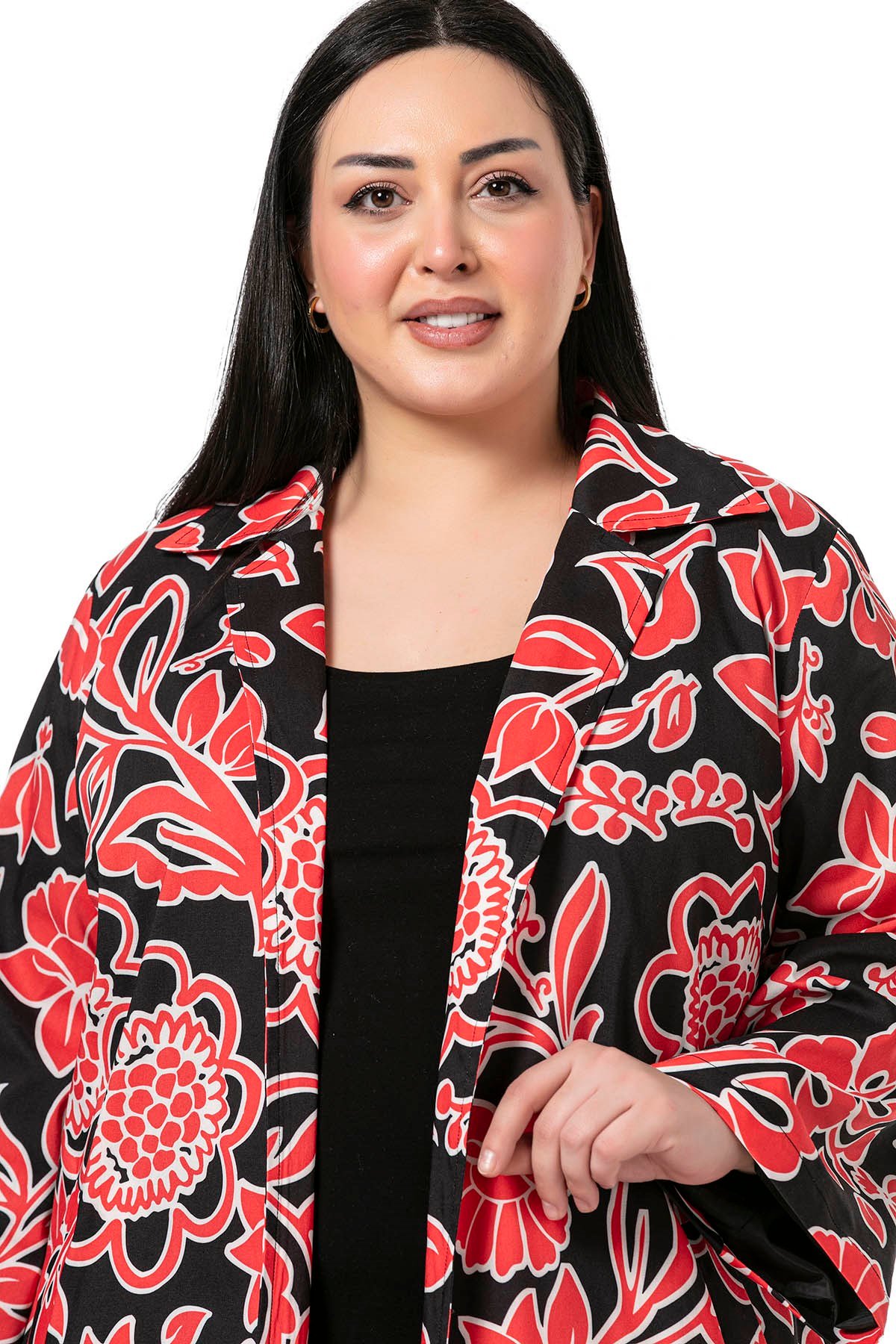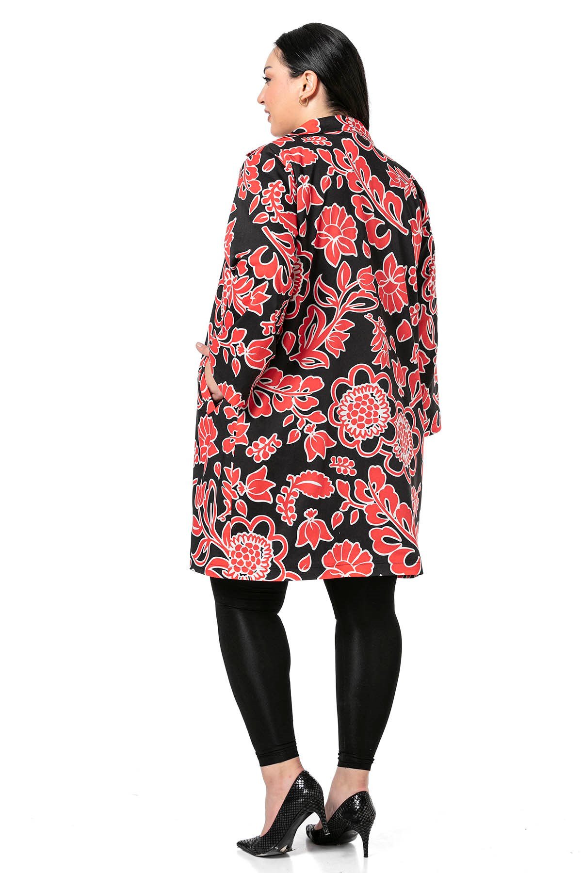 Mono Collar Pocket Lined Red Flower Patterned Women's Jacket