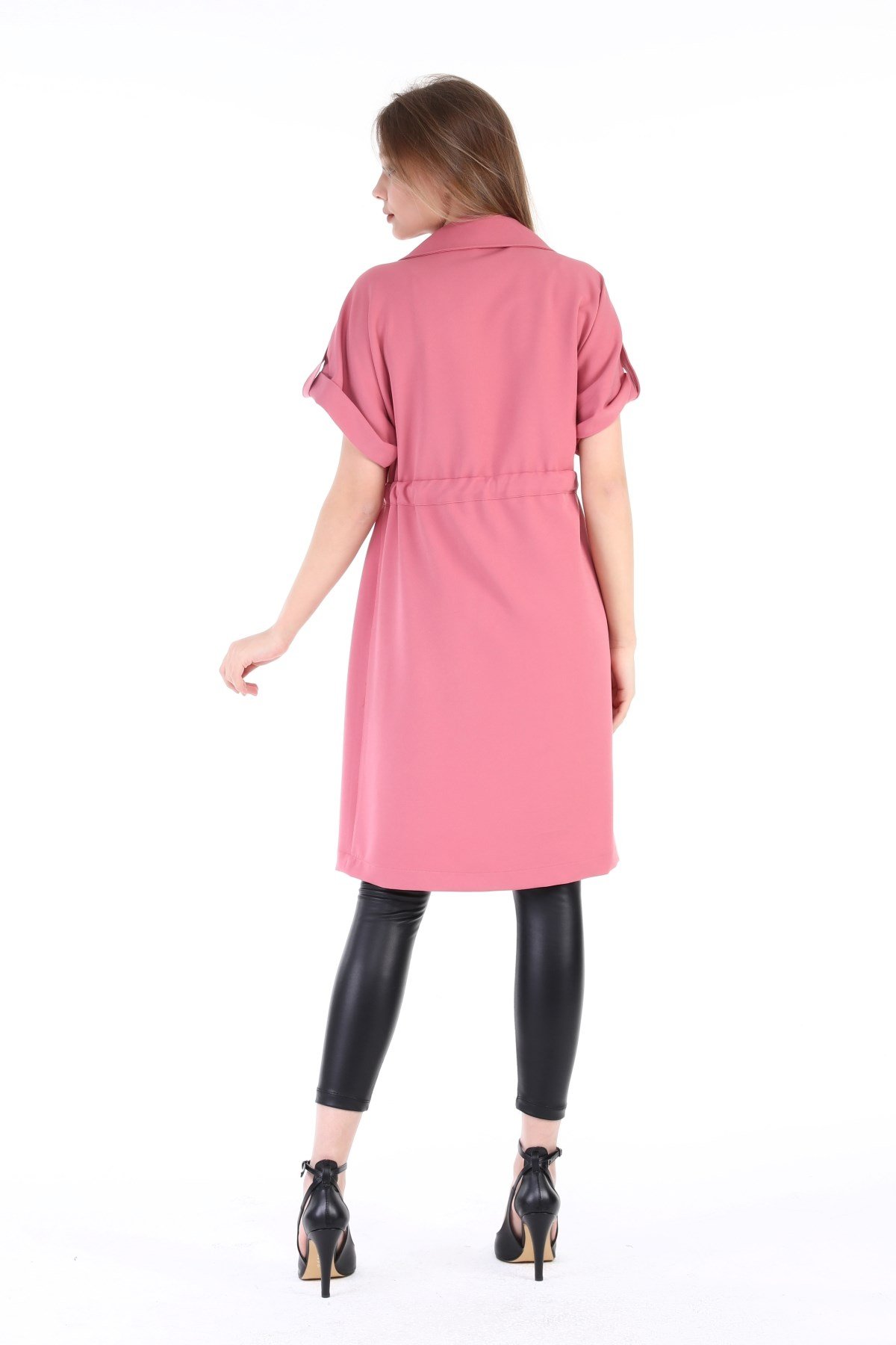 Mono collar, tunnel waist, pockets, epaulettes, short sleeve unlined vest.