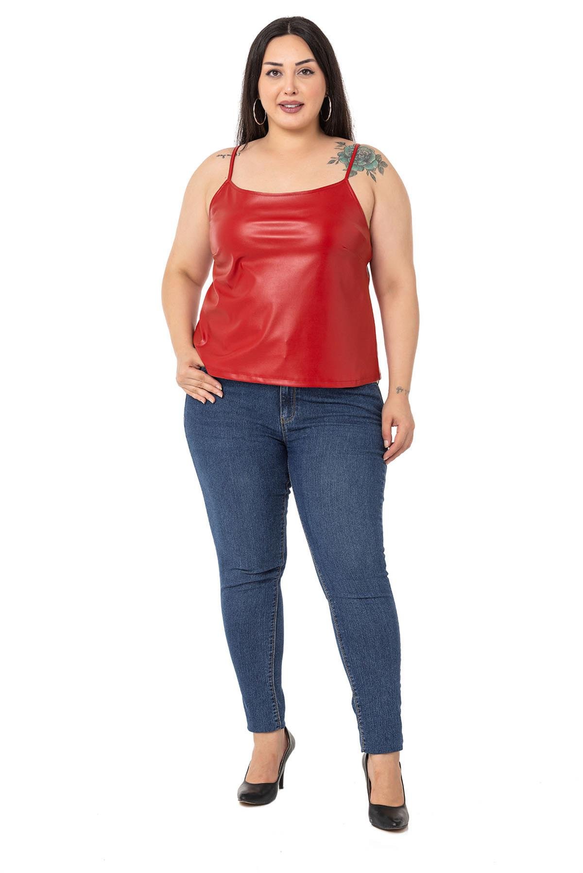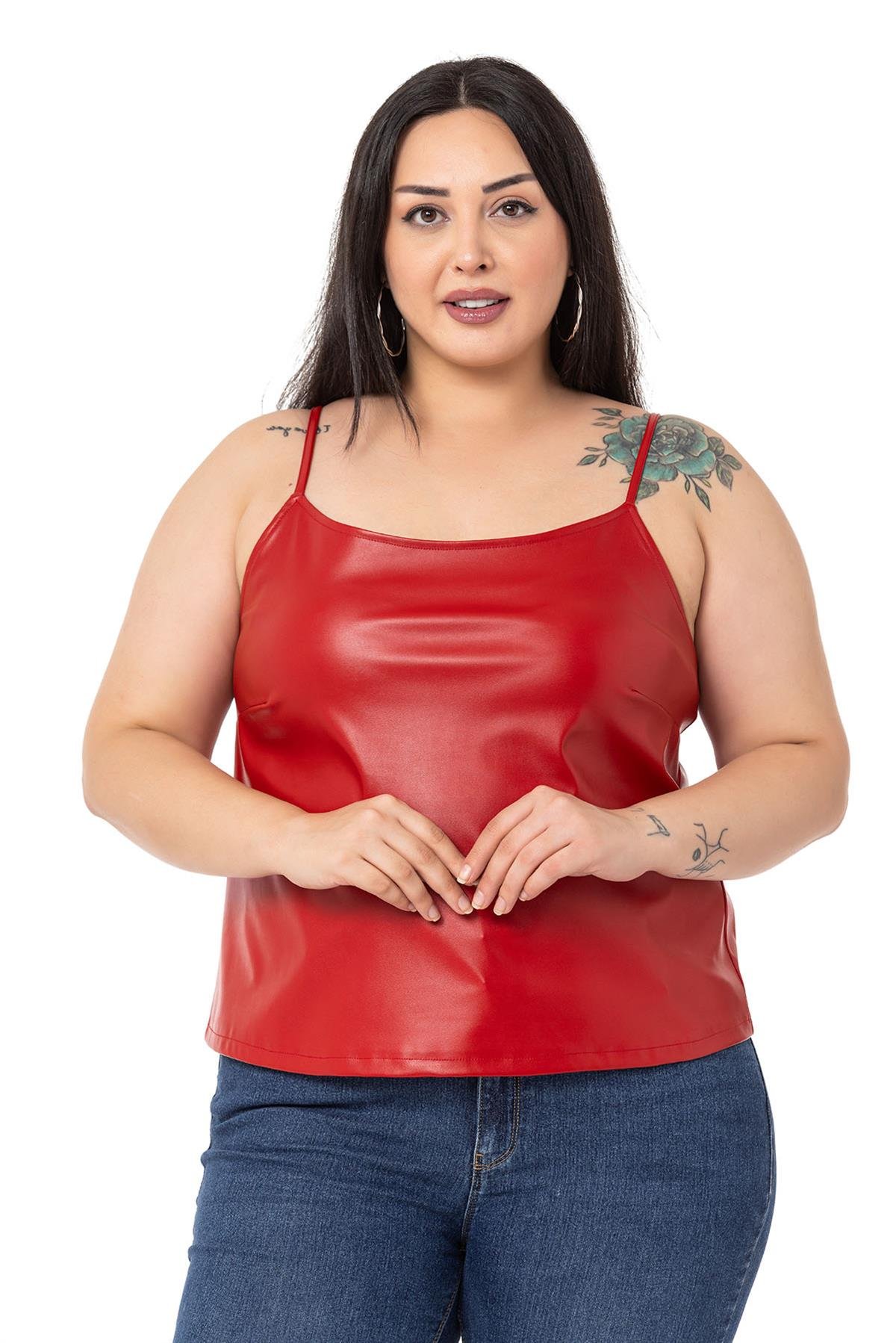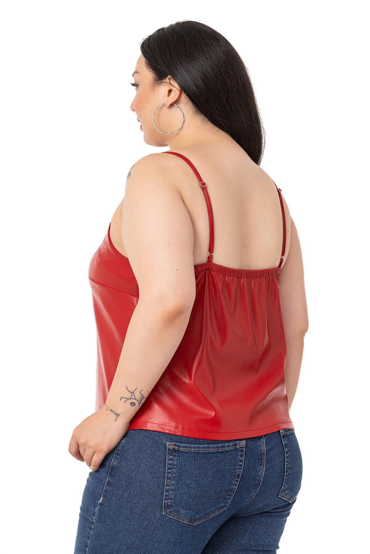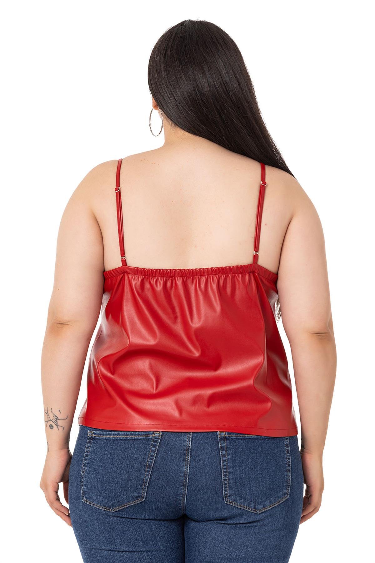 Large size adjustable thin straps elasticated back faux leather blouse.