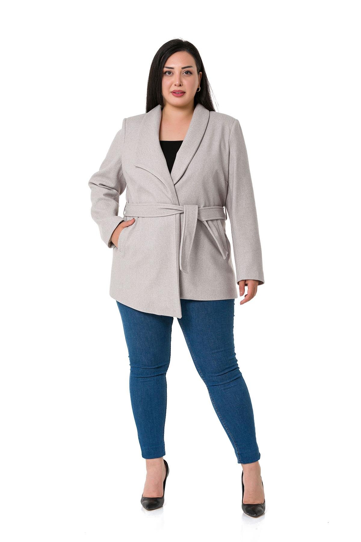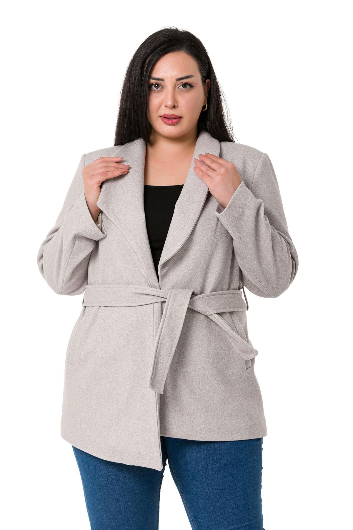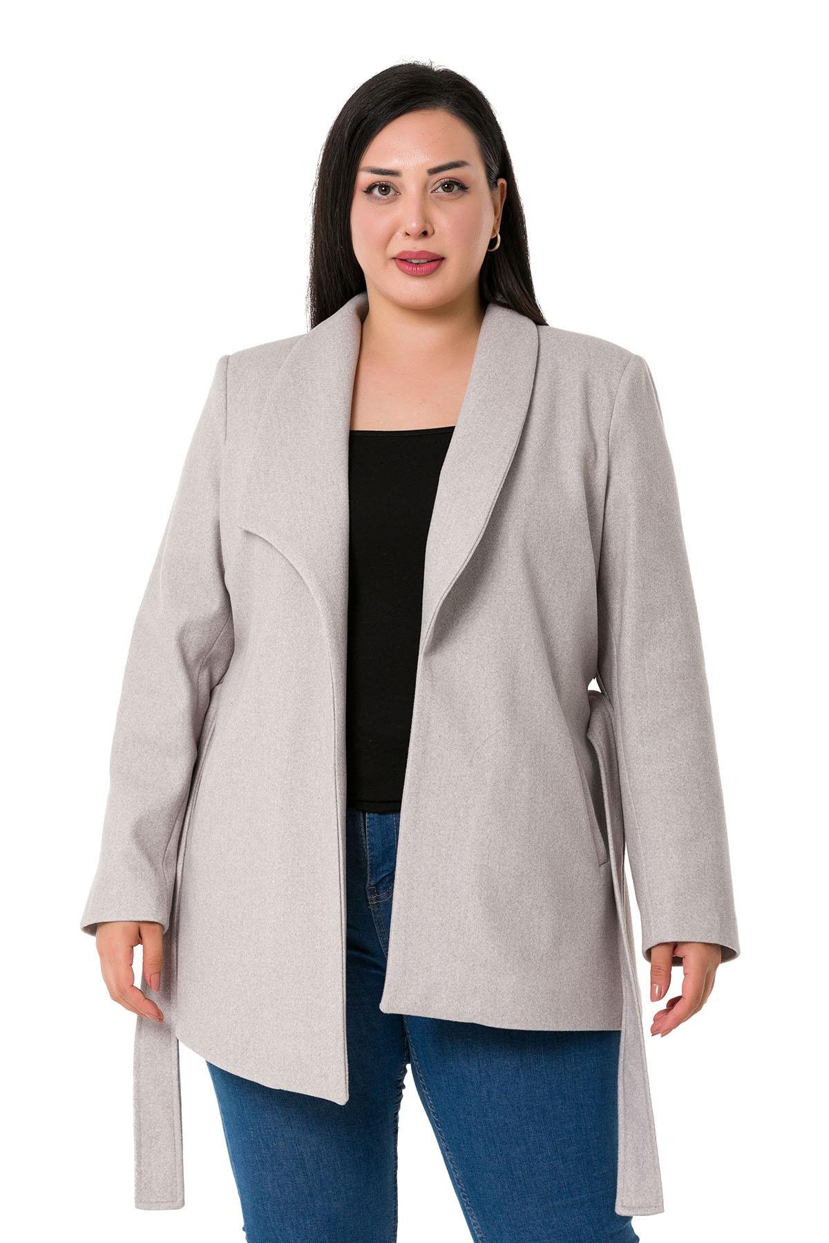 Plus Size Asymmetrical Cut Belted Lined Anthracite Jacket Plus Size Asymmetrical Cut Belted Lined Black Jacket