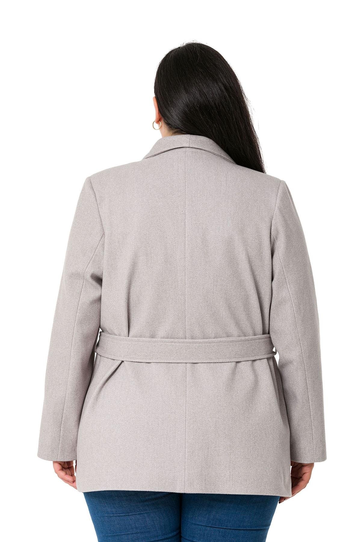 Plus Size Asymmetrical Cut Belted Lined Stone Jacket