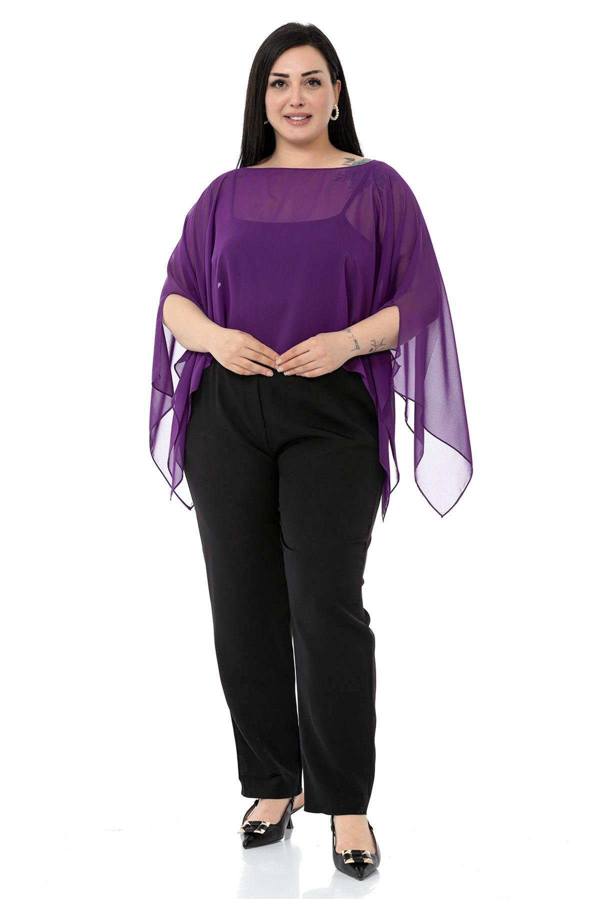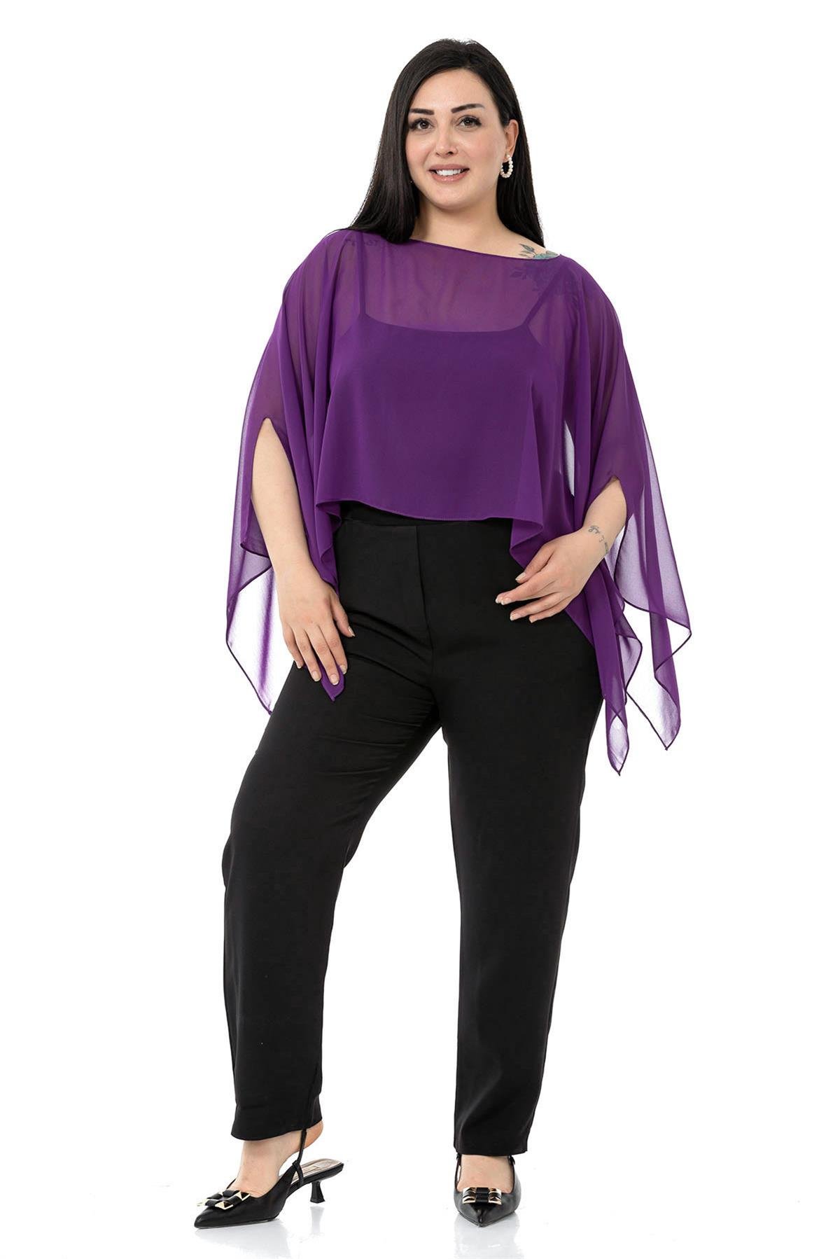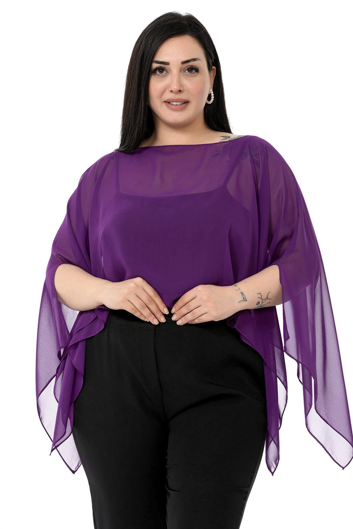Plus Size Asymmetrical Cut Chiffon Purple Cape Bolero