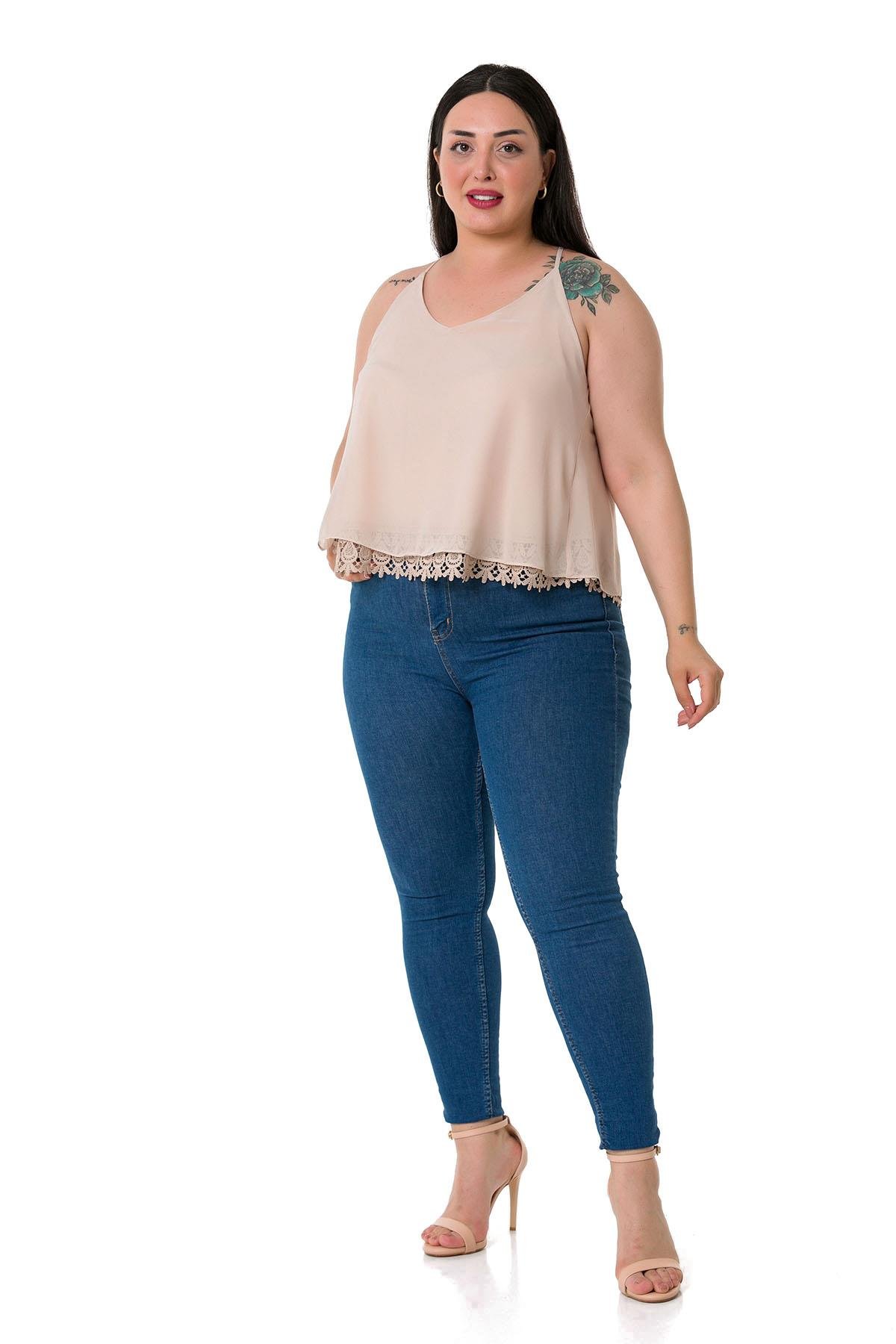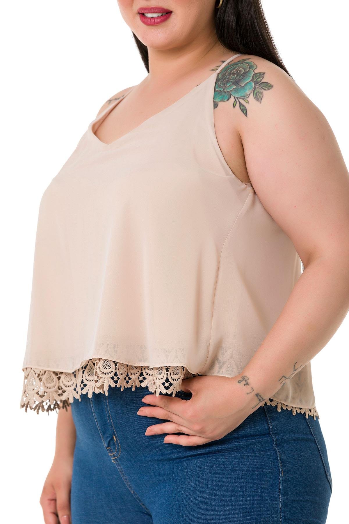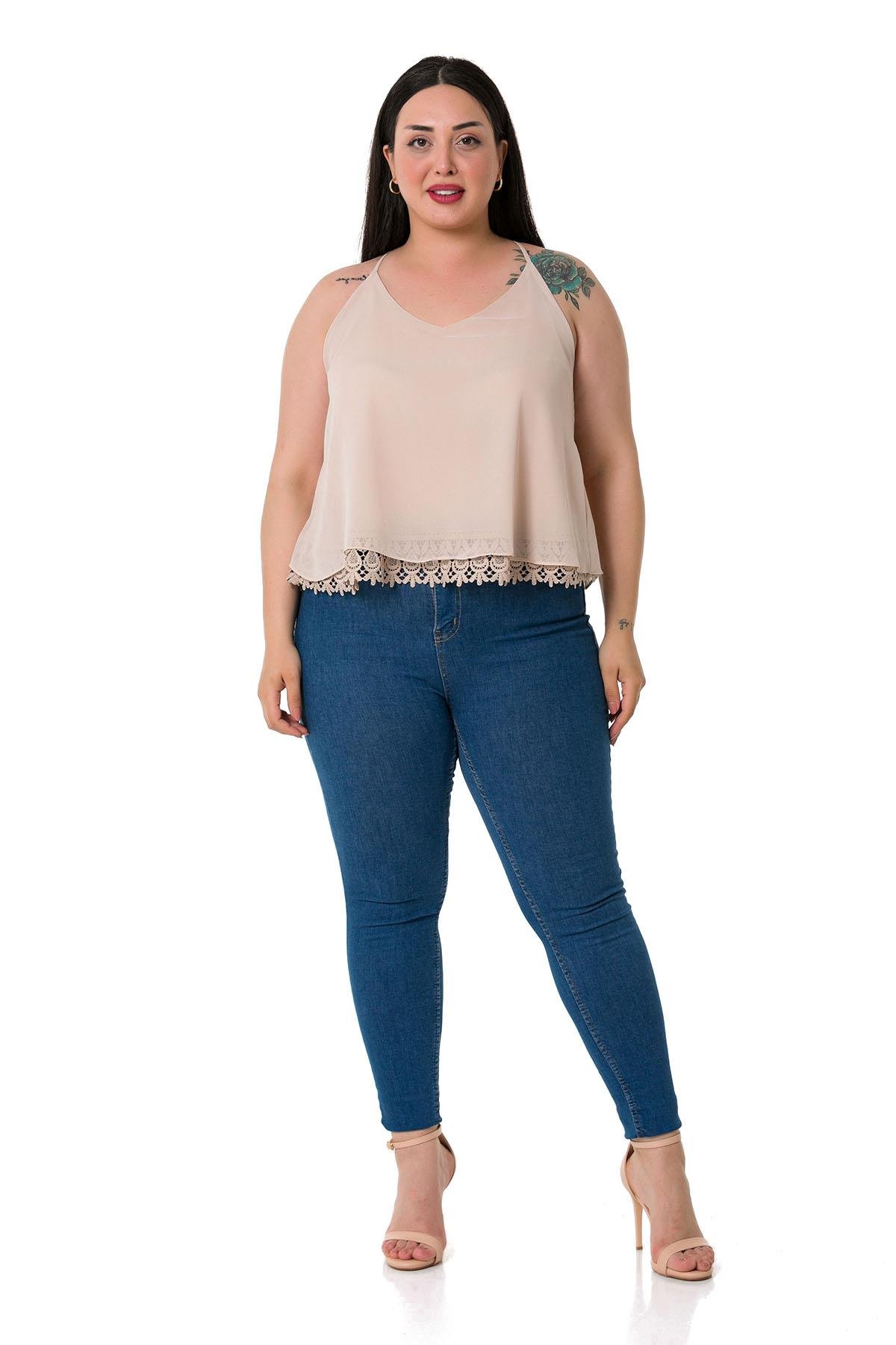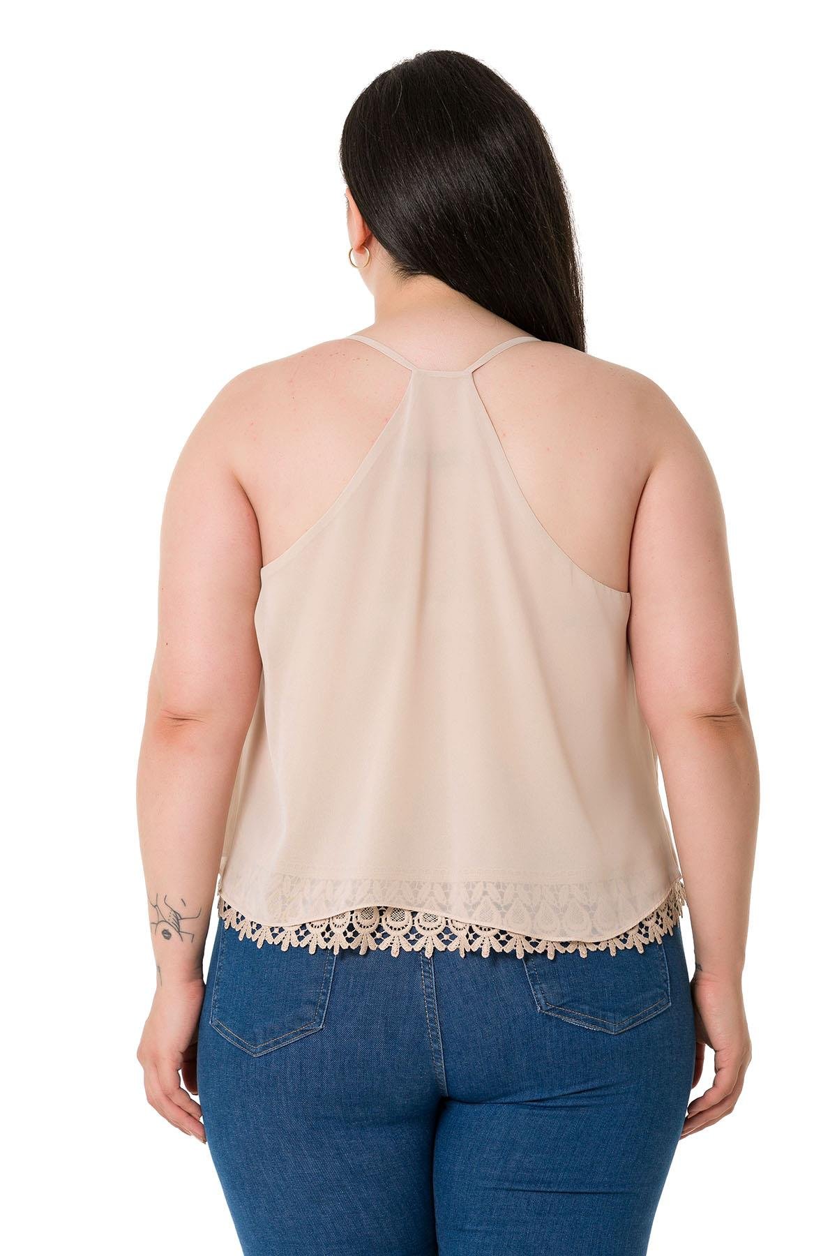 Plus Size Backless Lace Detailed Chiffon Beige Blouse