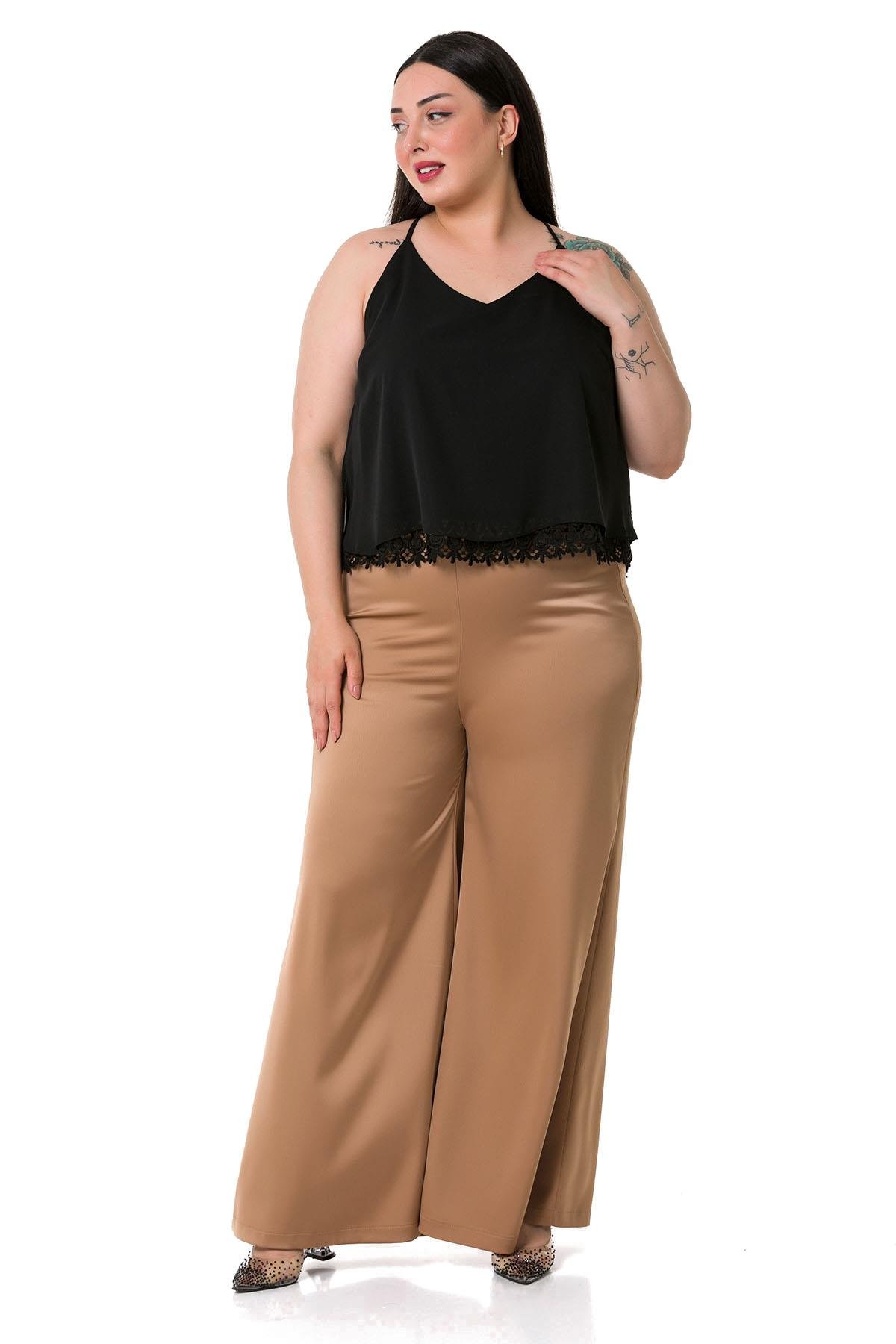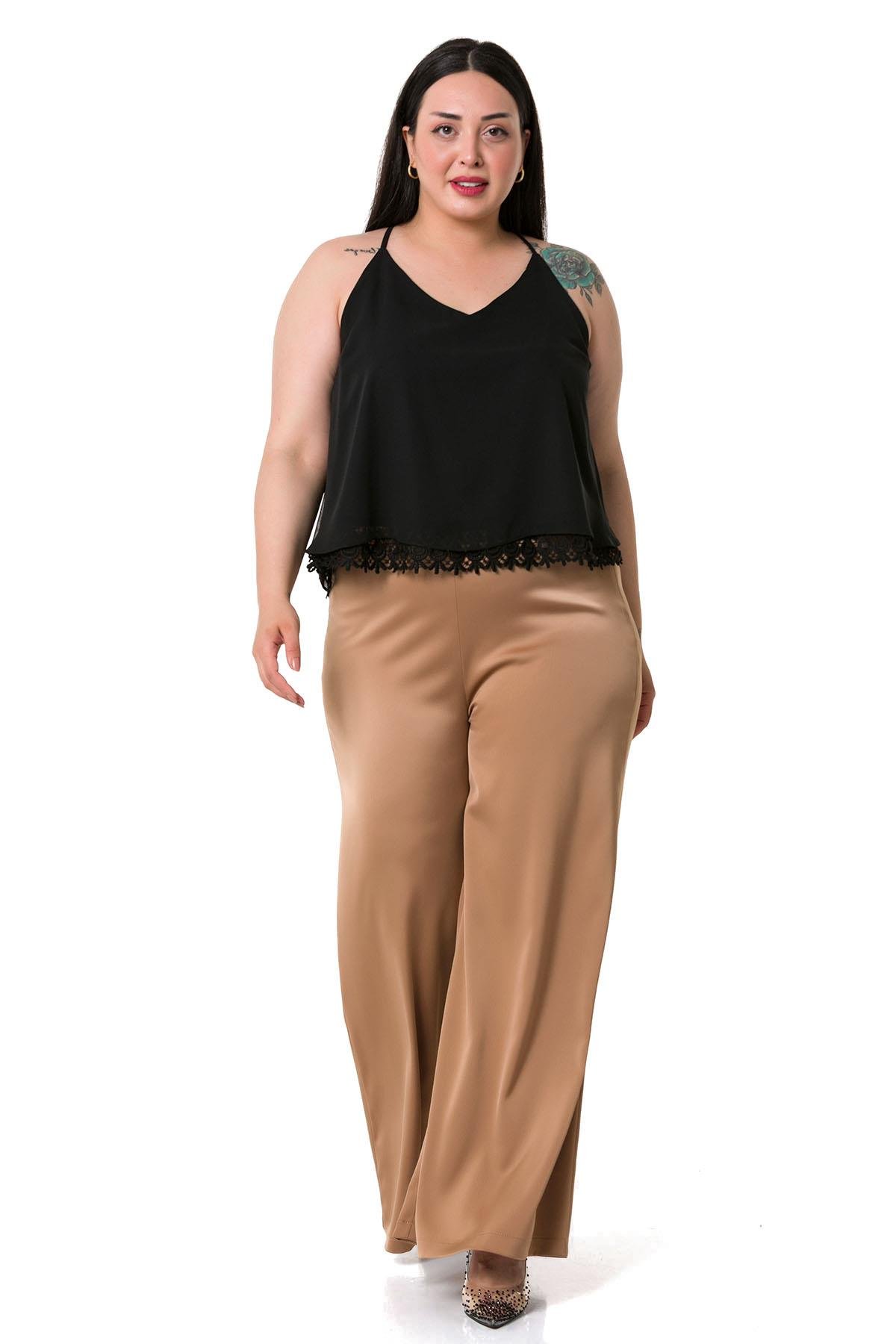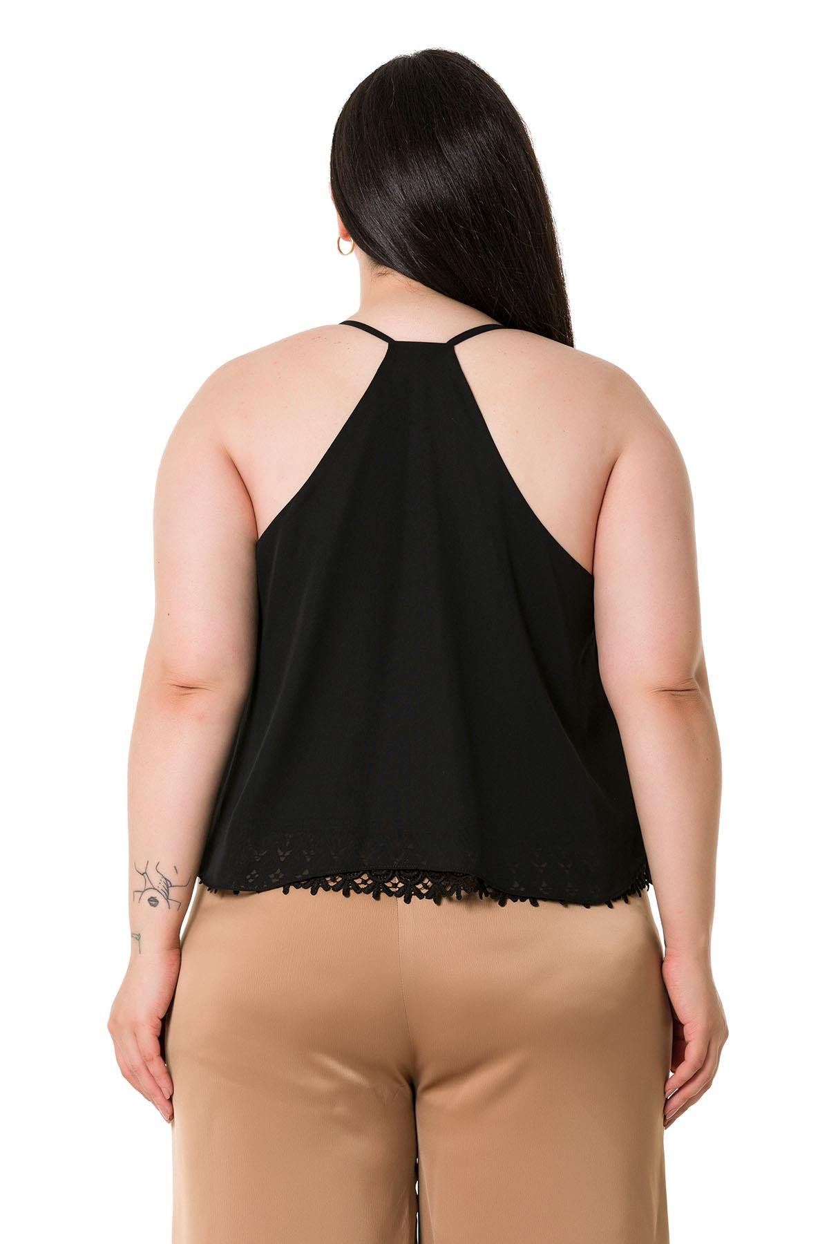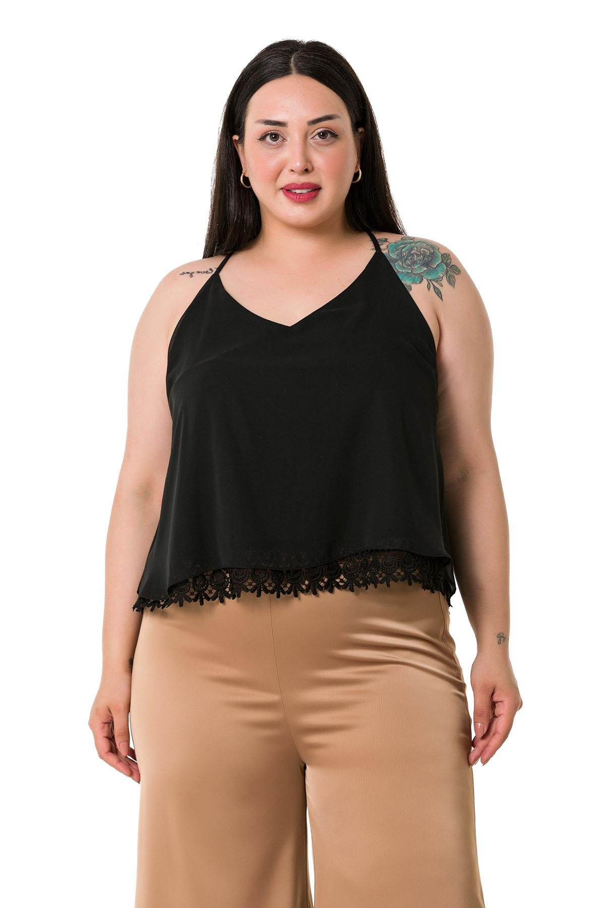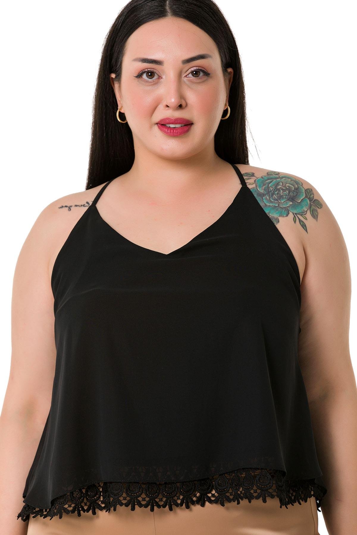 Large size backless, rope strapped lace detailed double layer chiffon blouse.