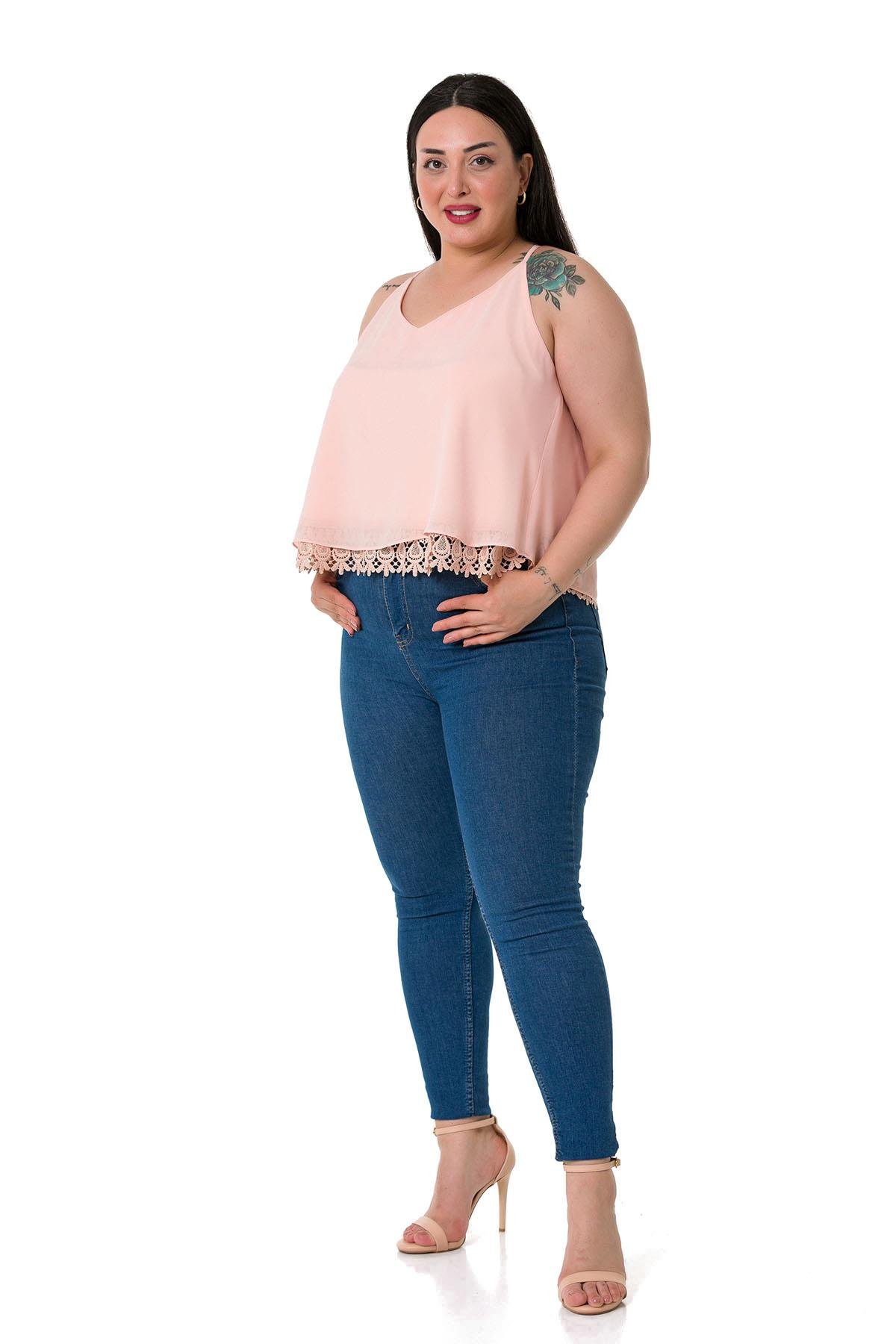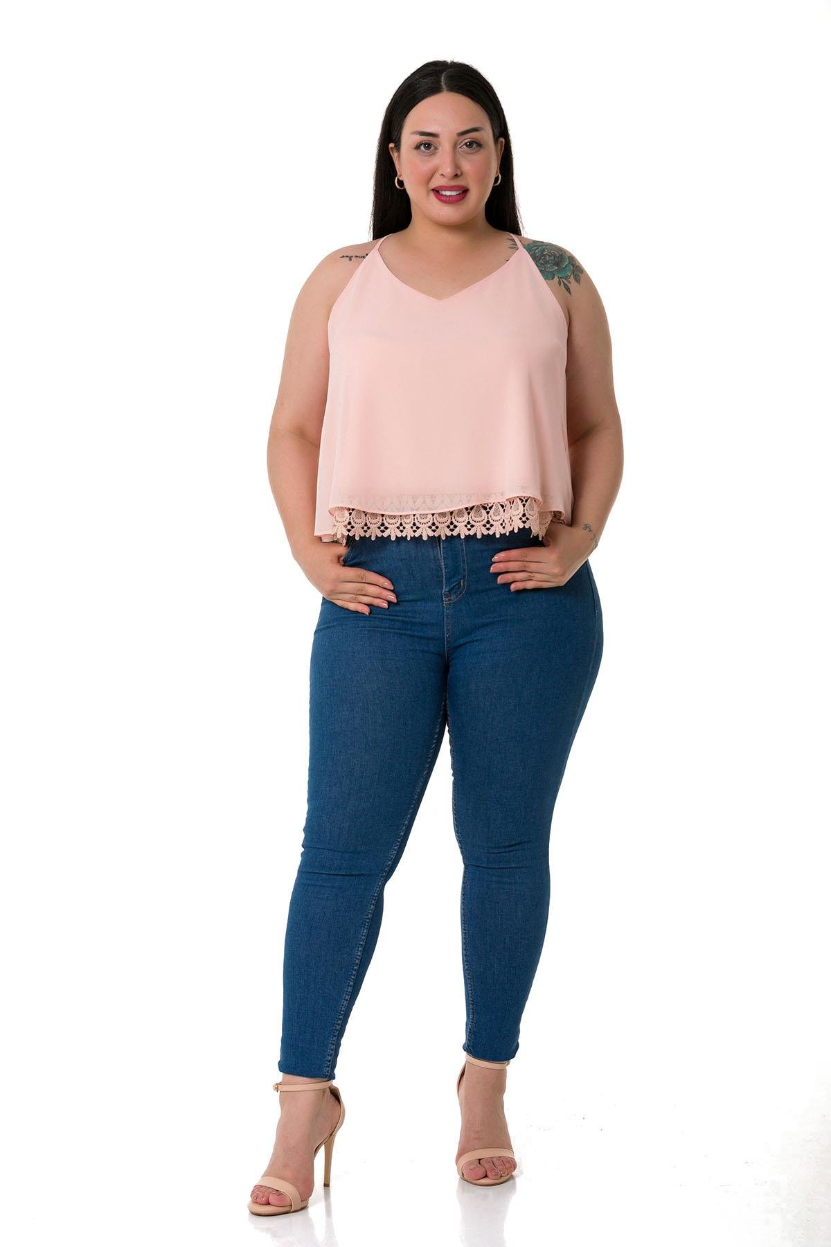 Plus Size Backless Lace Detailed Chiffon Light Pink Blouse