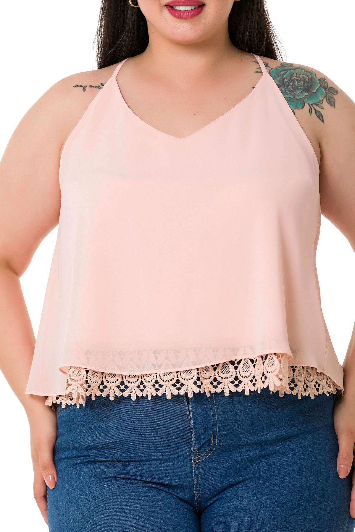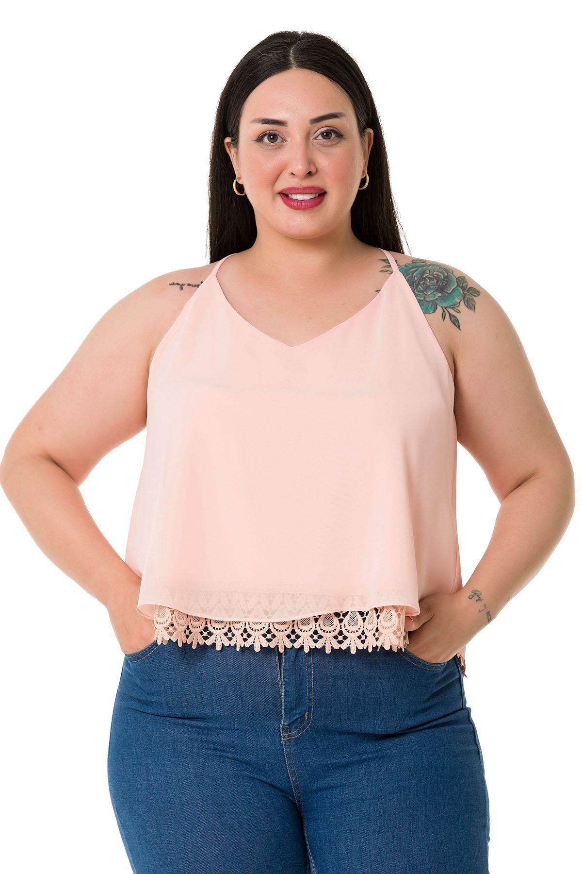 Large size backless, rope strapped lace detailed double layer chiffon blouse.