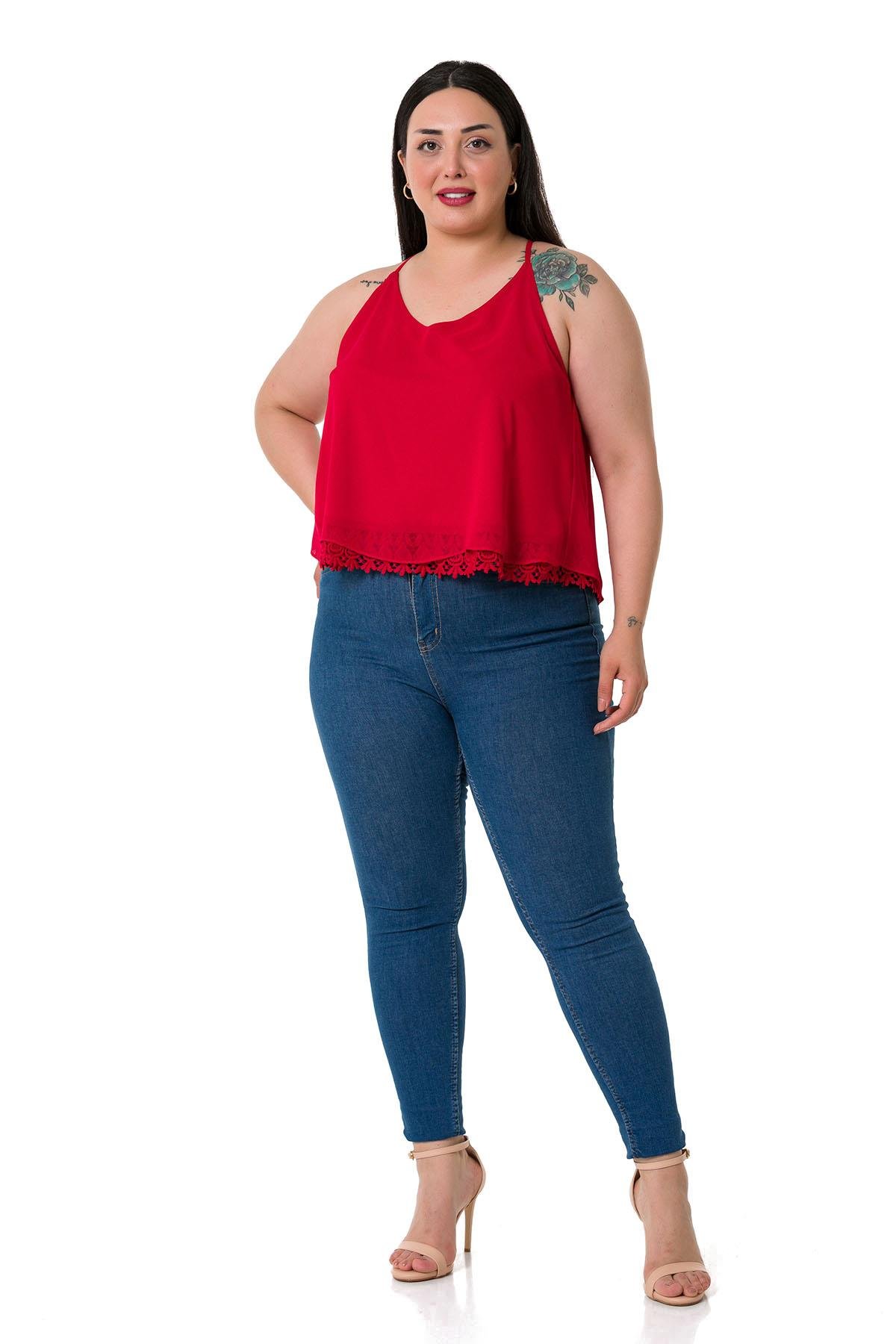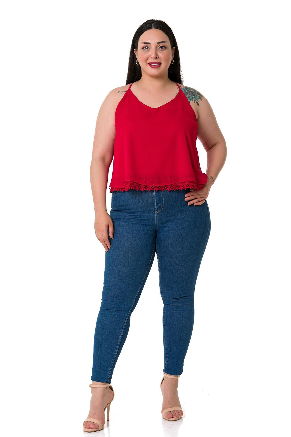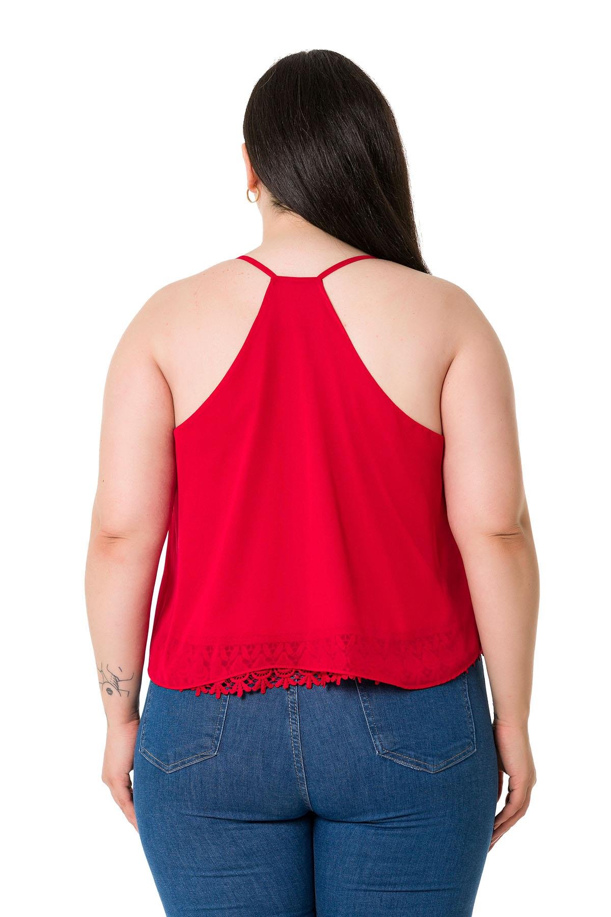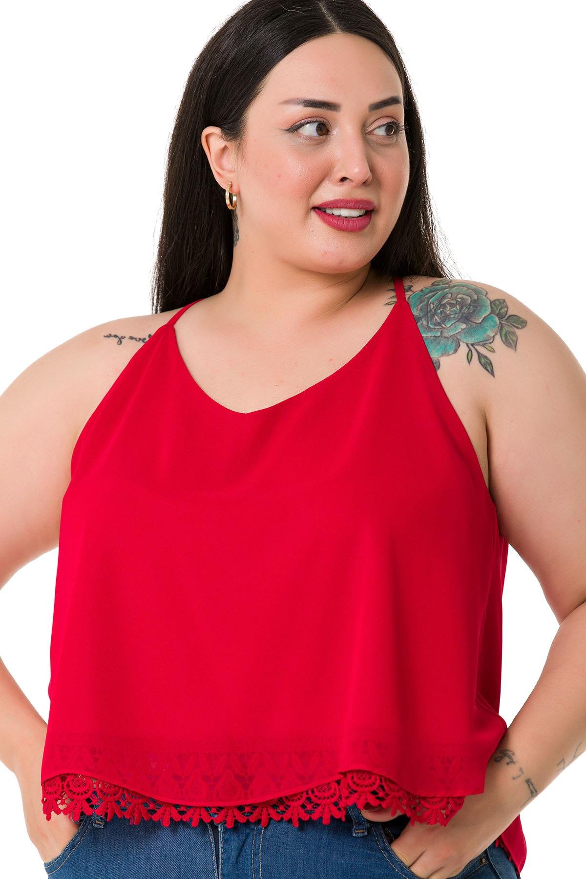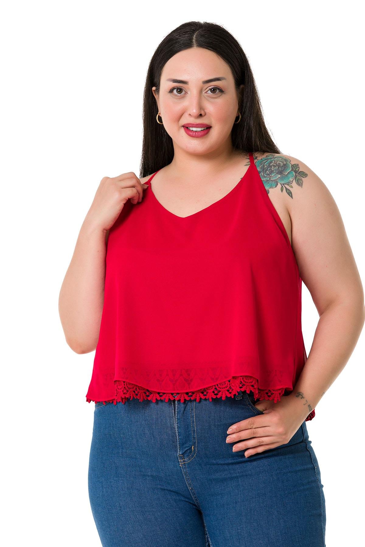 Plus Size Backless Lace Detailed Chiffon Red Blouse
