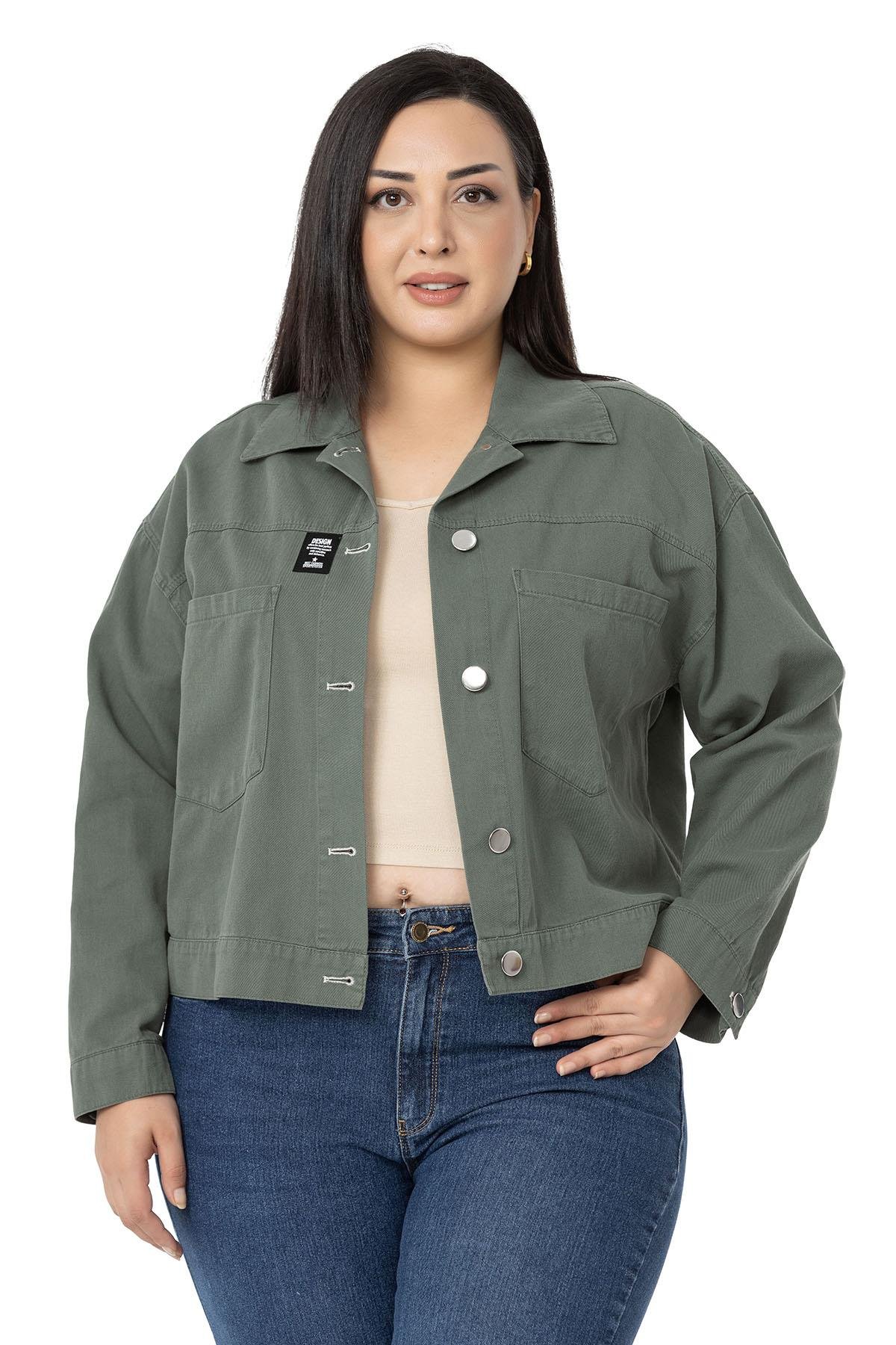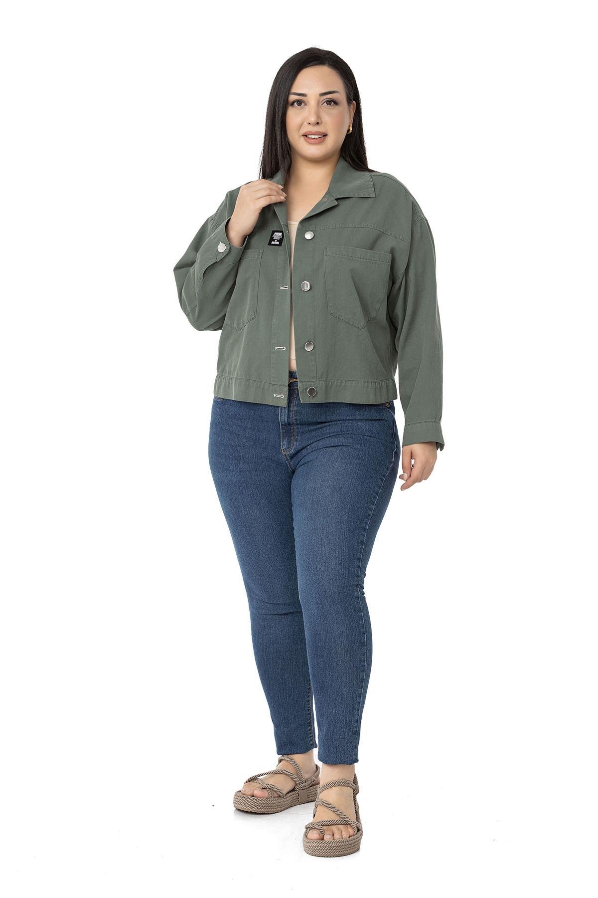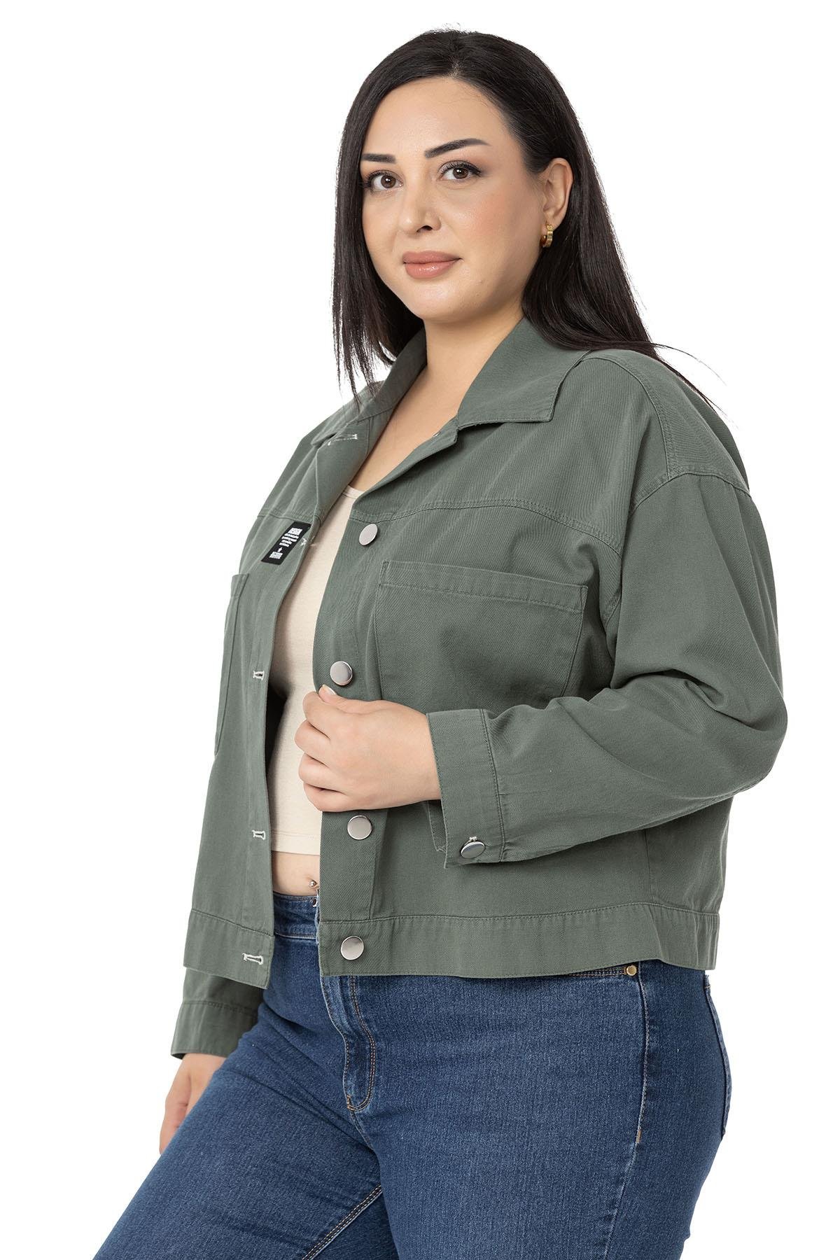 Plus Size Double Pocket Gabardine Short Khaki Jacket
