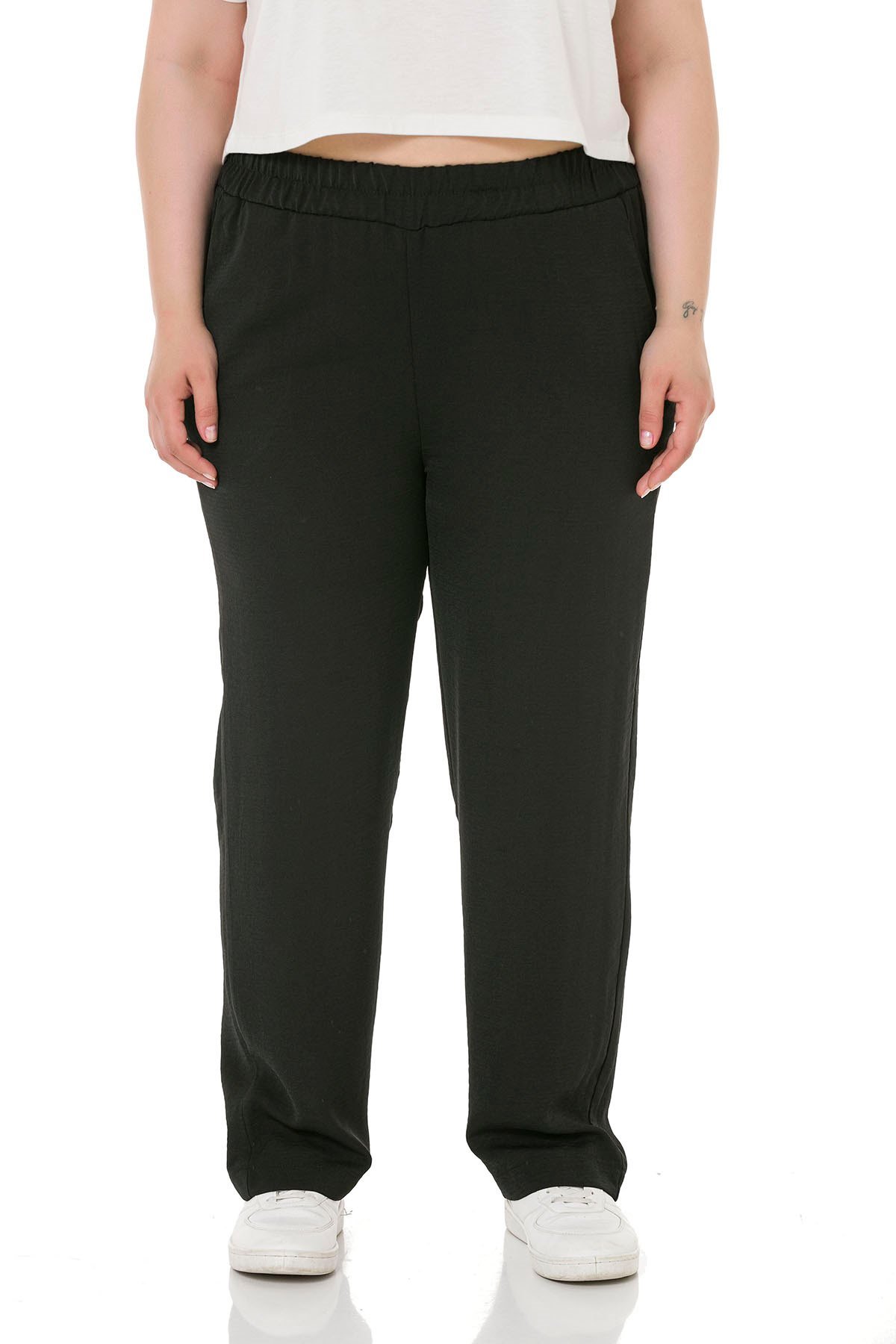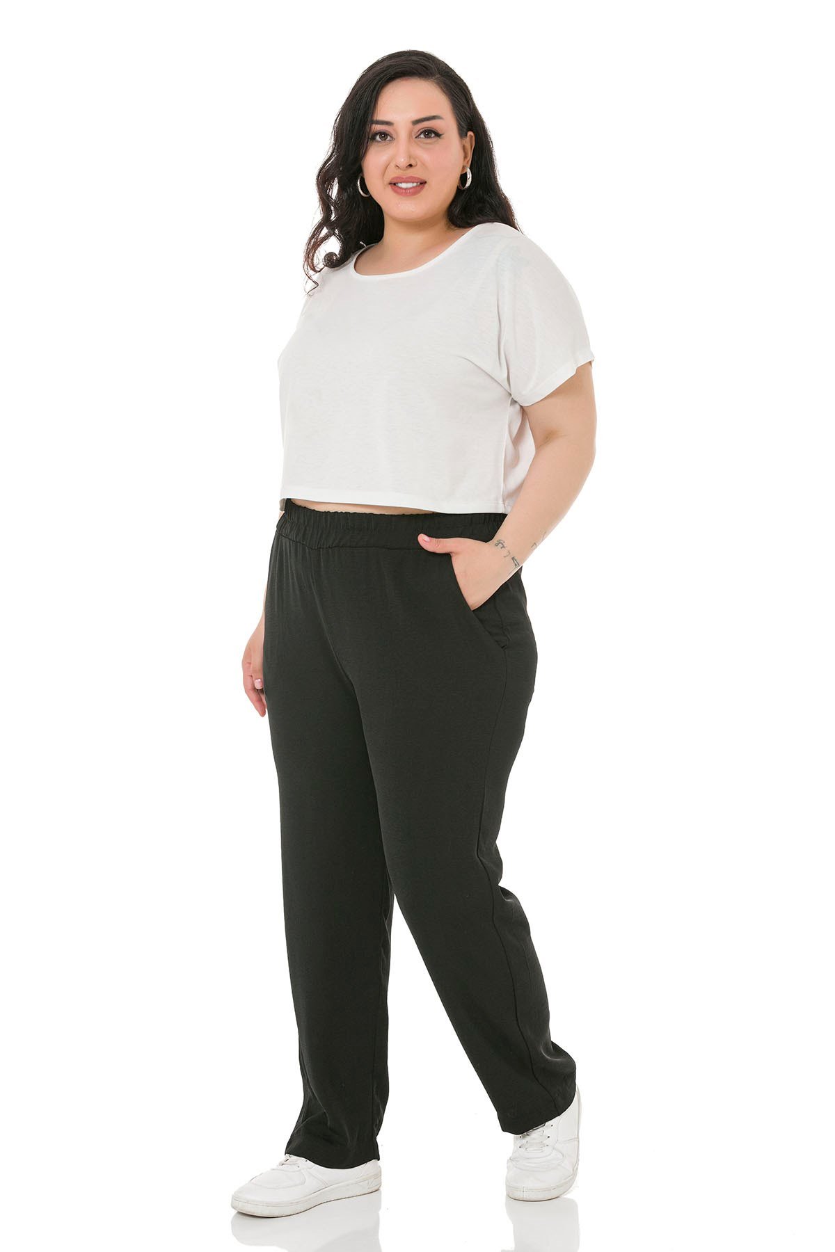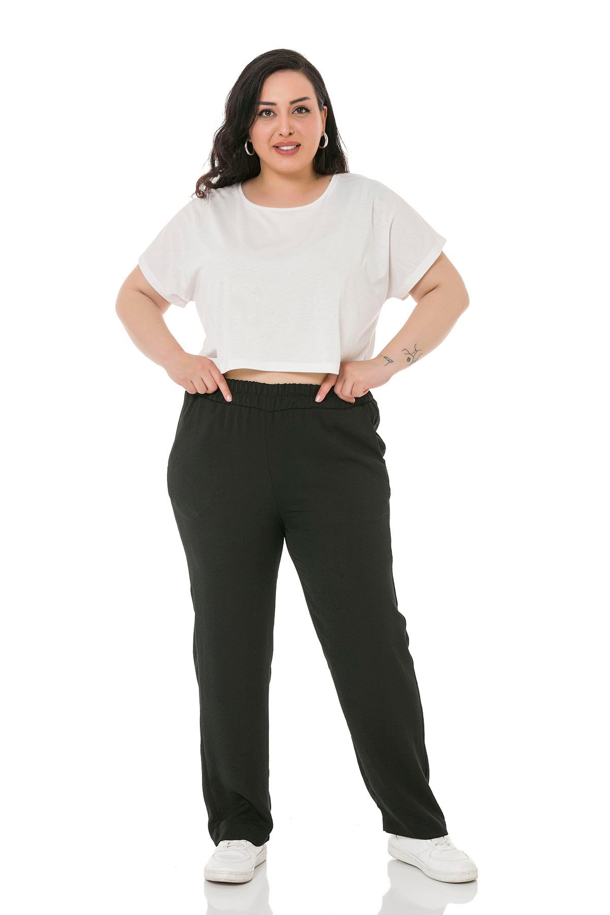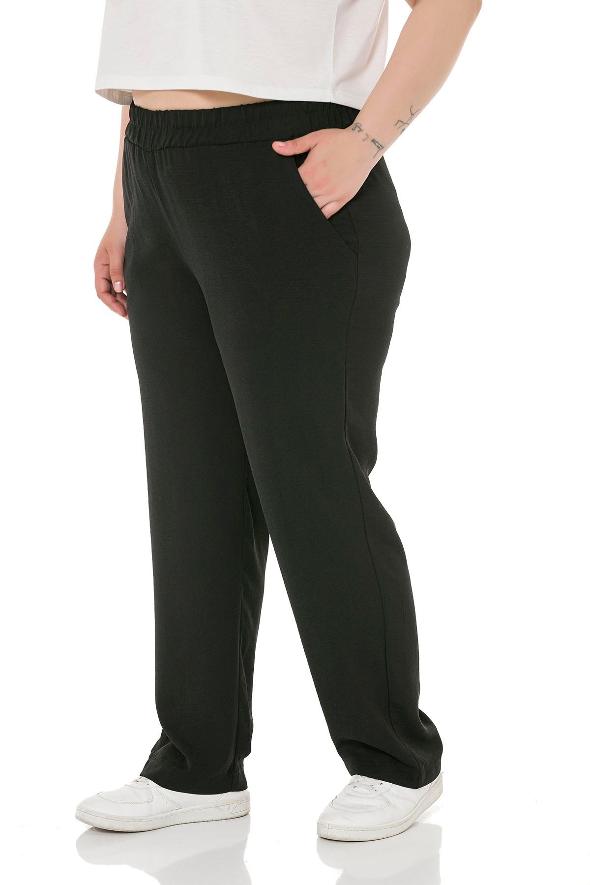 Plus Size Elastic Waist Pocket Linen Aerobin Black Trousers