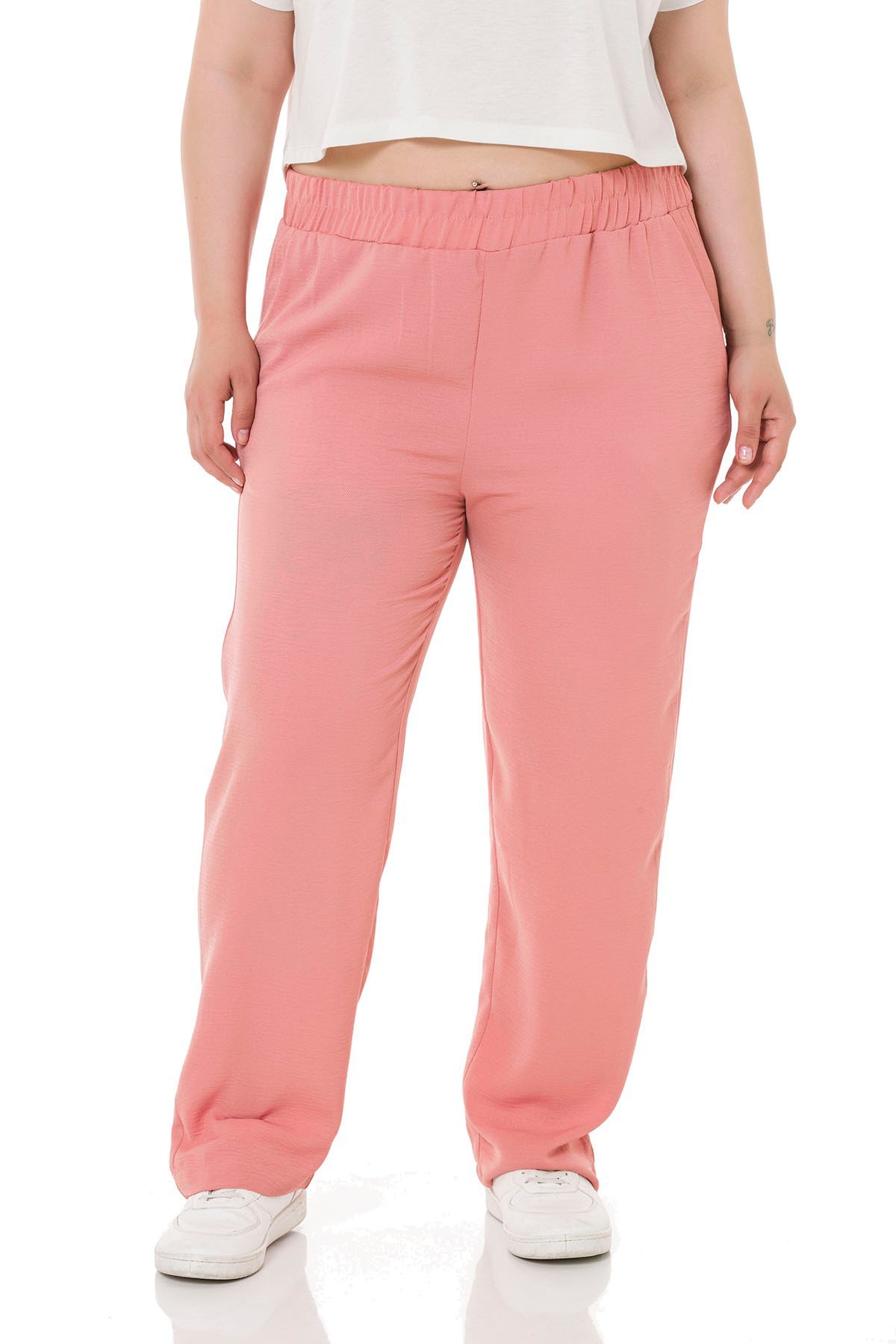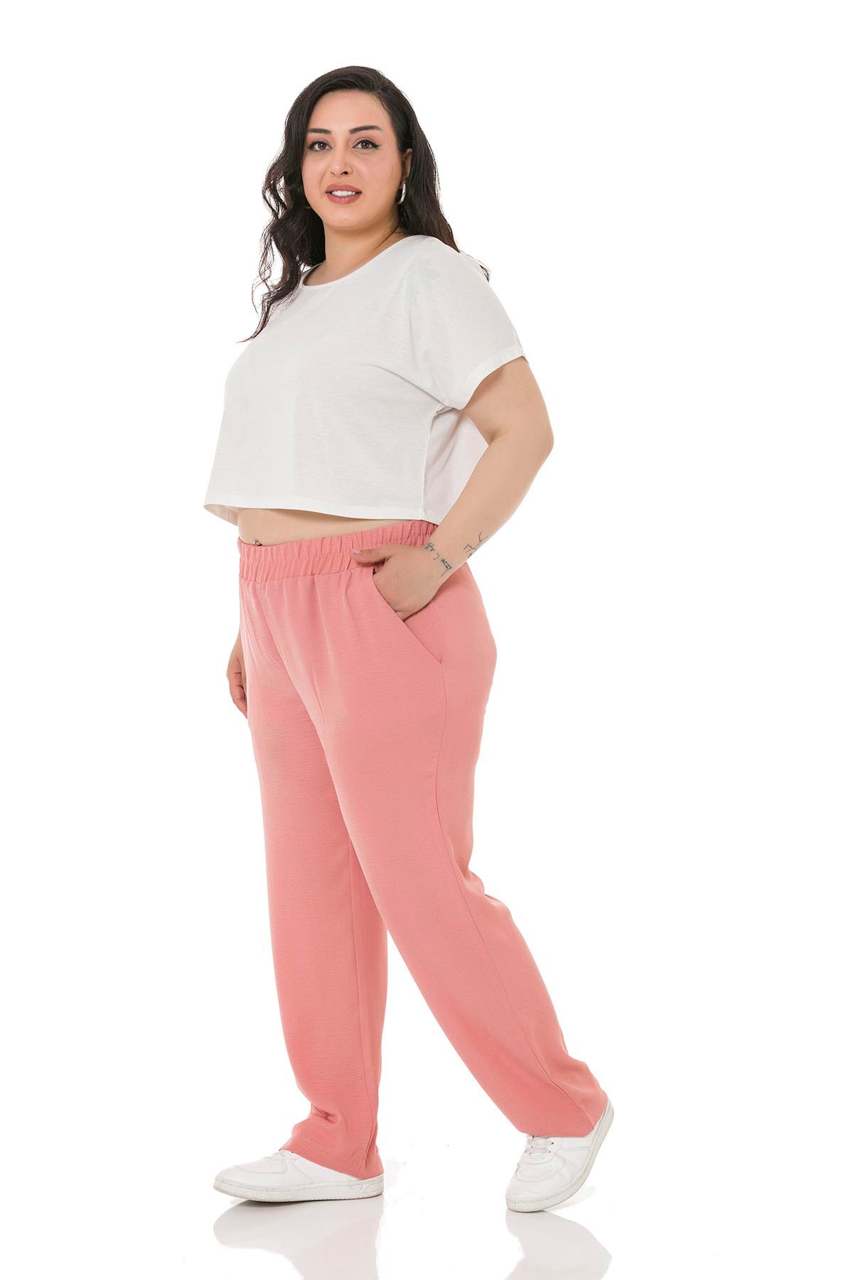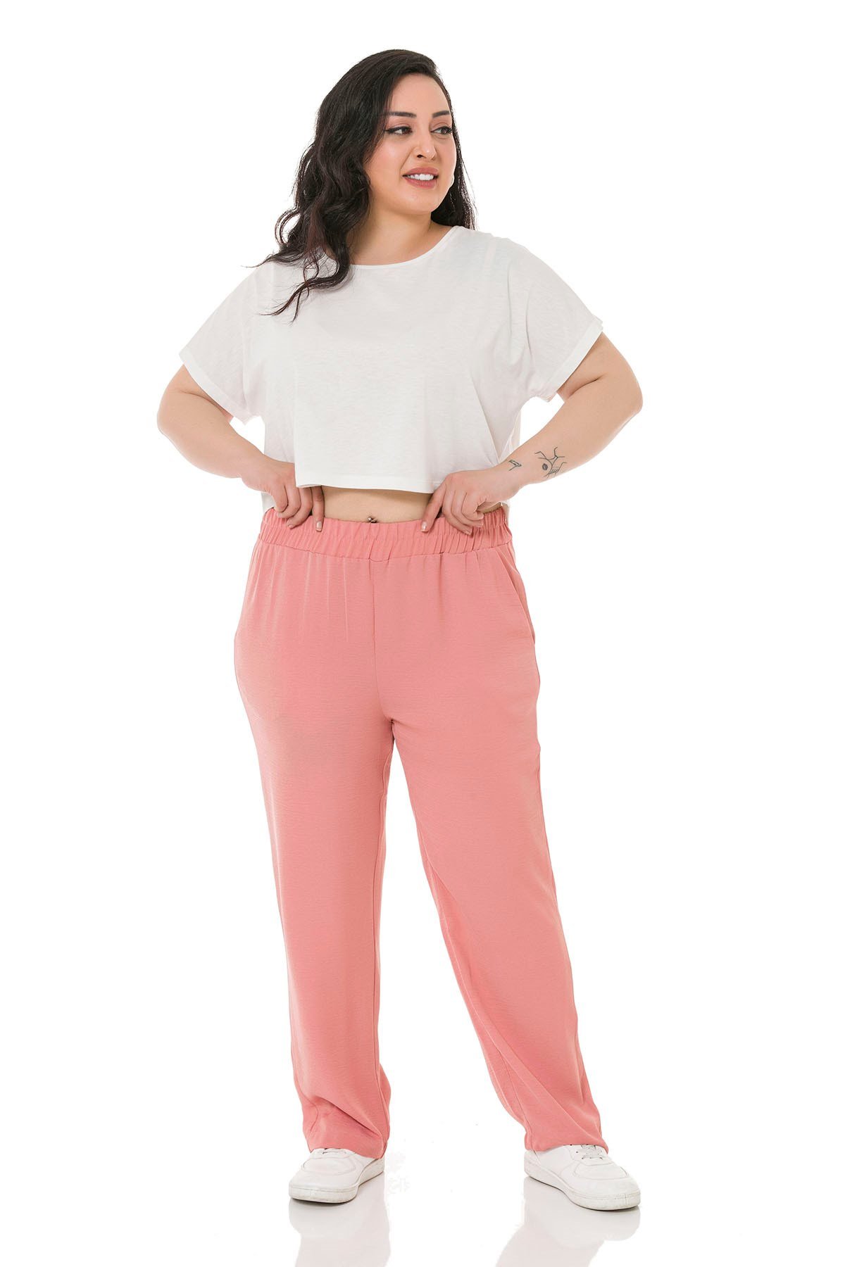 Plus Size Elastic Waist Pocket Linen Aerobin Light Pink Trousers