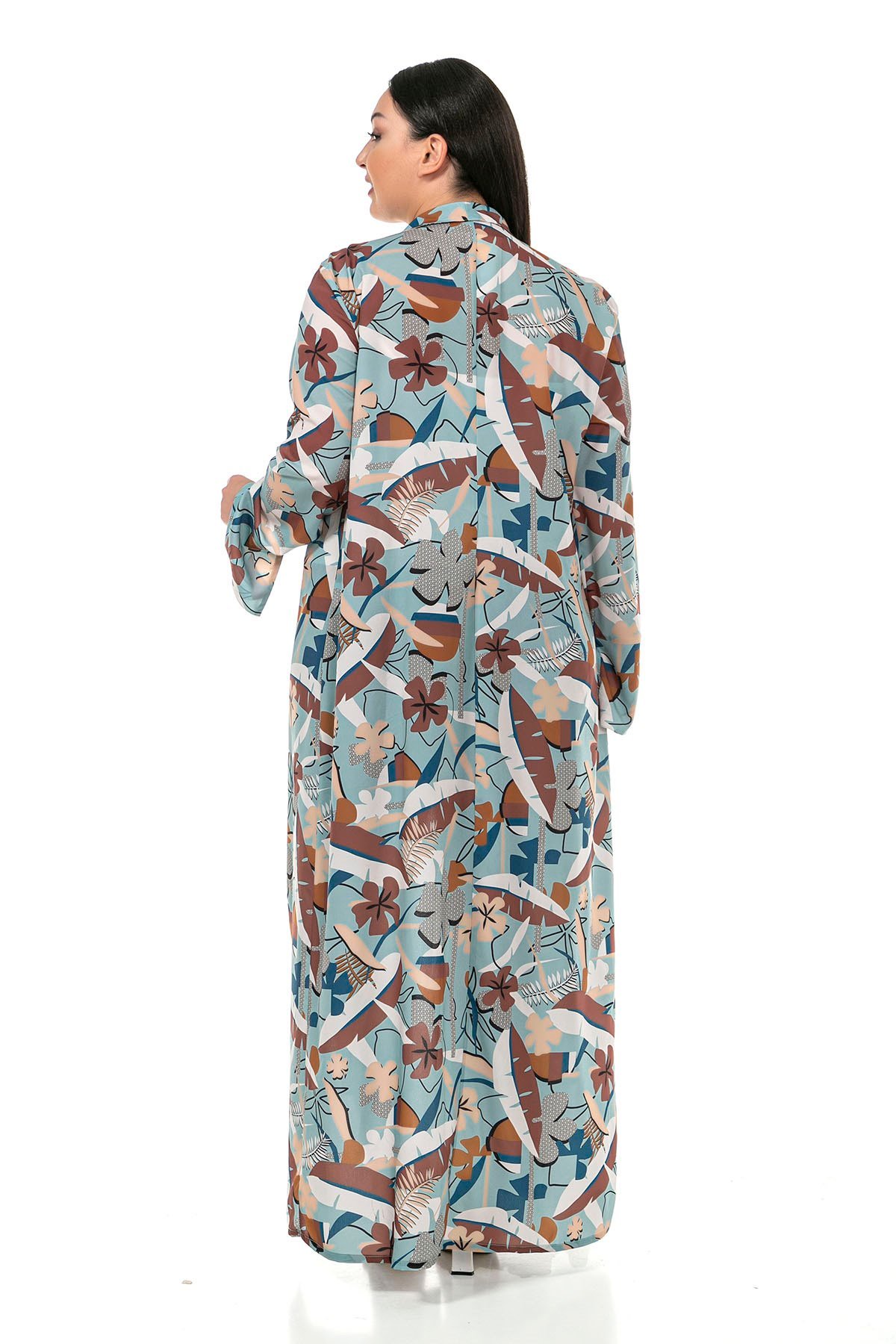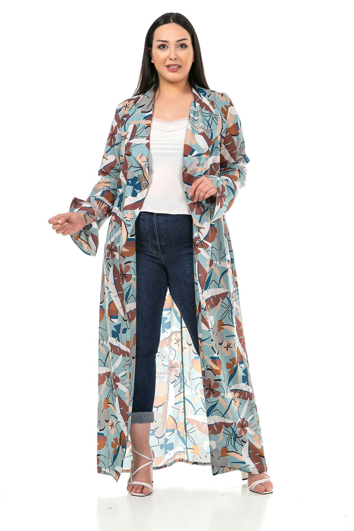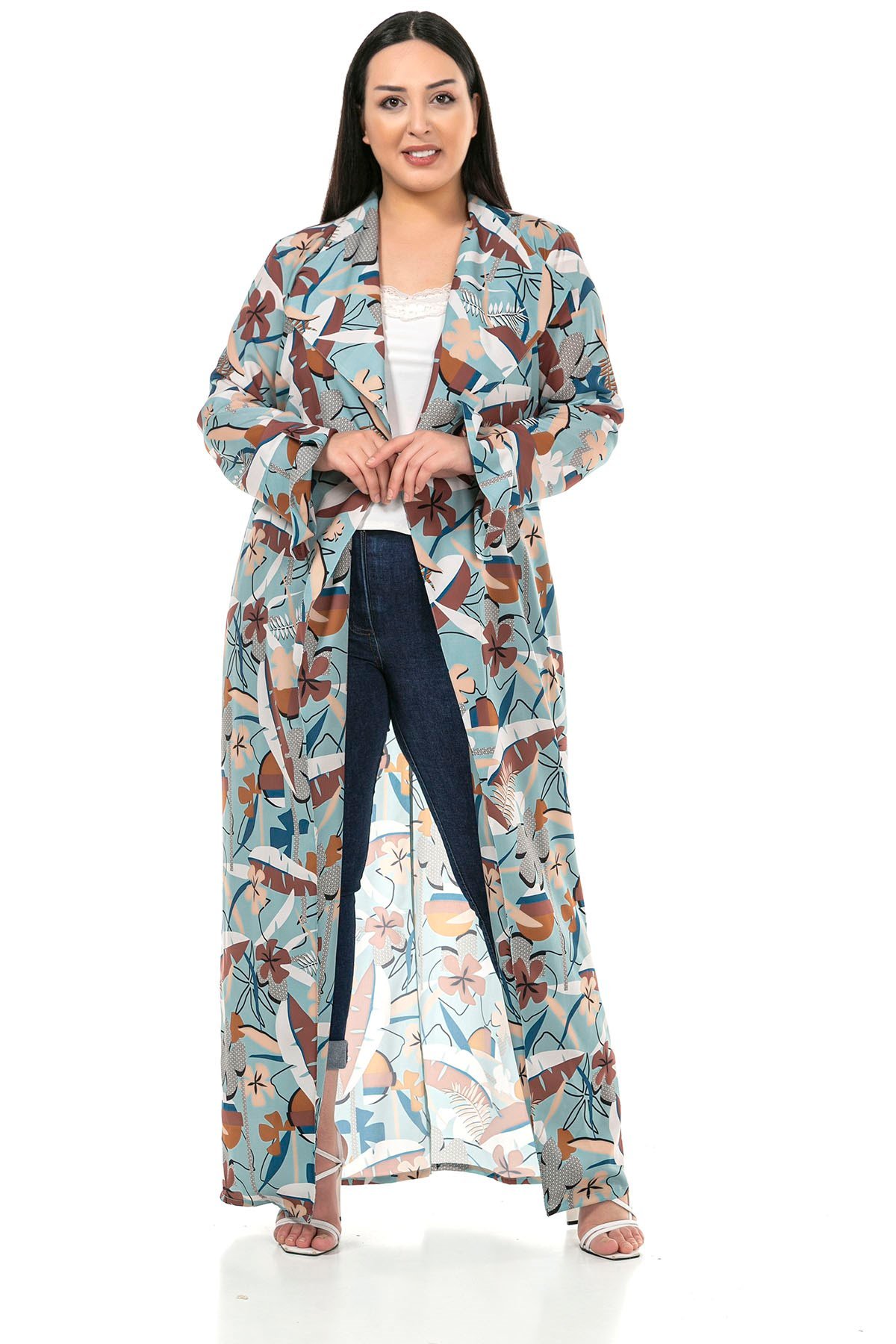 Long size kimono & kaftan with handkerchief neckline and flower and leaf pattern with slit detail on the sleeves.