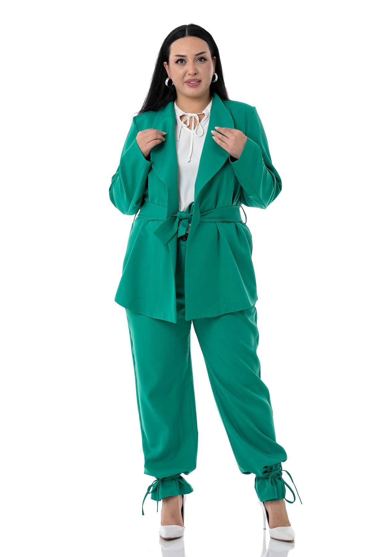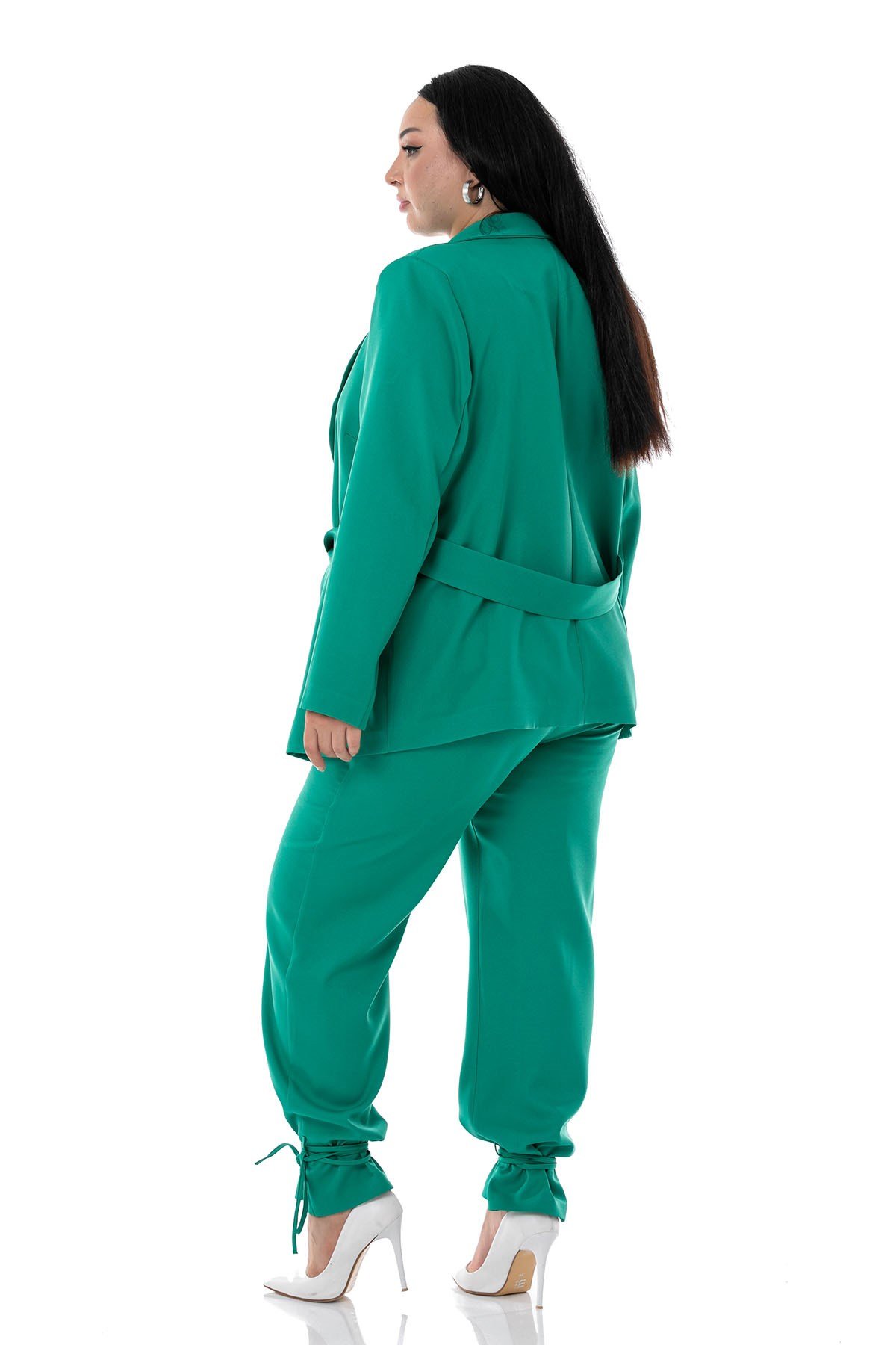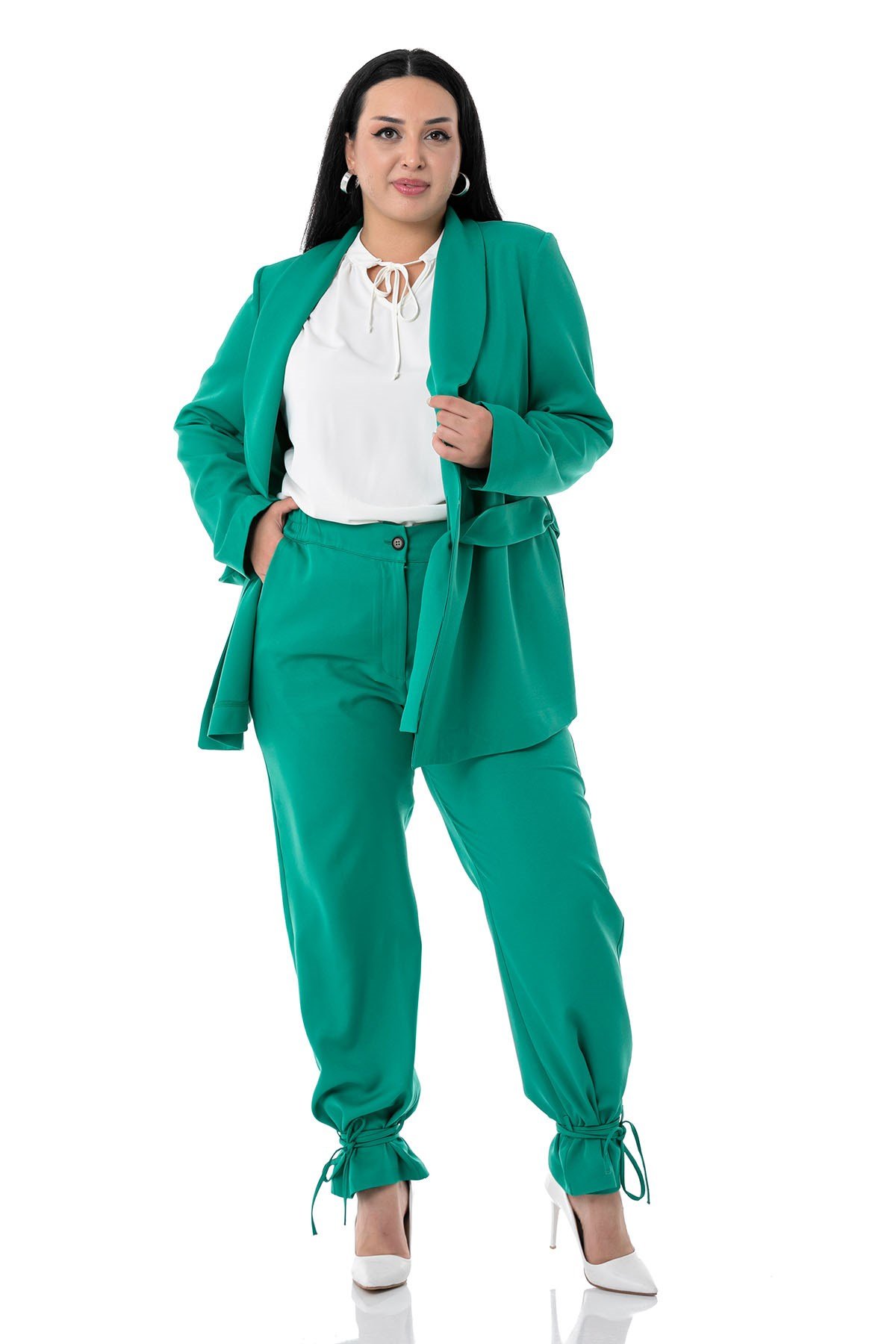 It consists of a large size, unlined, long-sleeved jacket with binding detail on the front and back, and a large size, zippered trousers with ankle binding detail, side elasticated narrow leg pockets.
