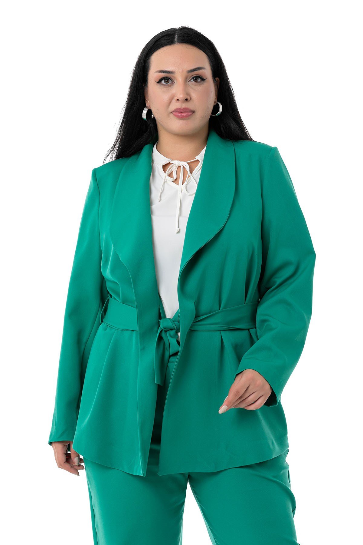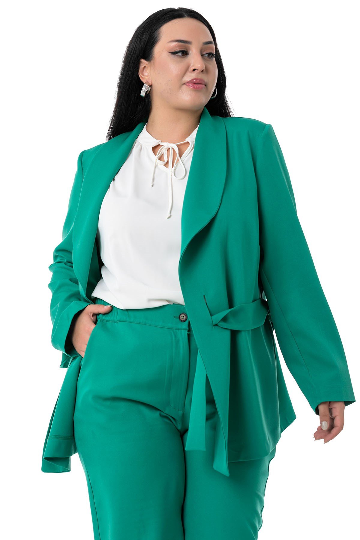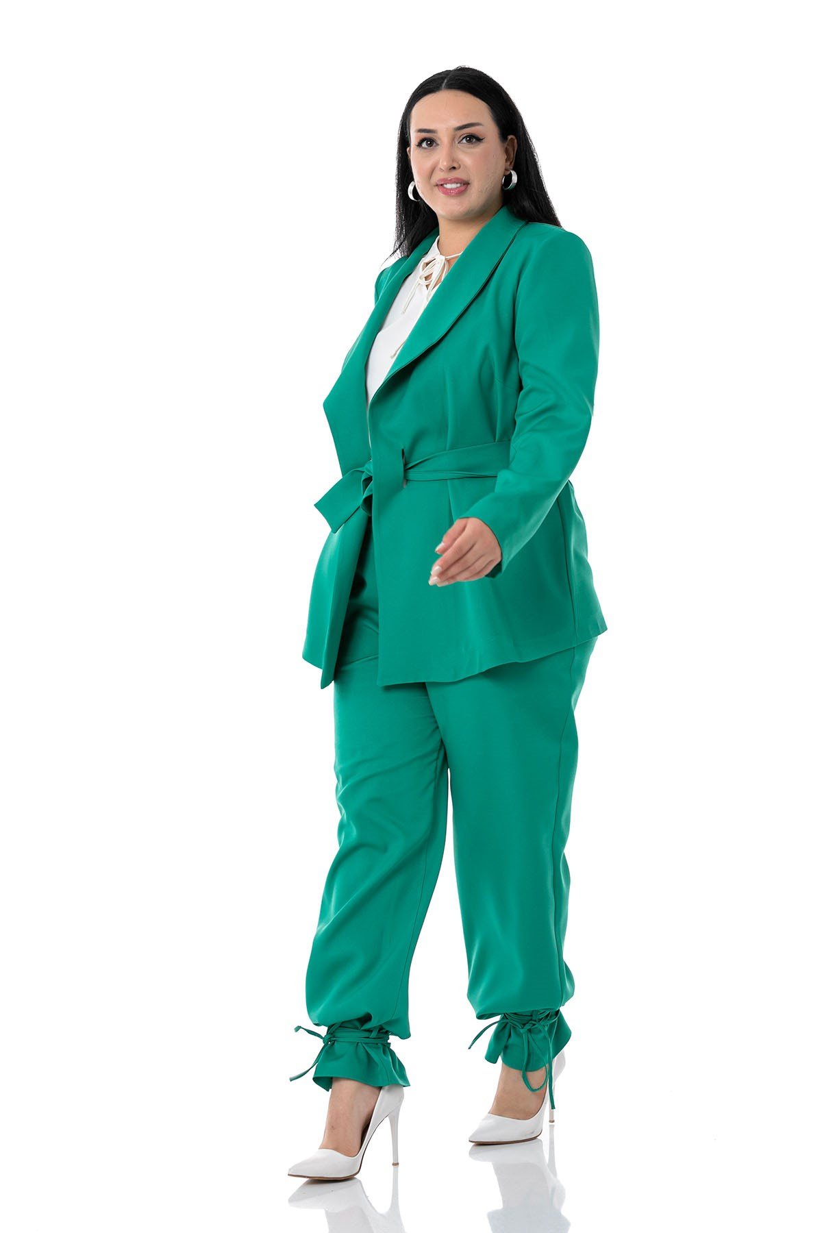 It consists of a large size, unlined, long-sleeved jacket with binding detail on the front and back, and a large size, zippered trousers with ankle binding detail, side elasticated narrow leg pockets.