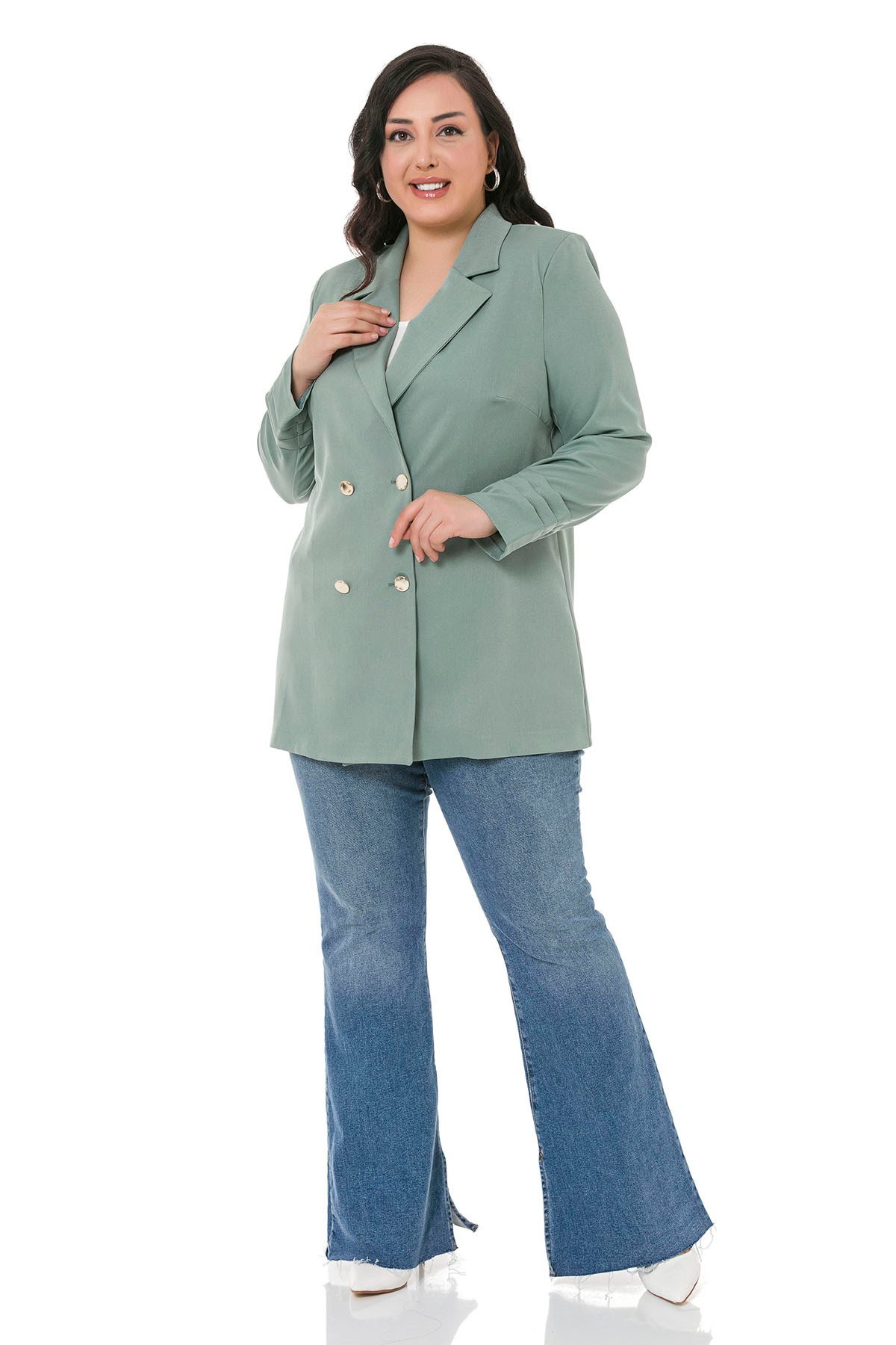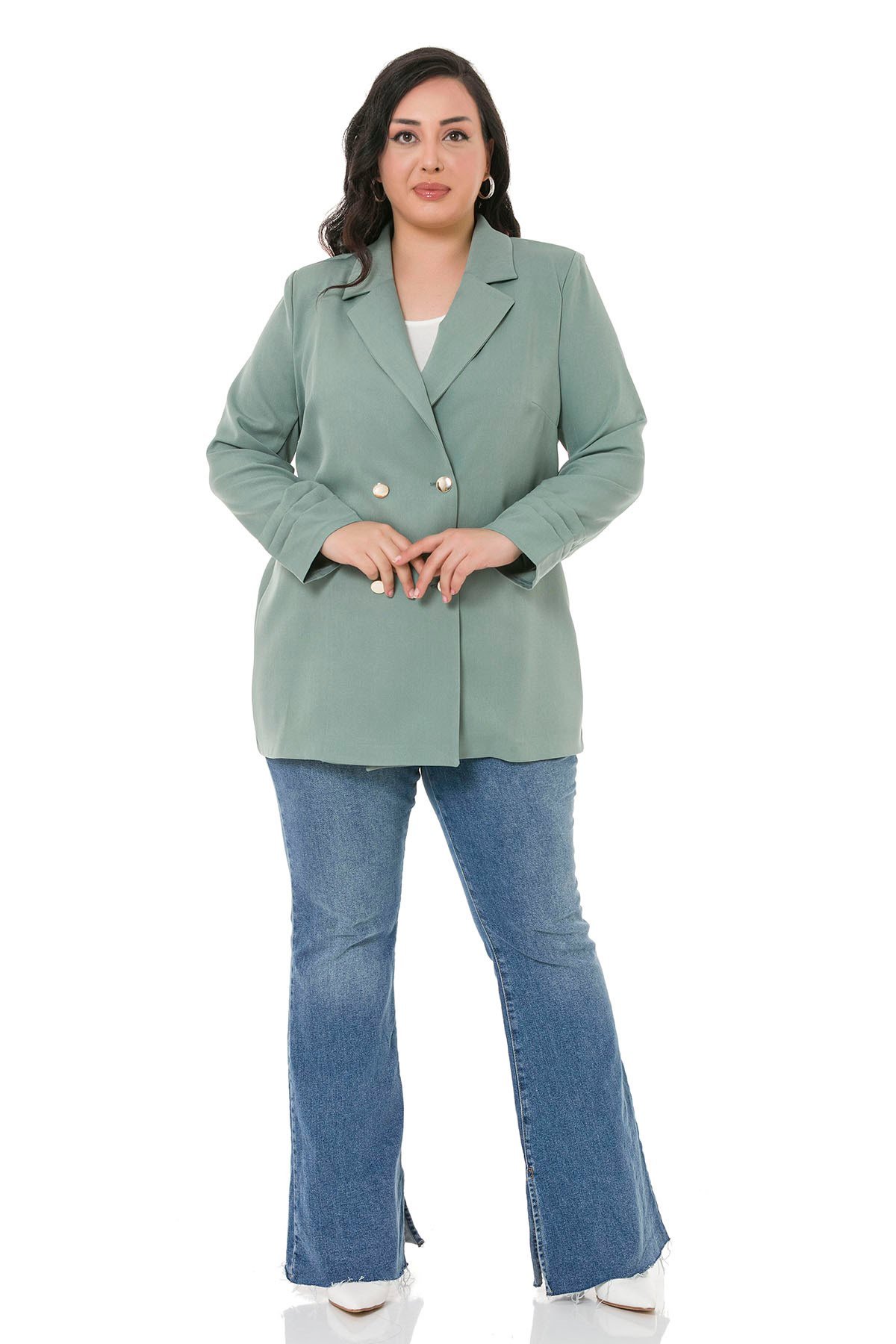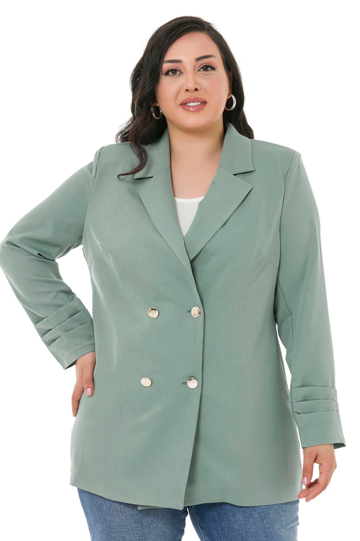 Plus Size Mono Collar Closing Sleeve Pleated Mint Unlined Jacket