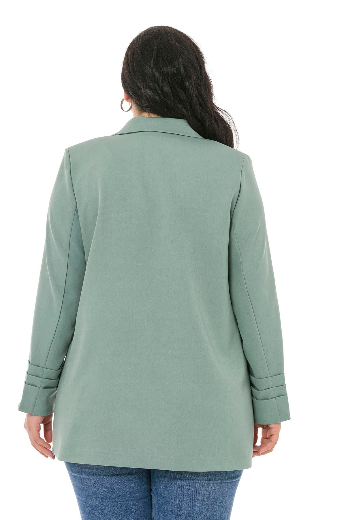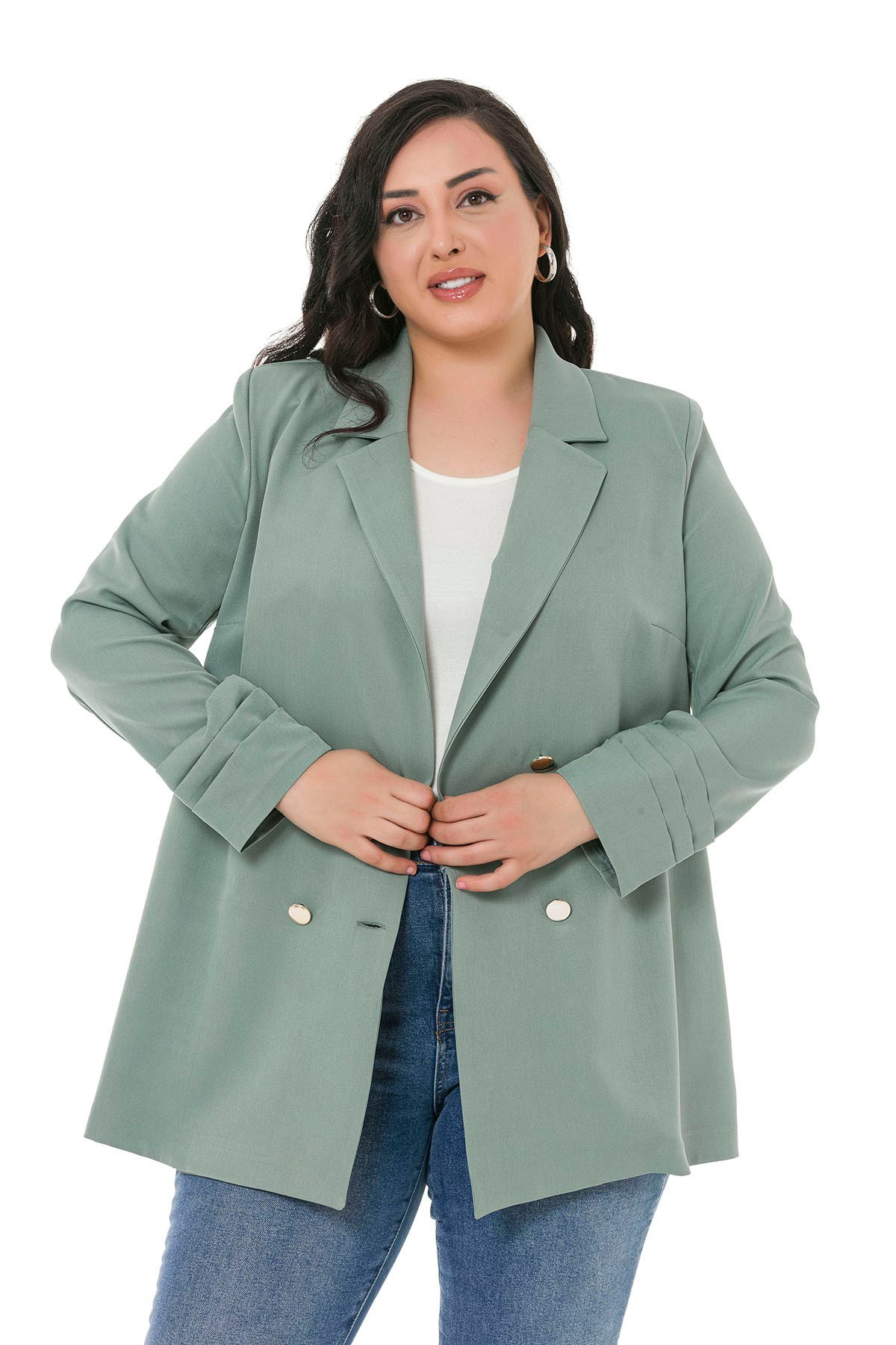Plus size mono collar, double-breasted closing sleeves, pleated unlined jacket.