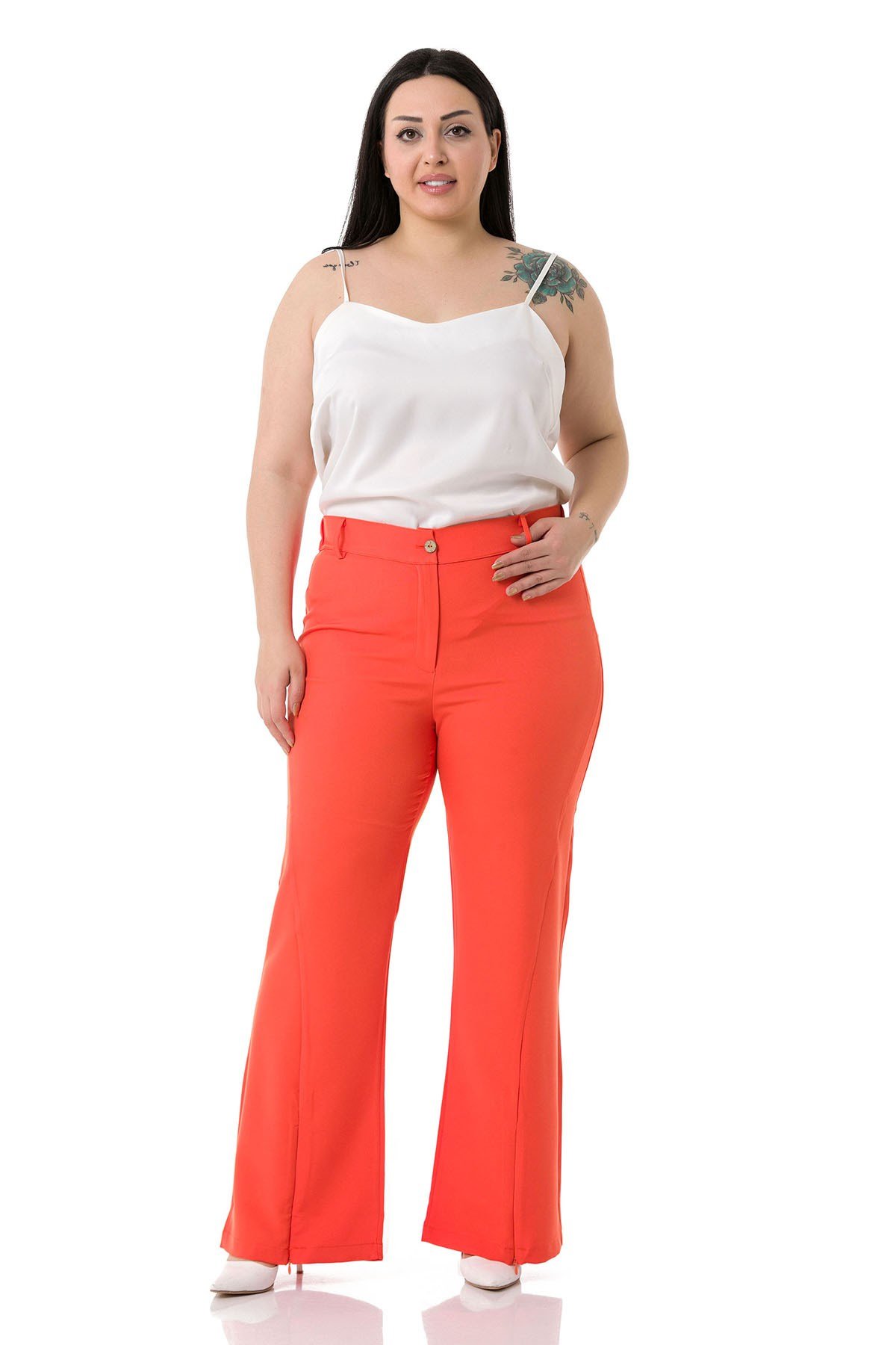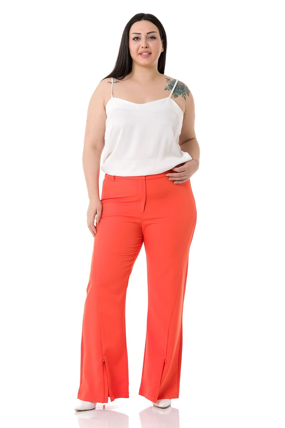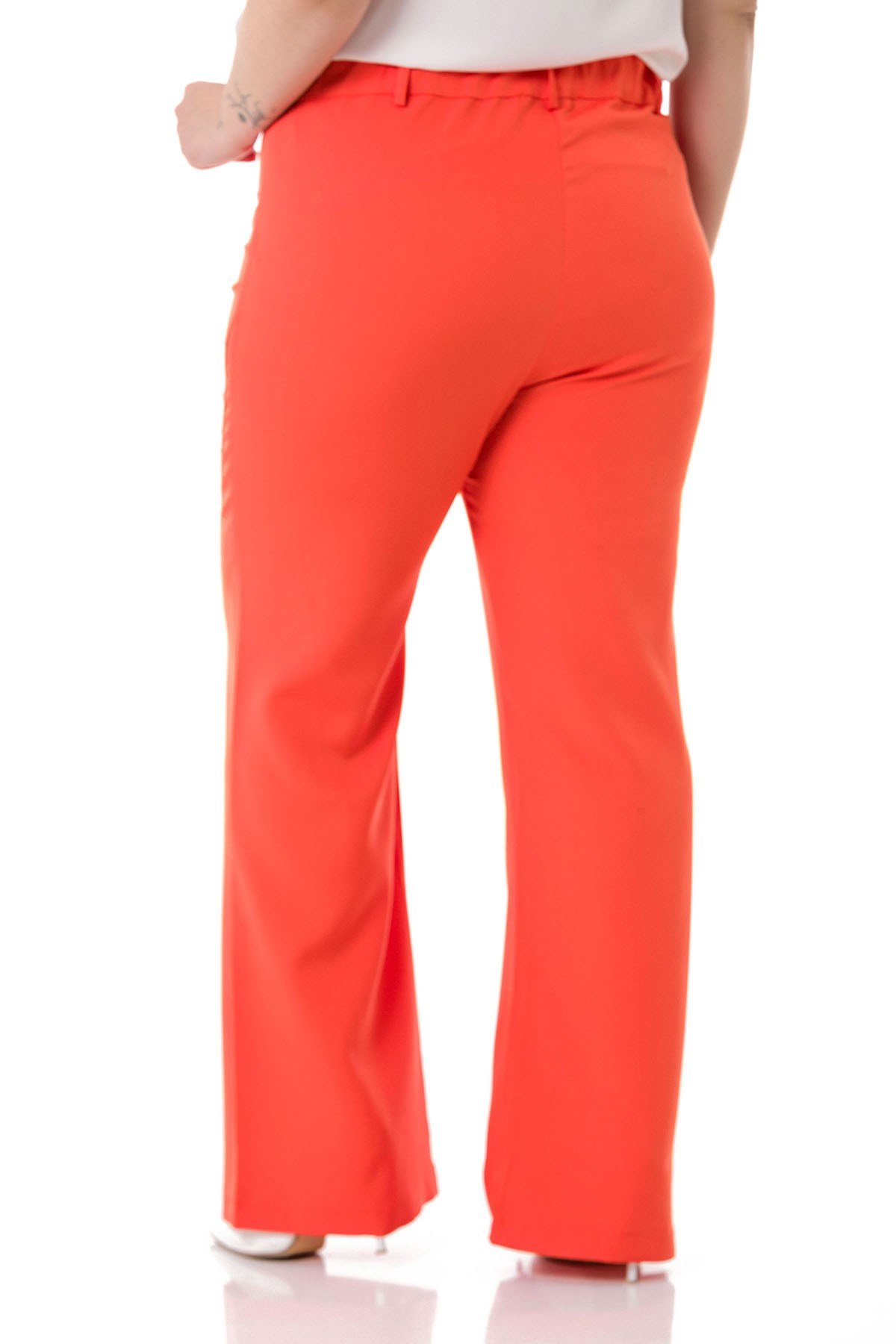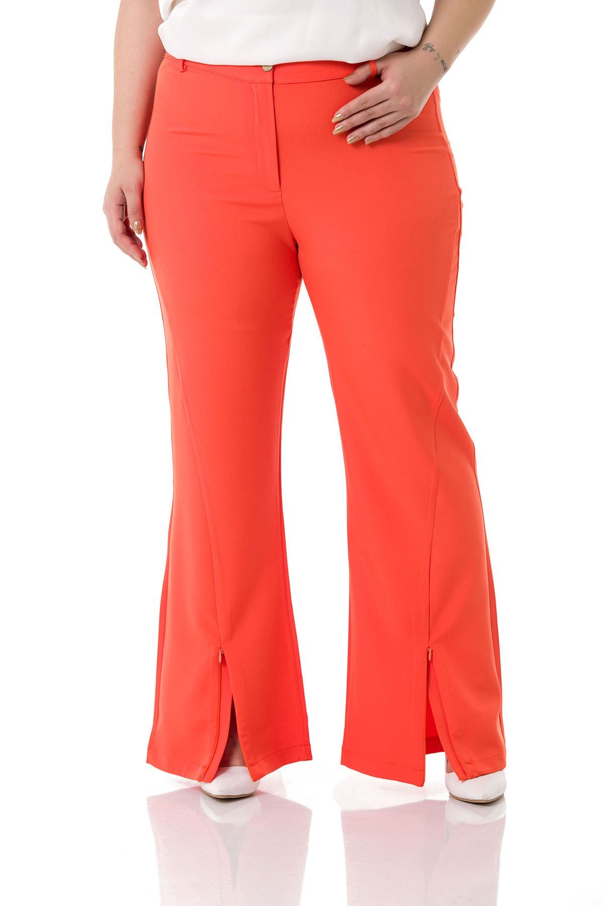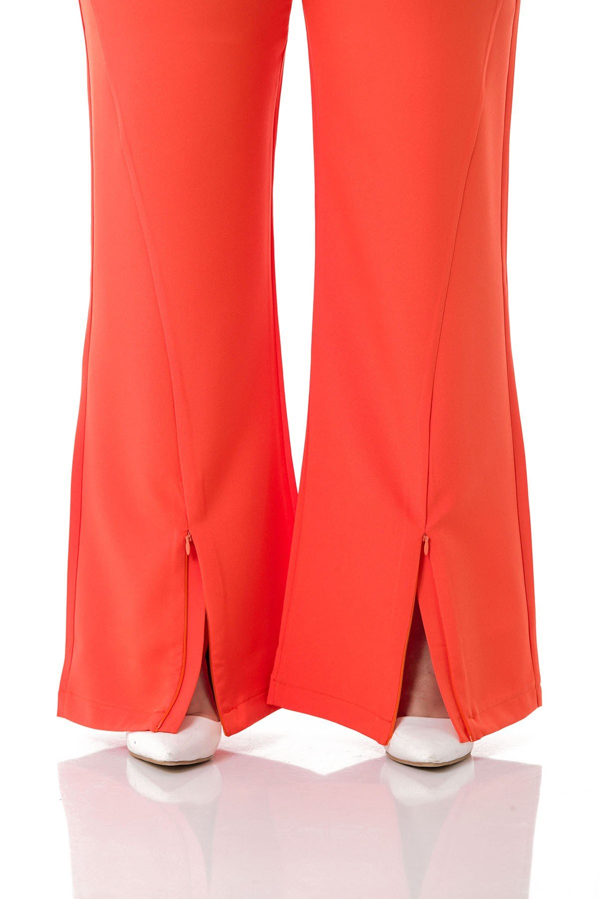 Plus Size Orange Trousers with Zippered Legs and Elastic Back Waist