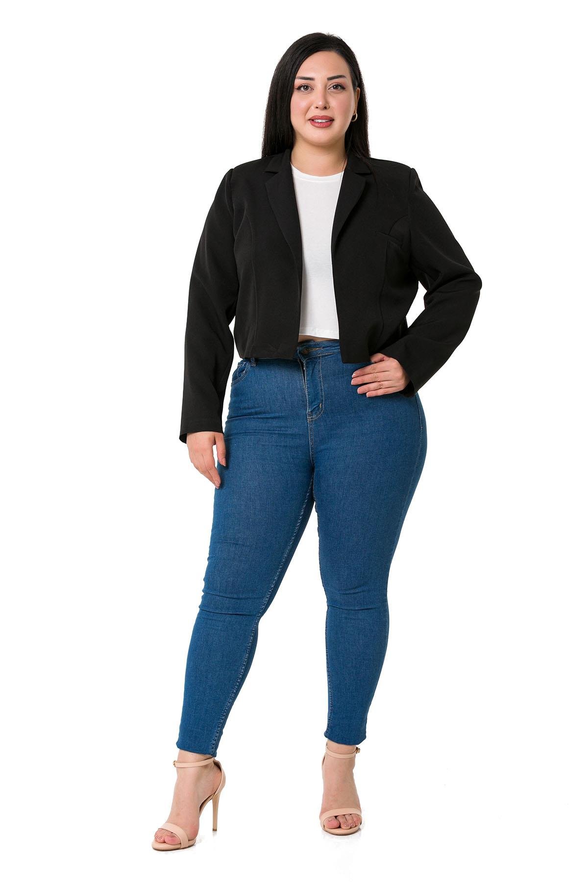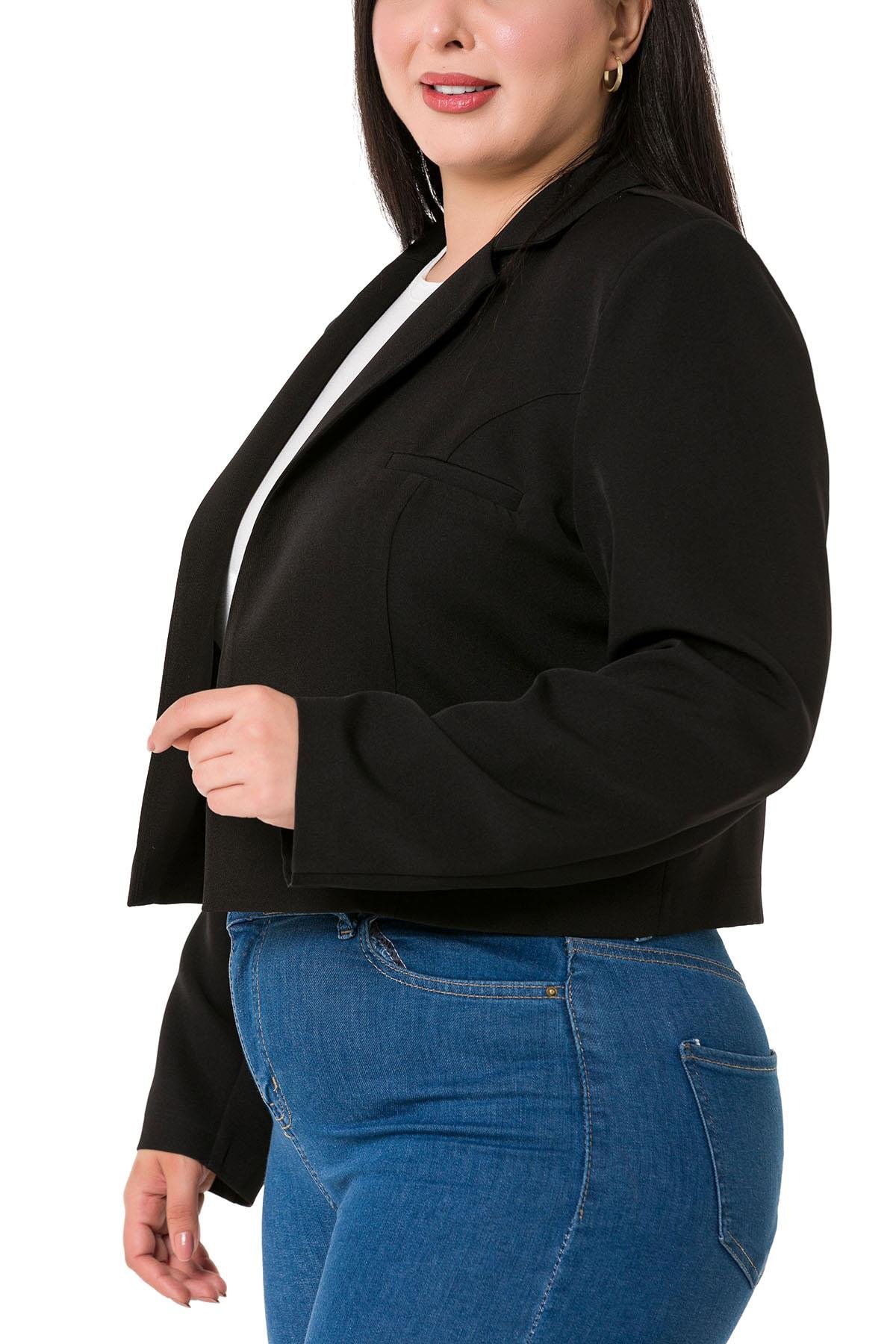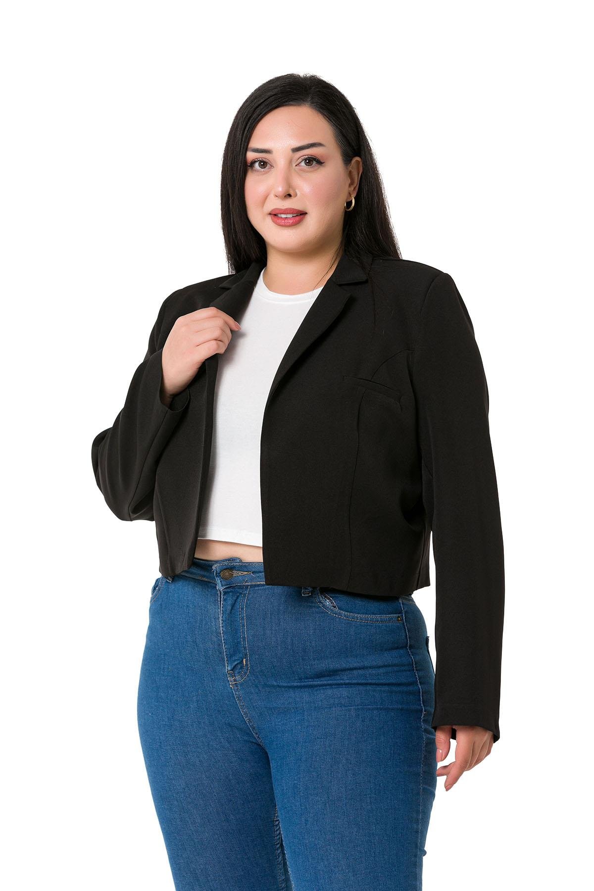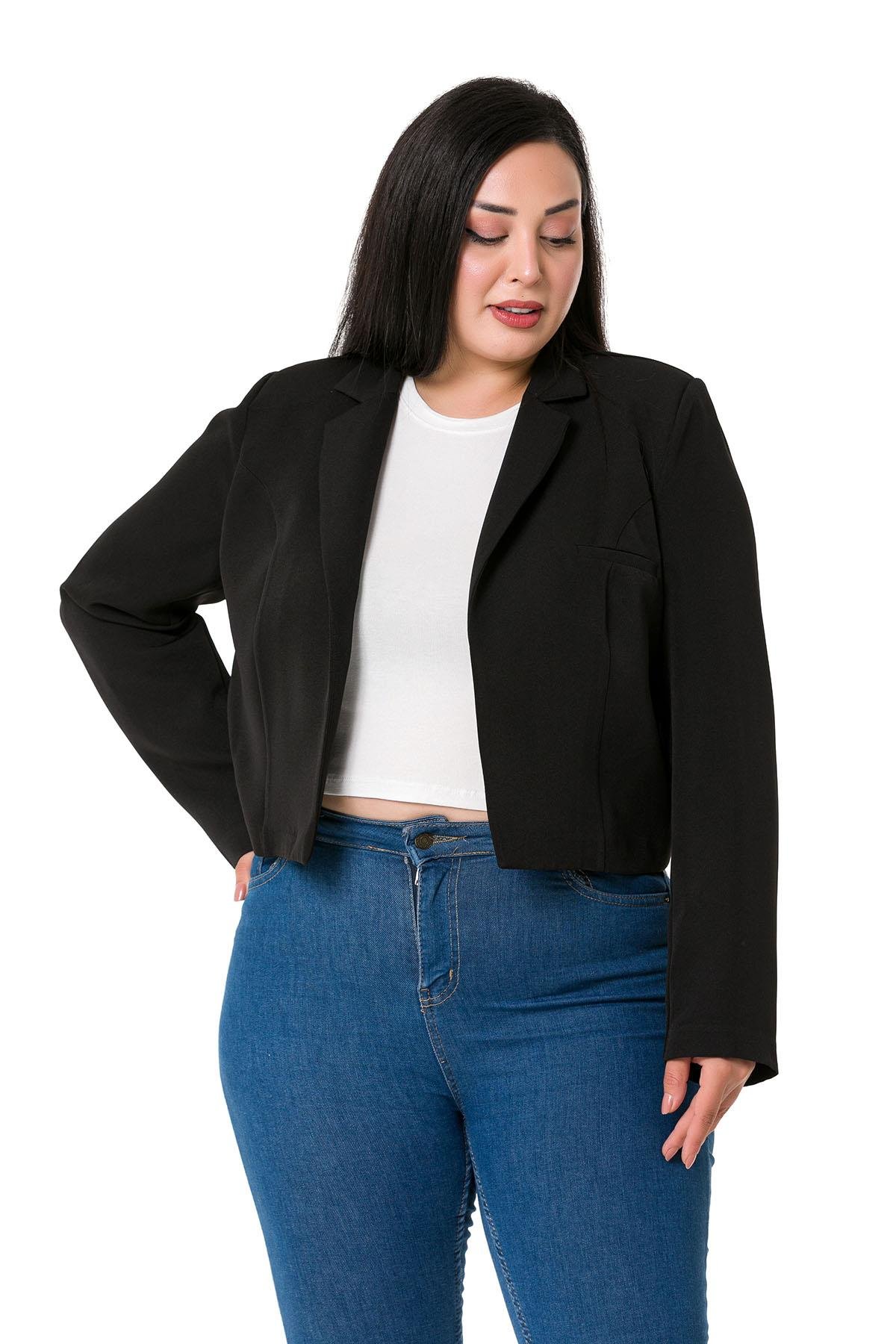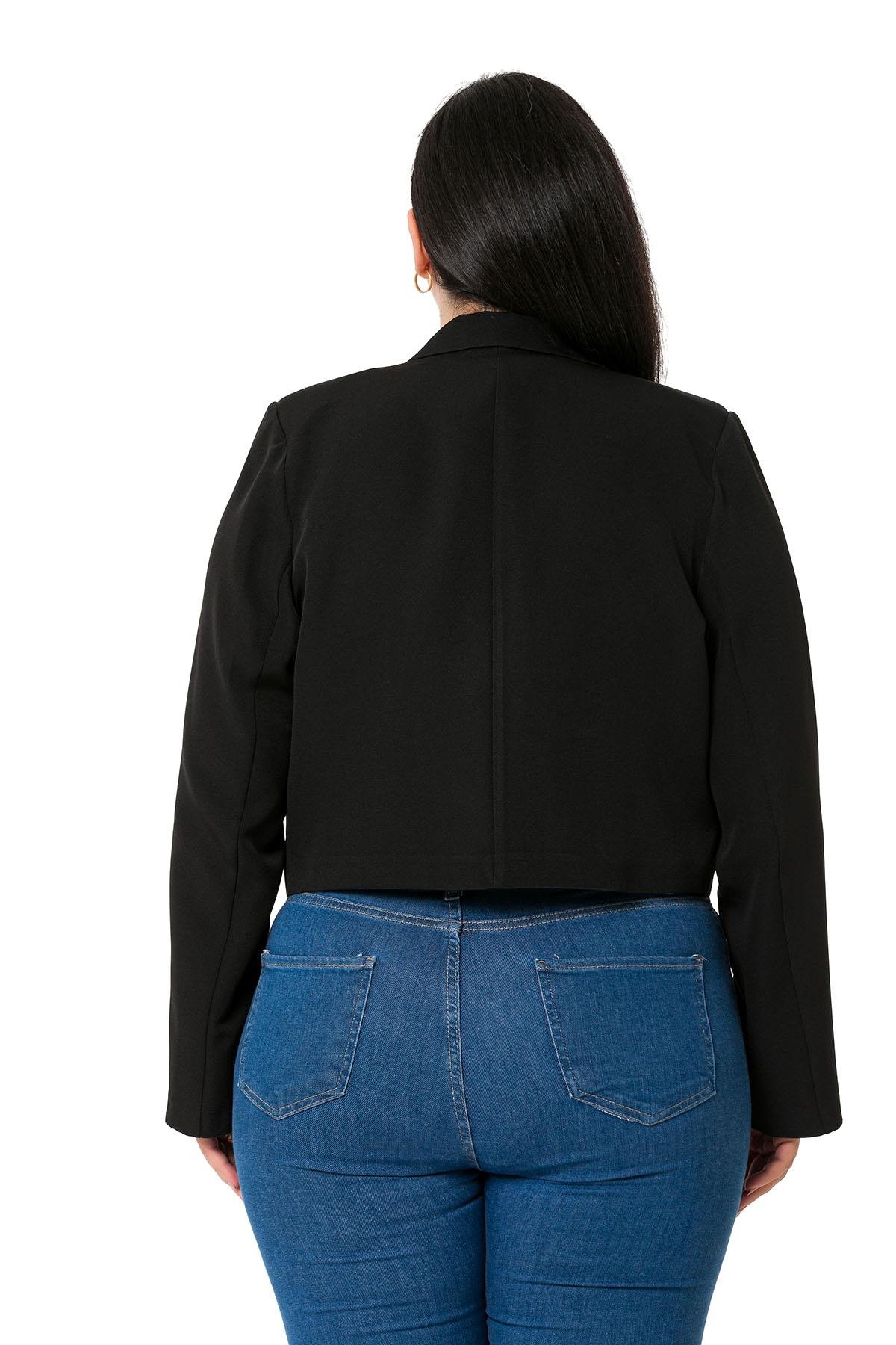 Plus size, buttonless, decorative pockets, padded, unlined short jacket.
