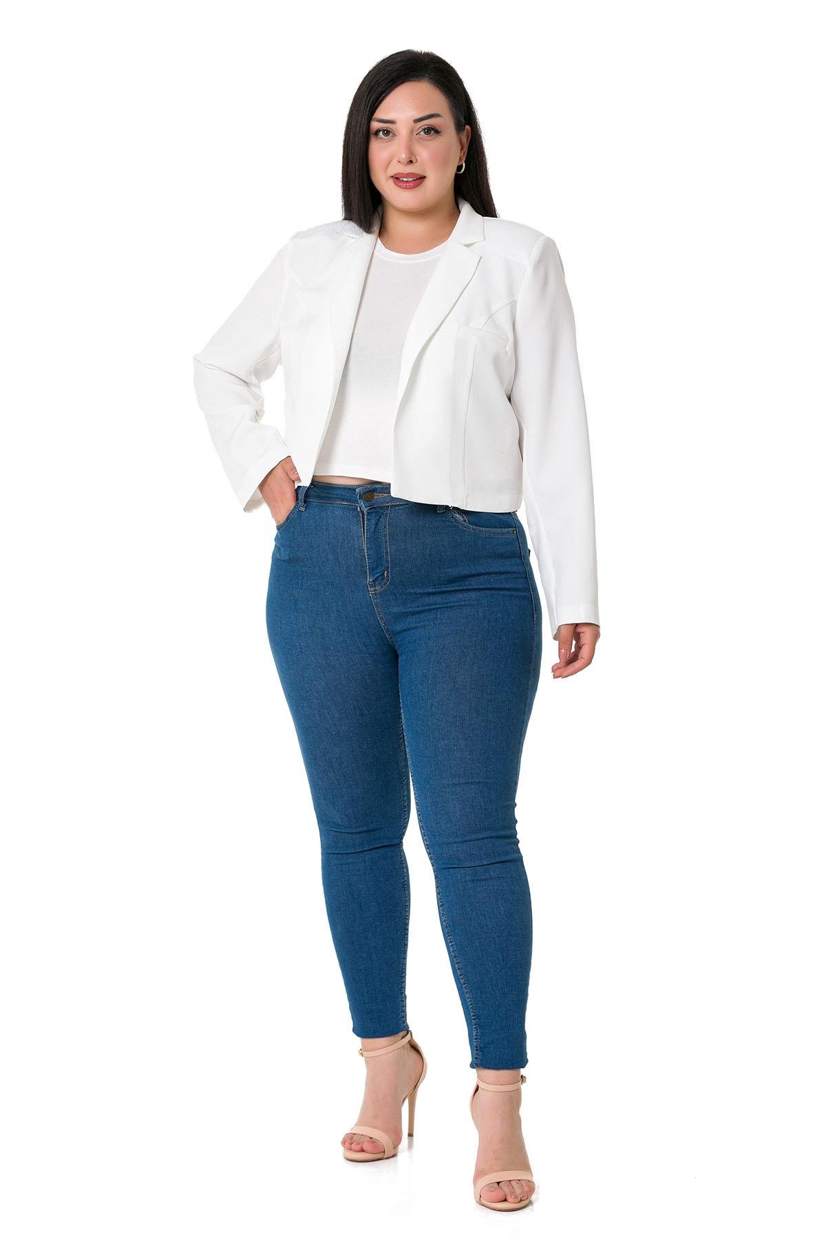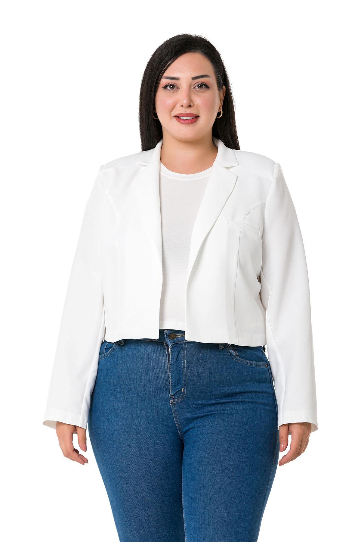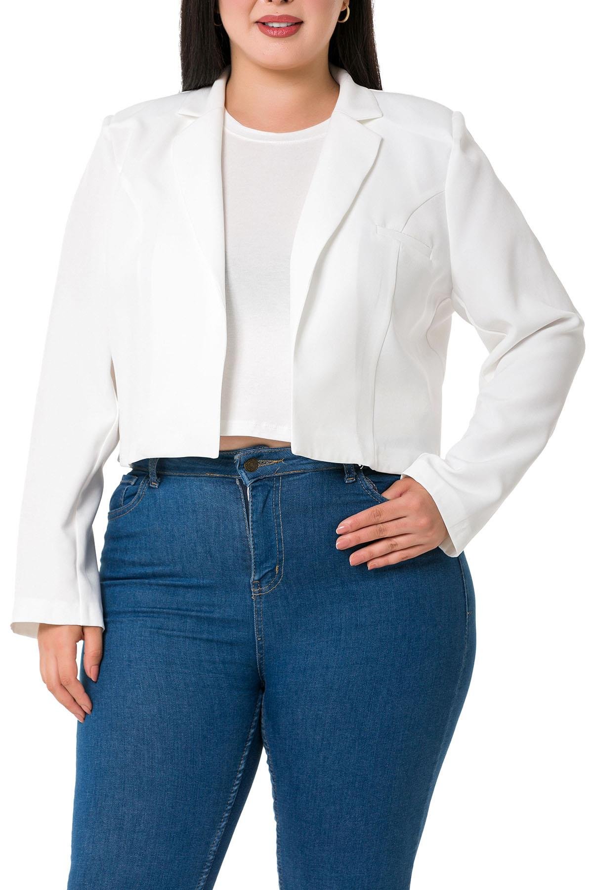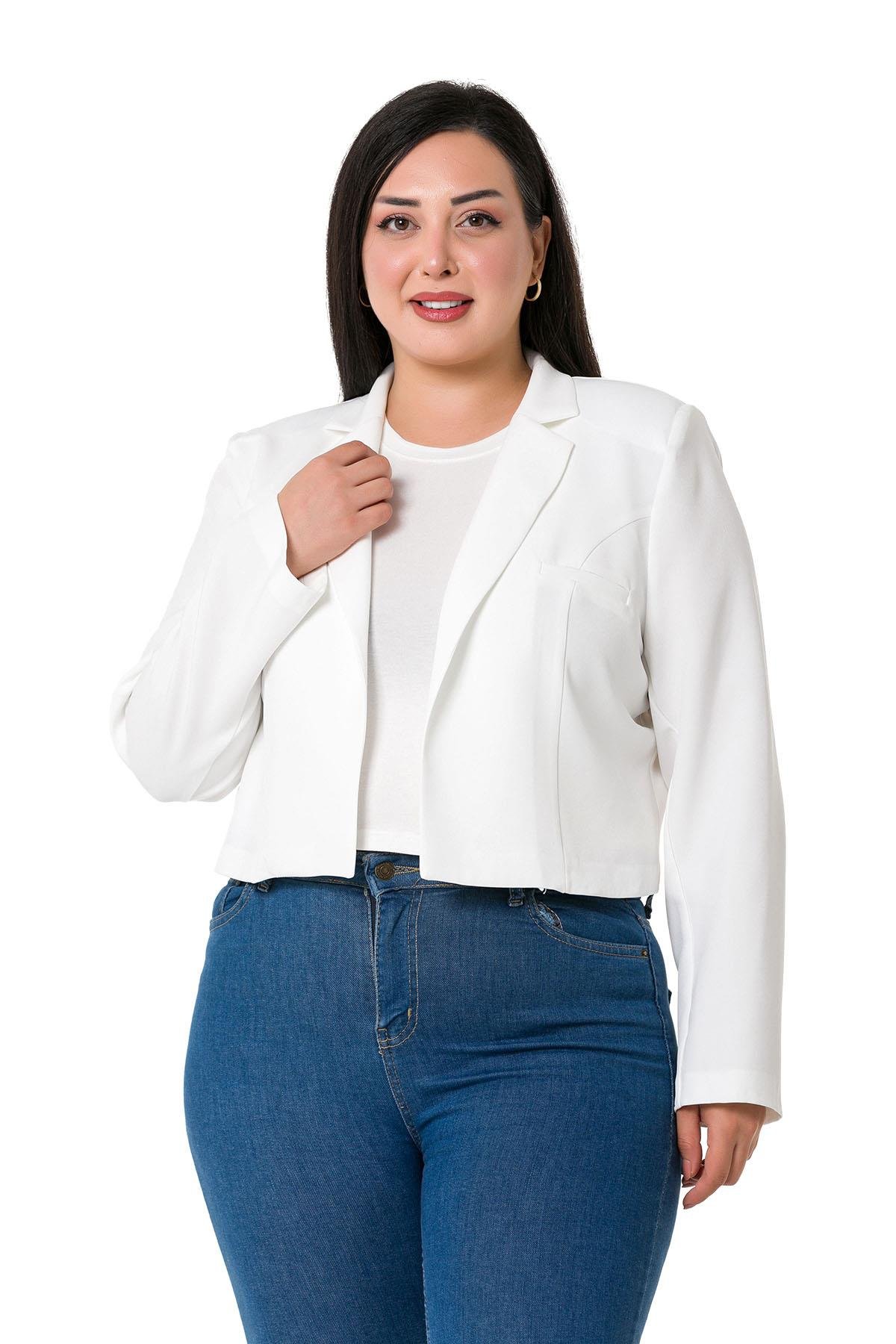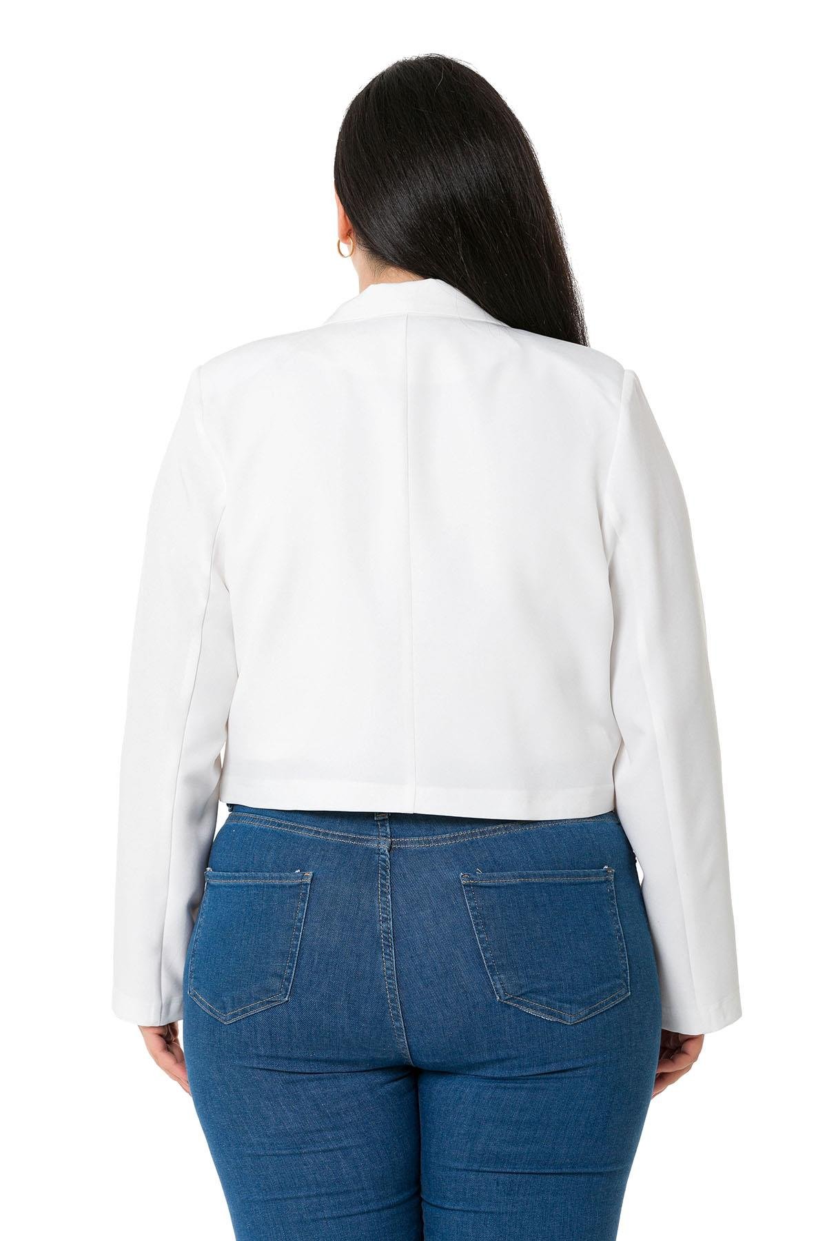 Plus Size Padded Unlined Short White Jacket with Decorative Pockets