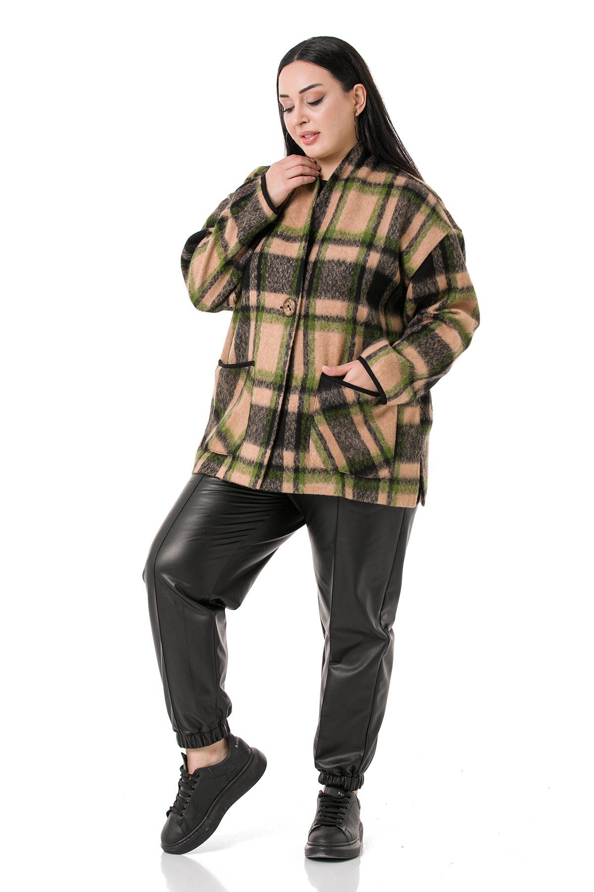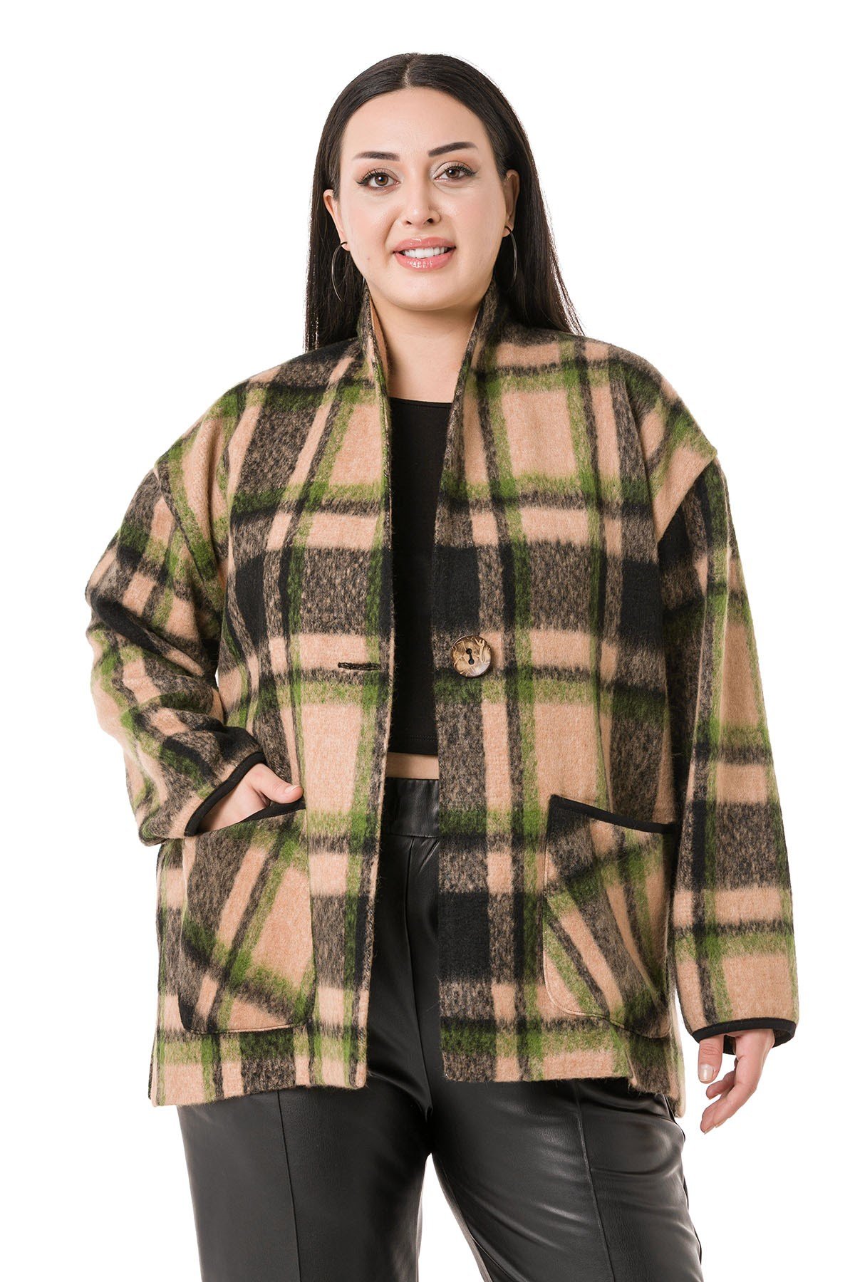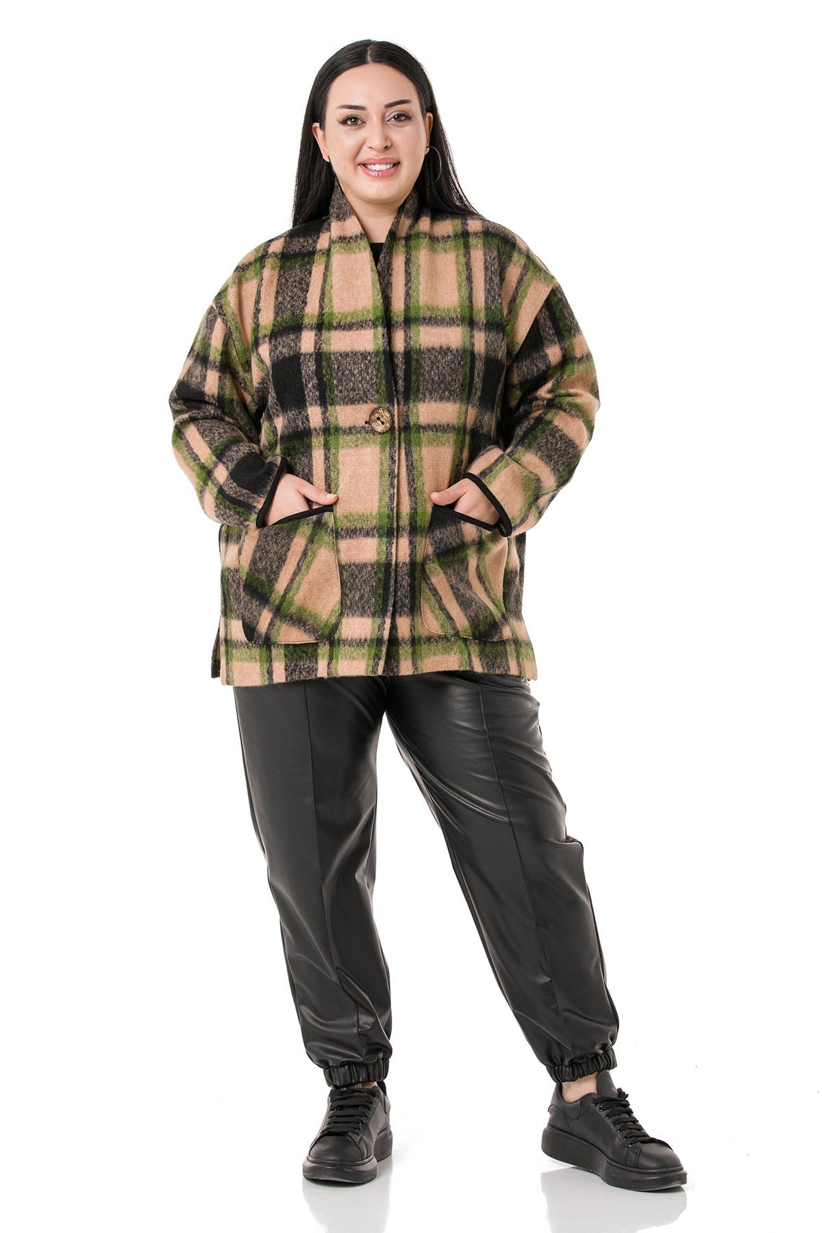 Plus size shawl collar, bag pockets, single button, cuffs and pockets, piping detail, side slits, unlined jacket.