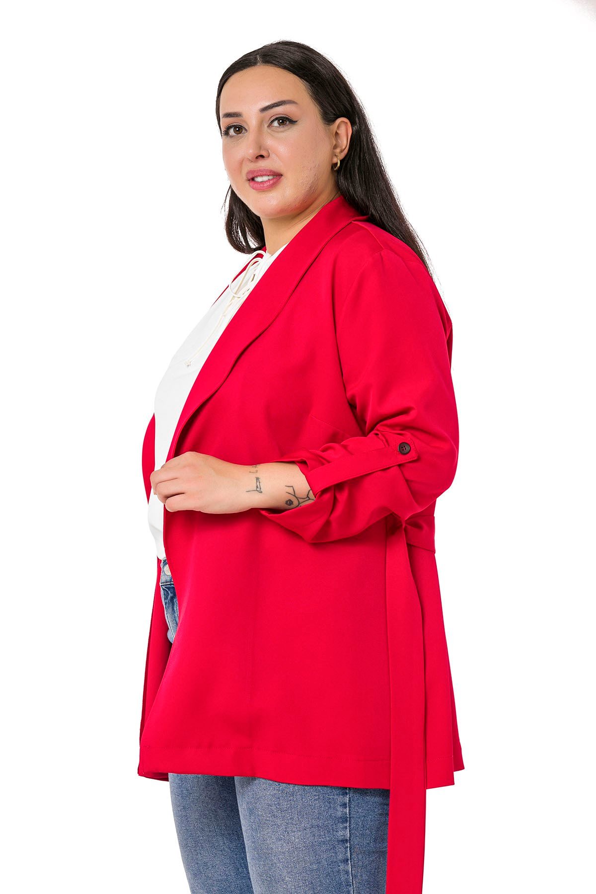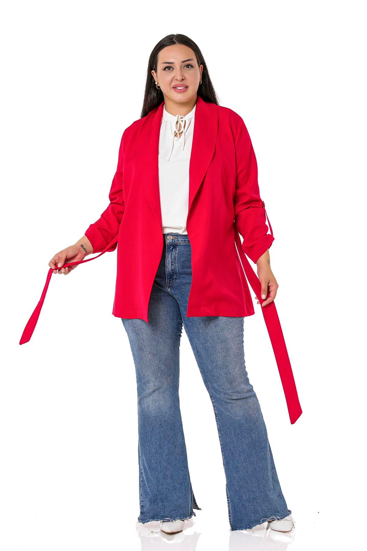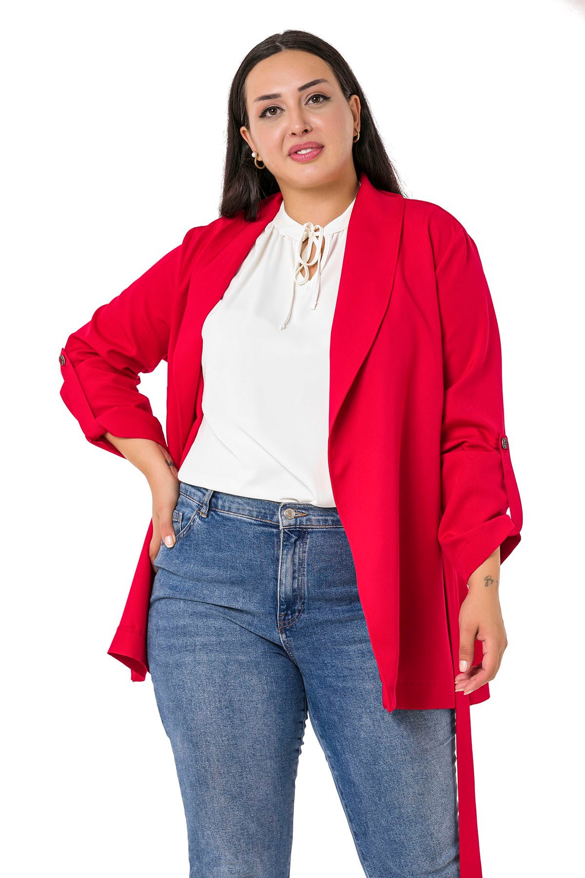 Plus size shawl collar, self-belted, folded sleeves, unlined jacket.