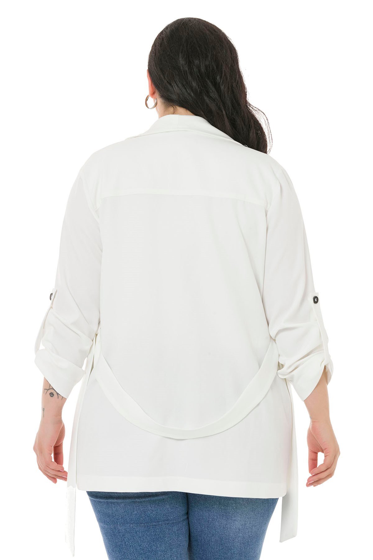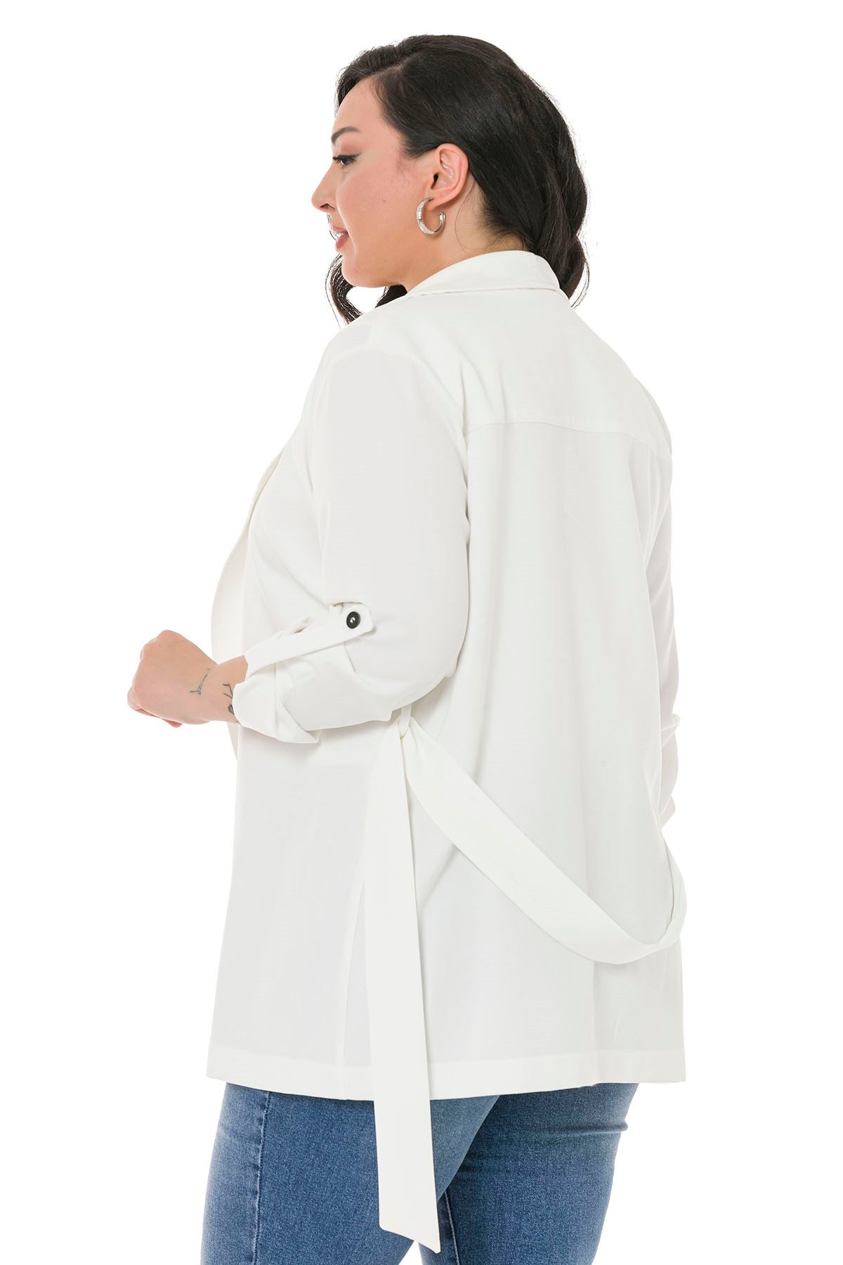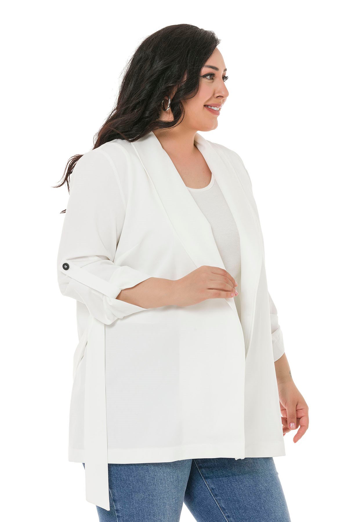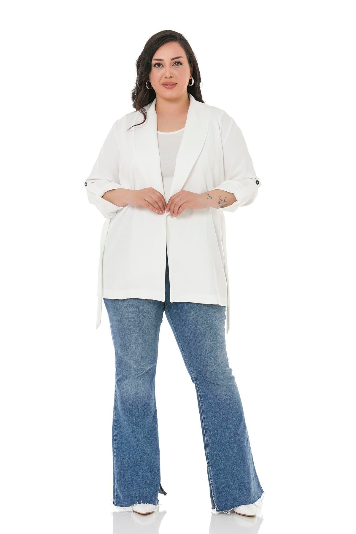 Plus Size Shawl Collar Self Belted Folded Sleeve White Jacket