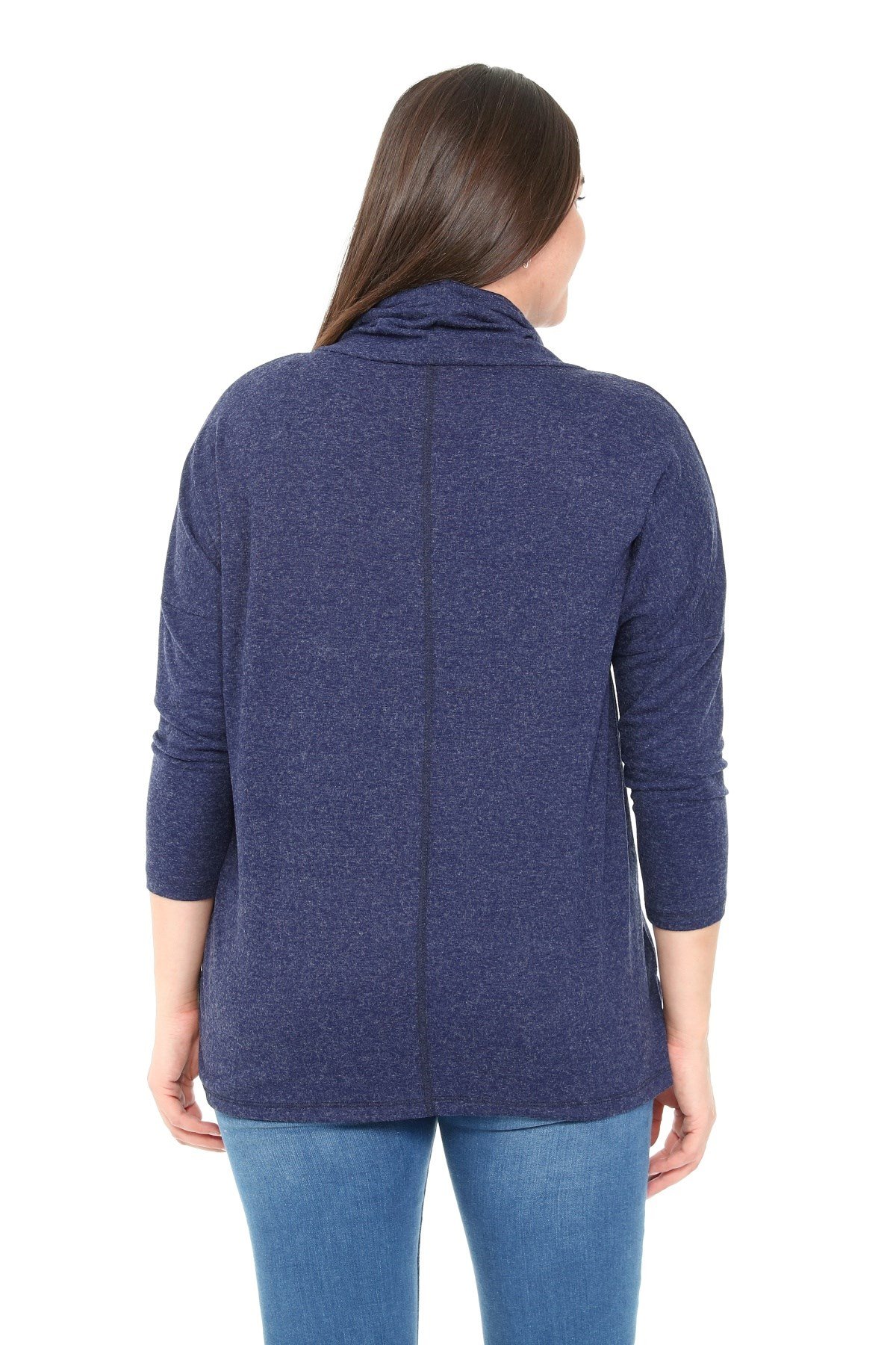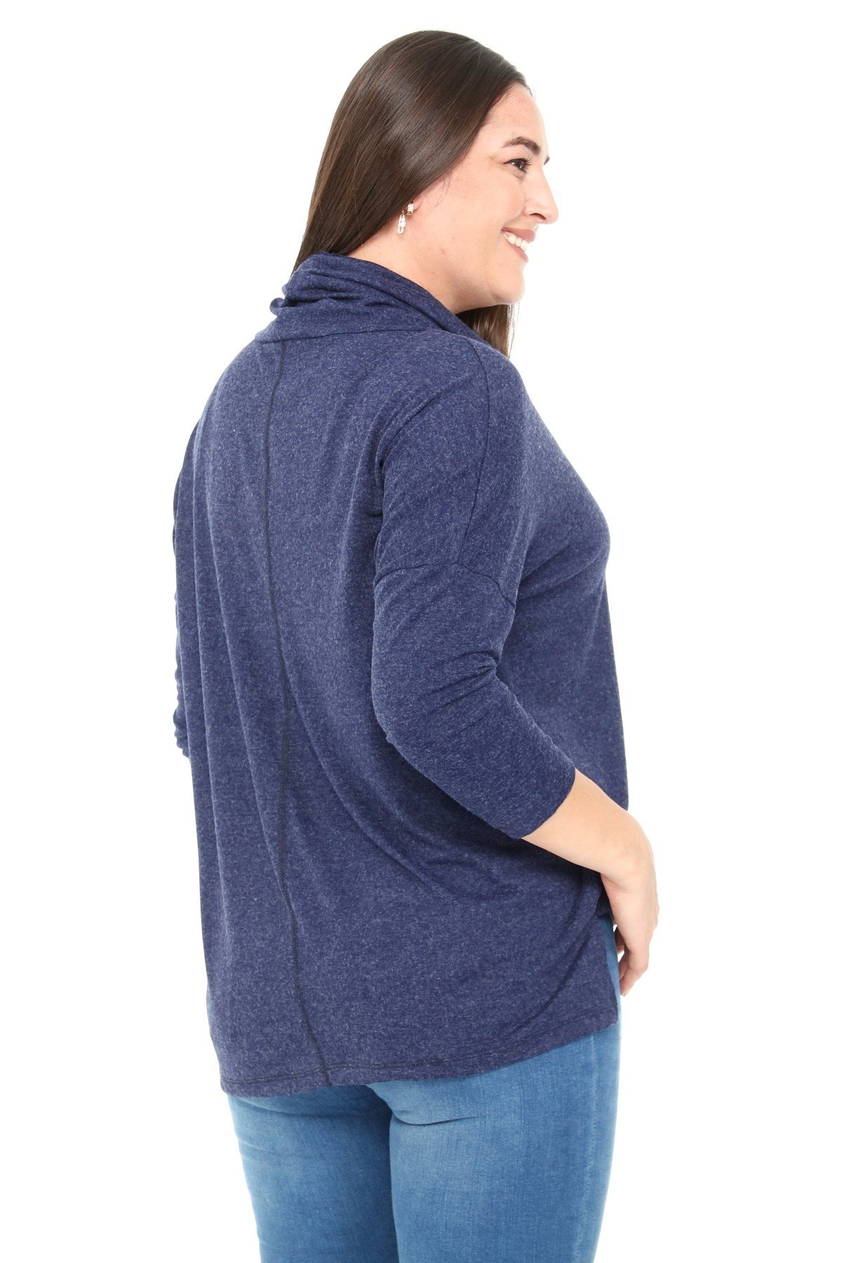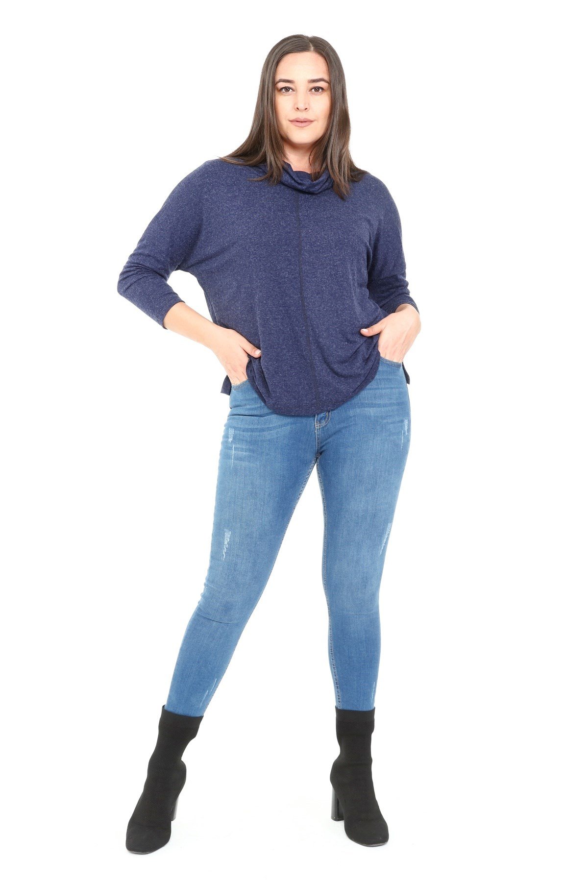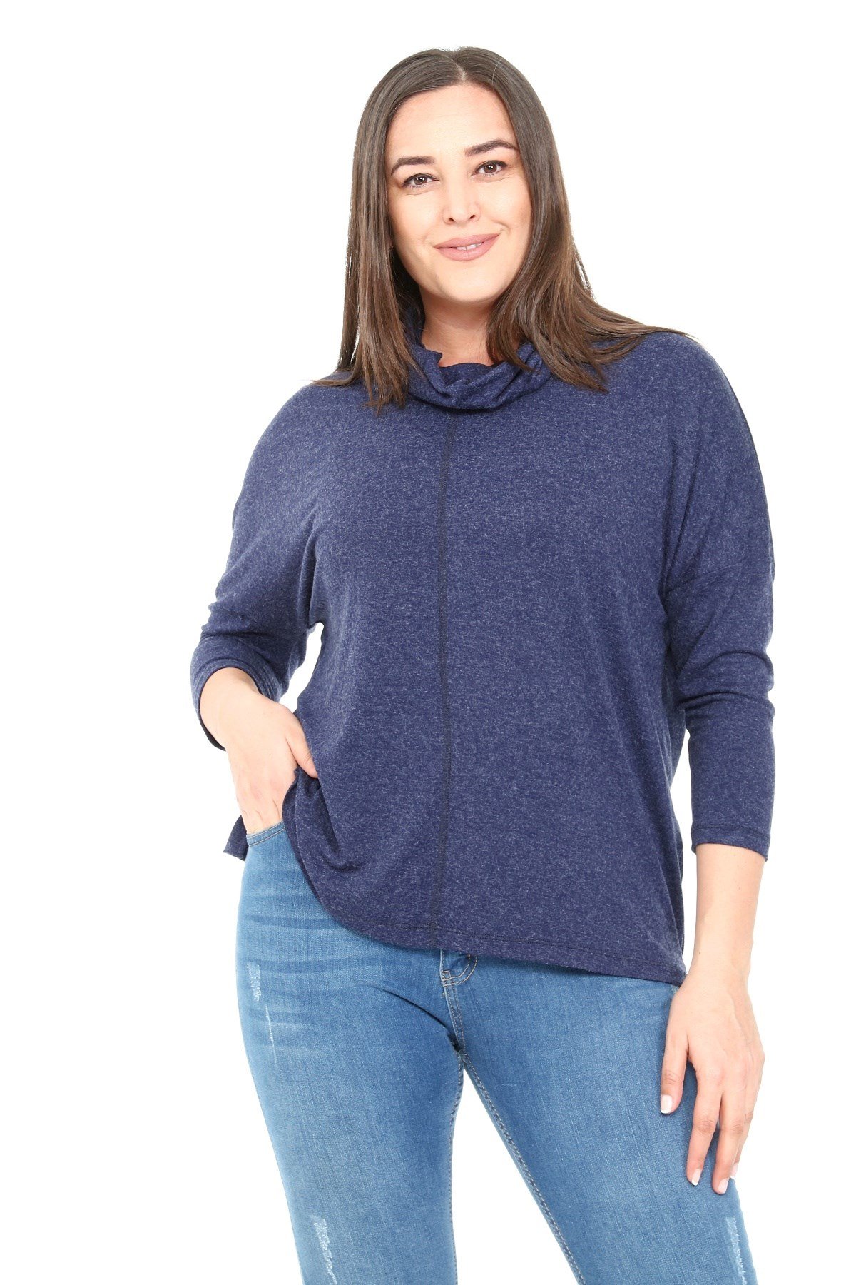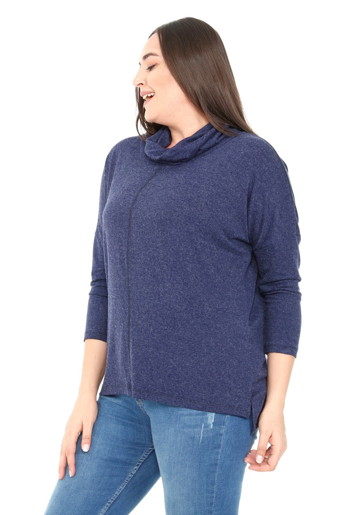 Large size wool viscose blouse with scoop neckline and slit detail.