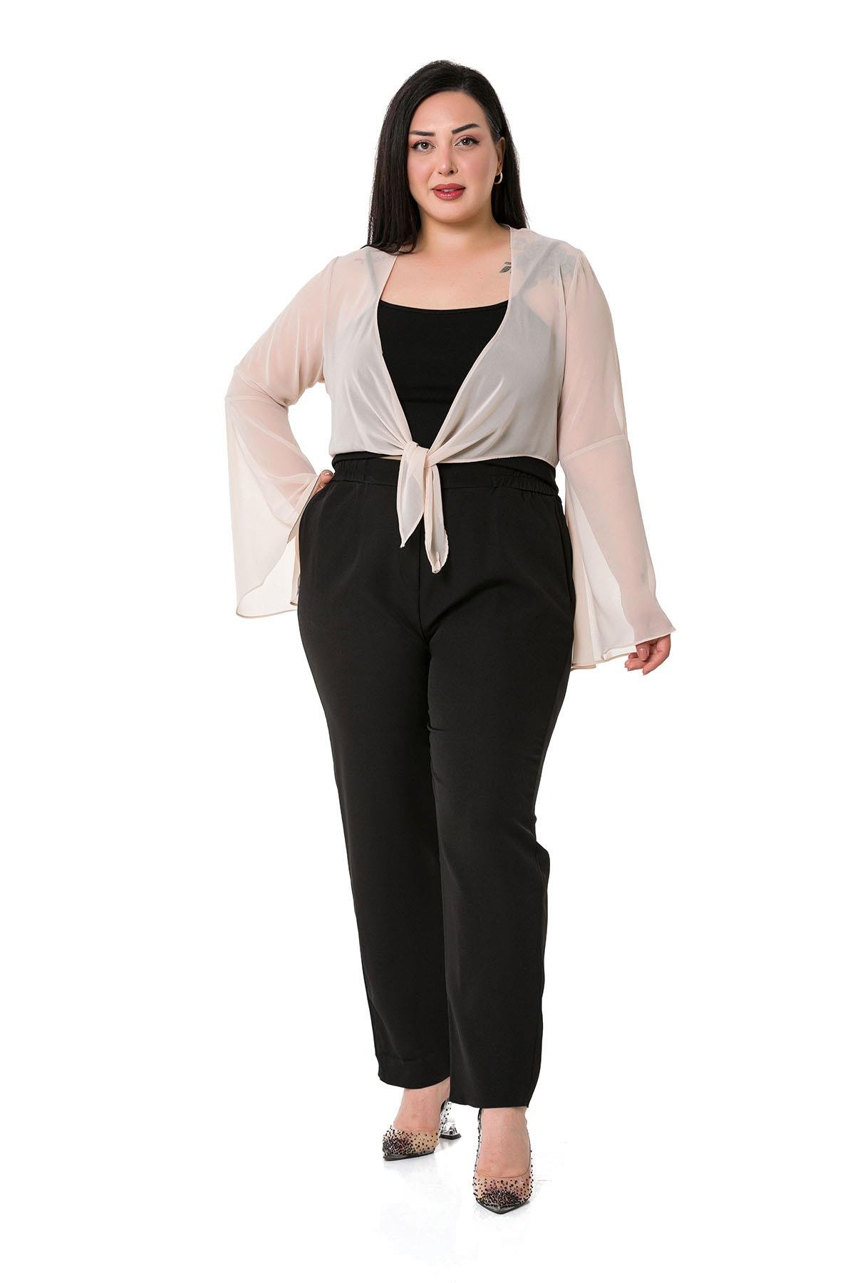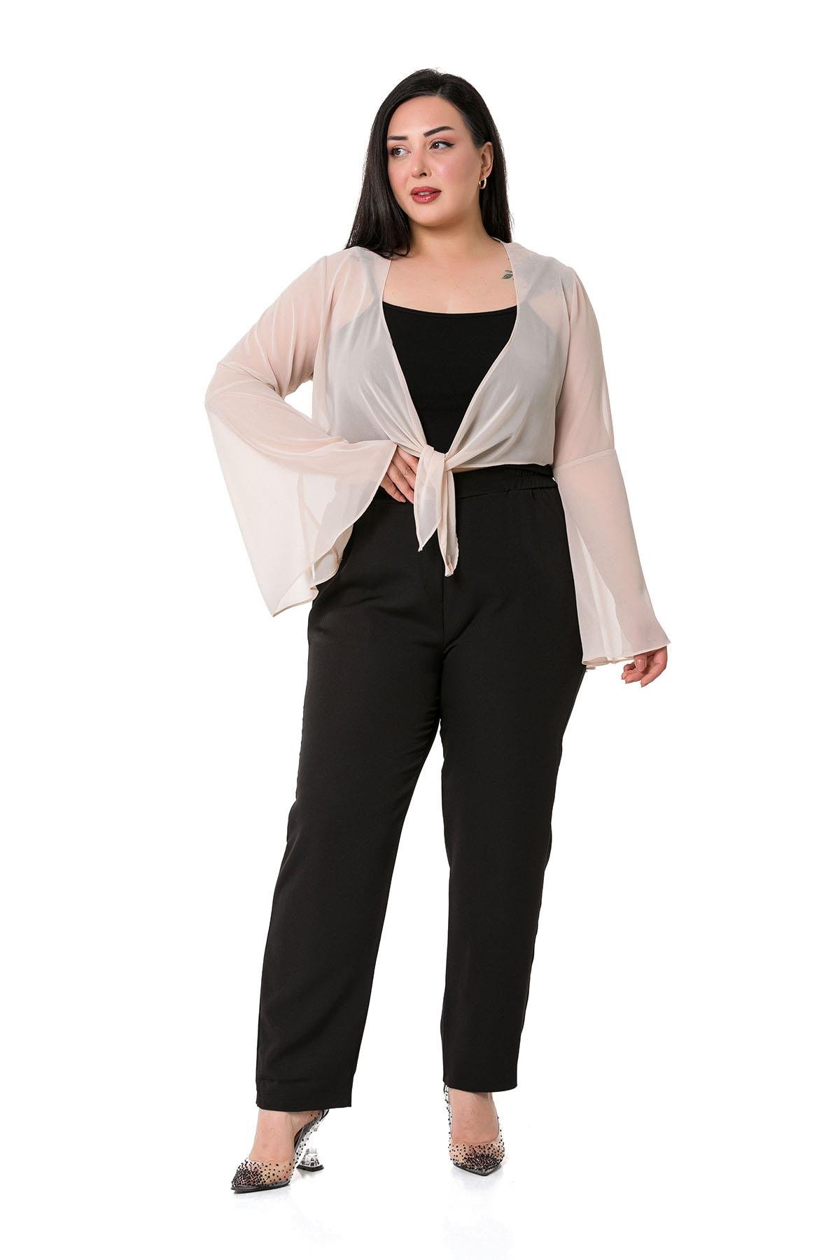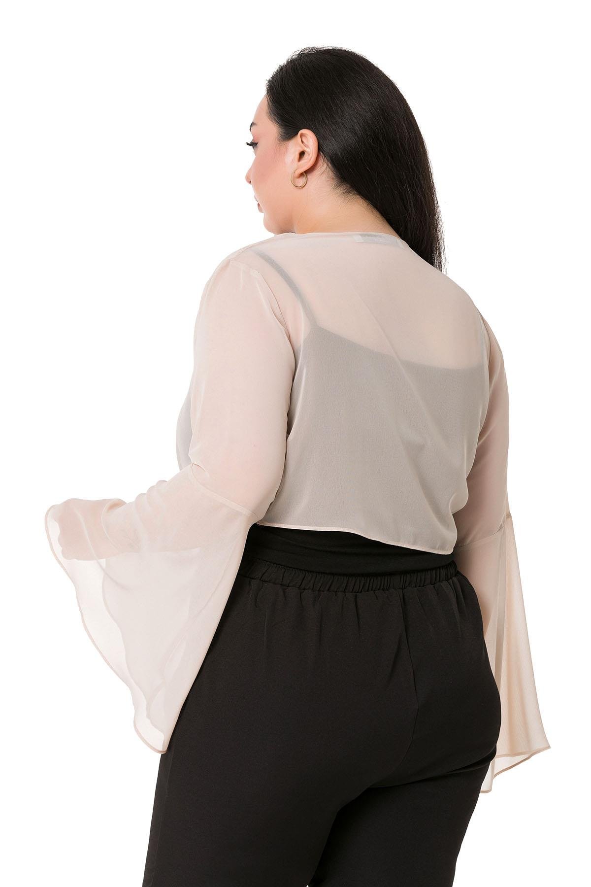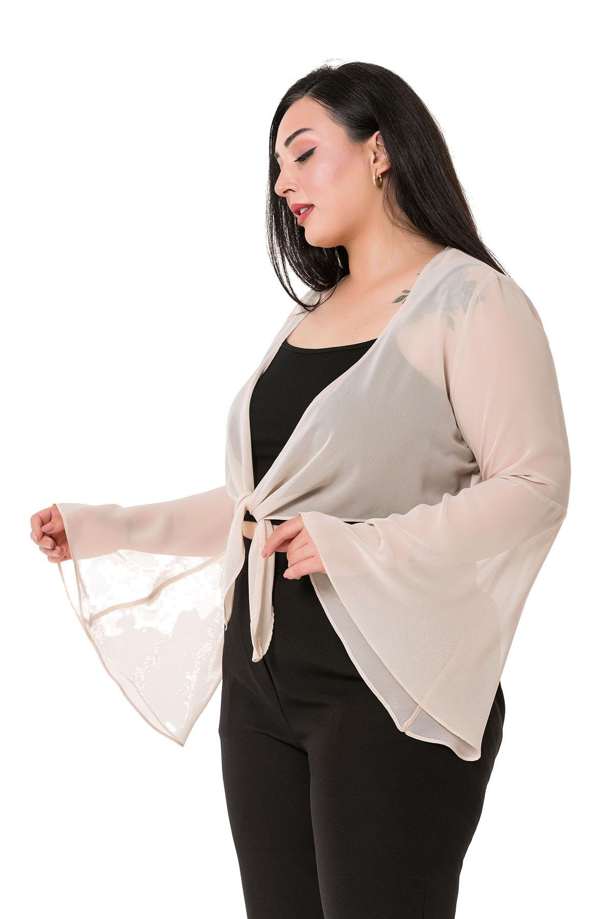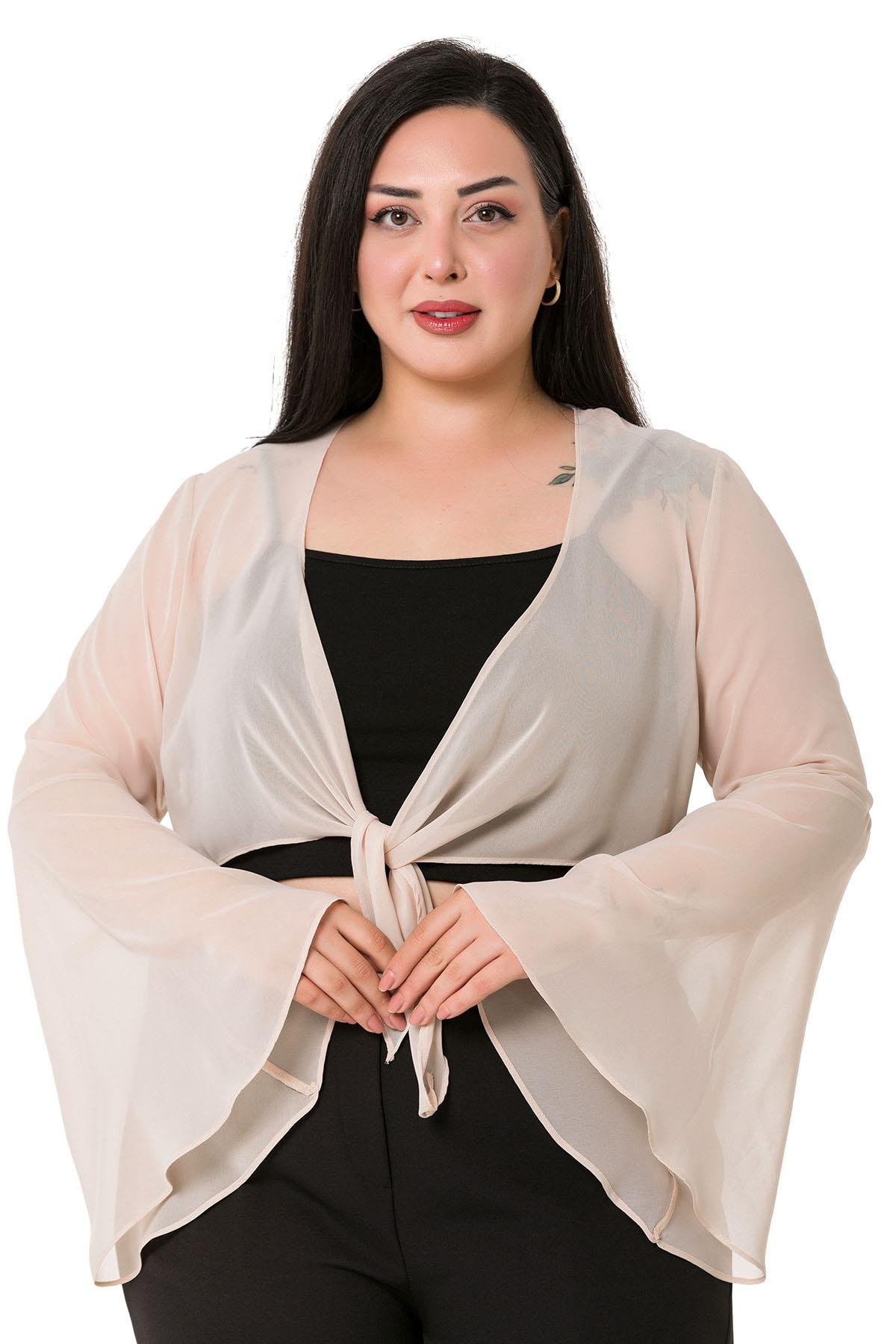 Plus Size Spanish Sleeves Tie Front Chiffon Beige Bolero