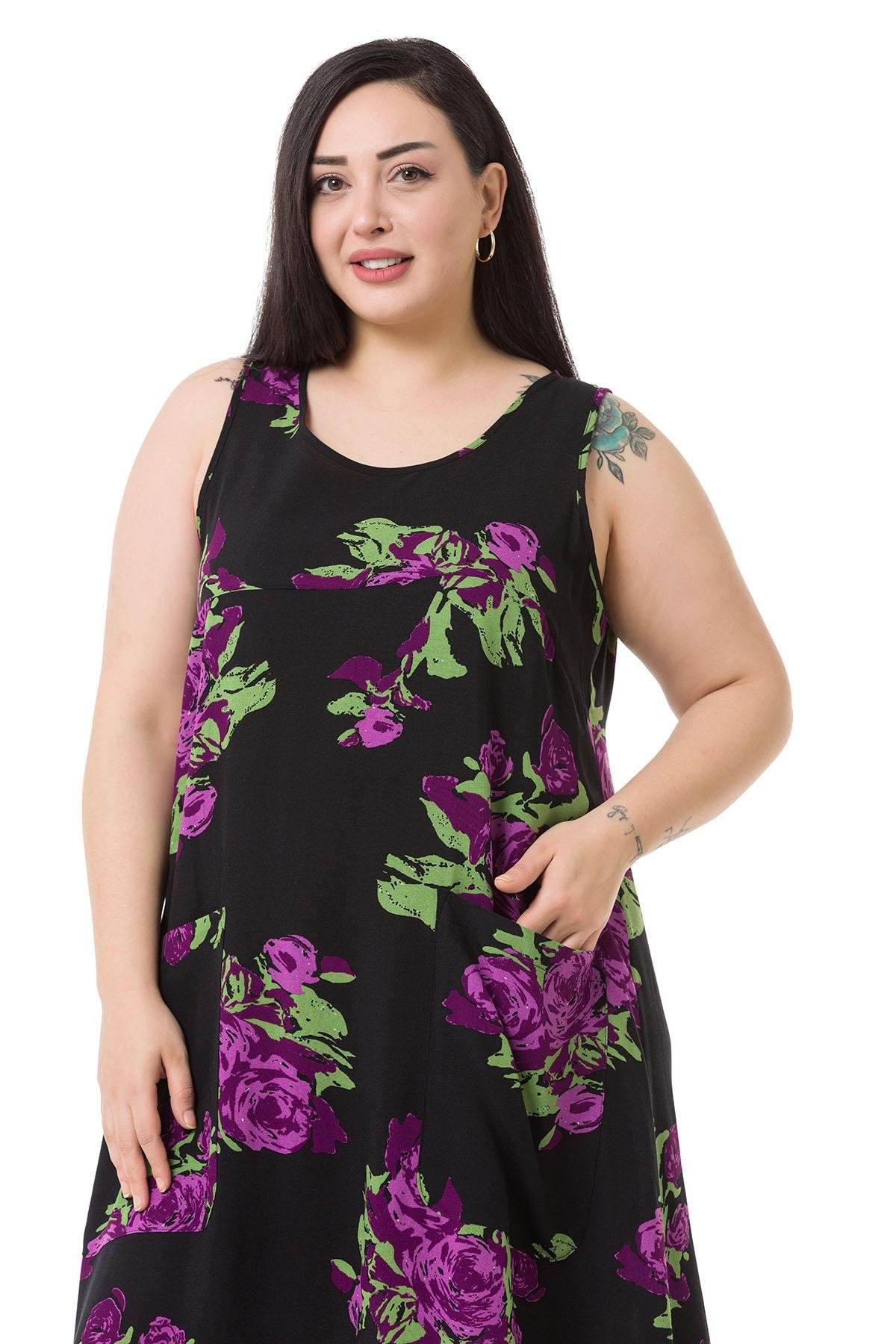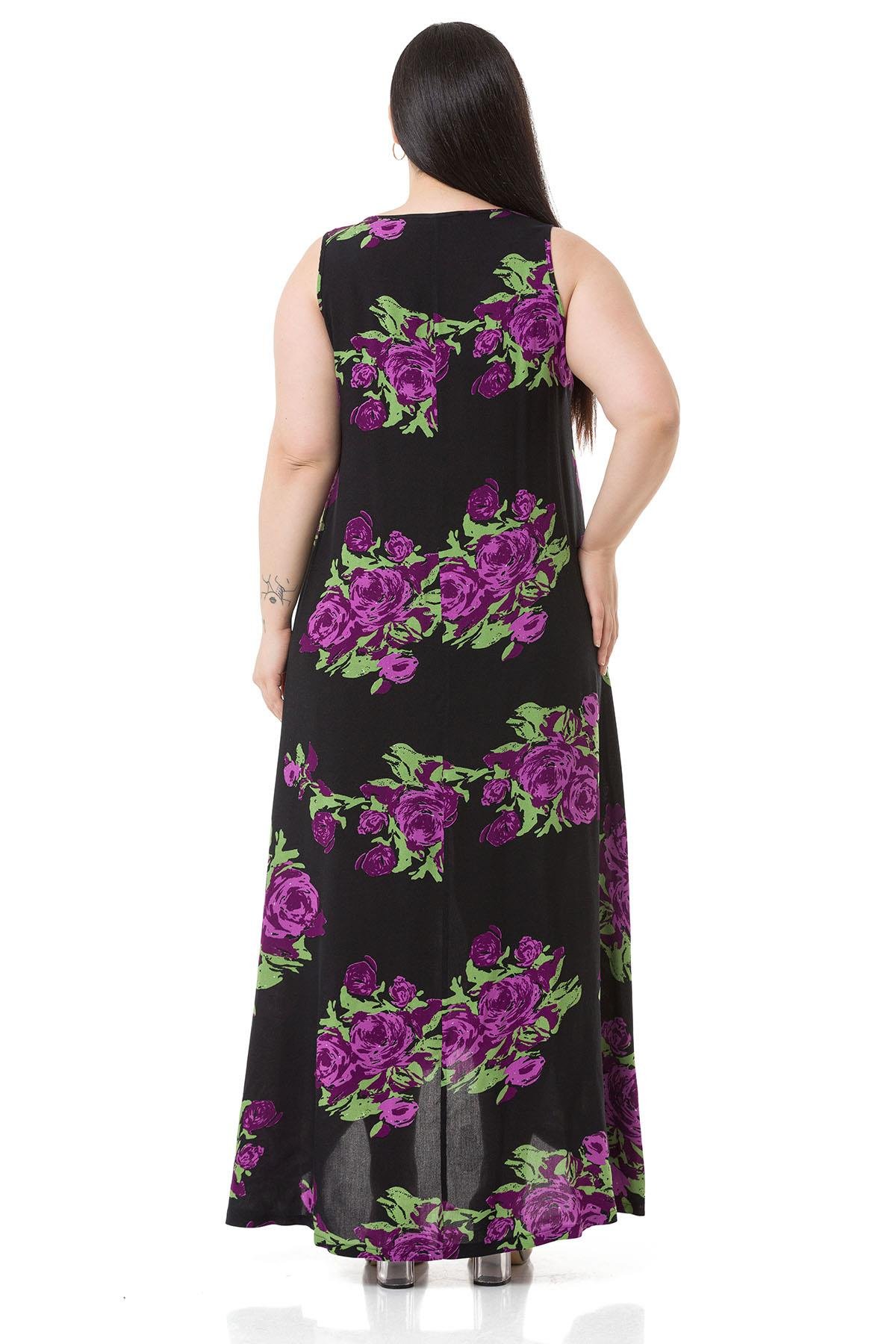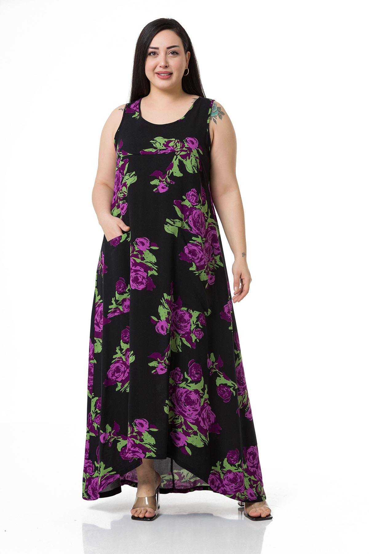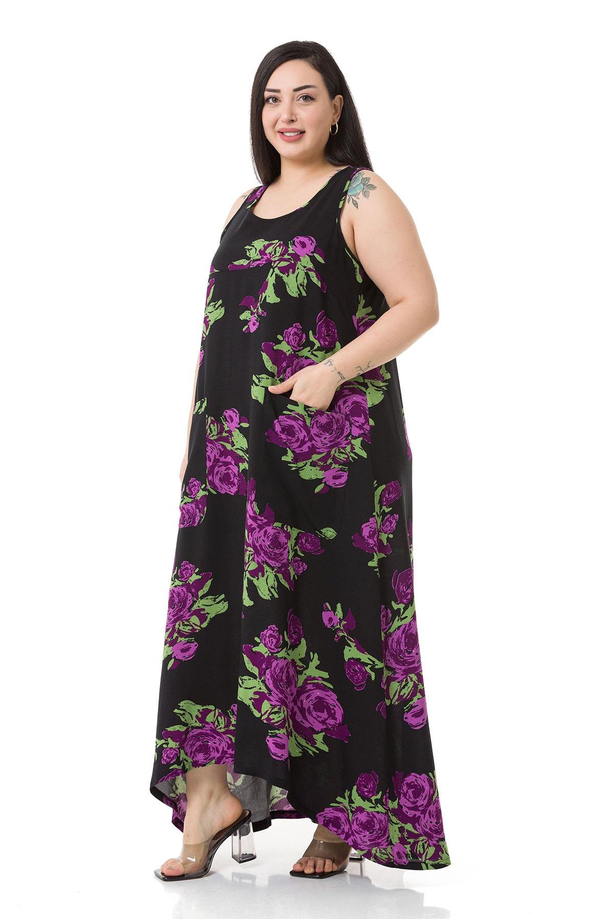 Plus Size Thick Strap Bag Pocket Lilac Floral Long Viscose Dress