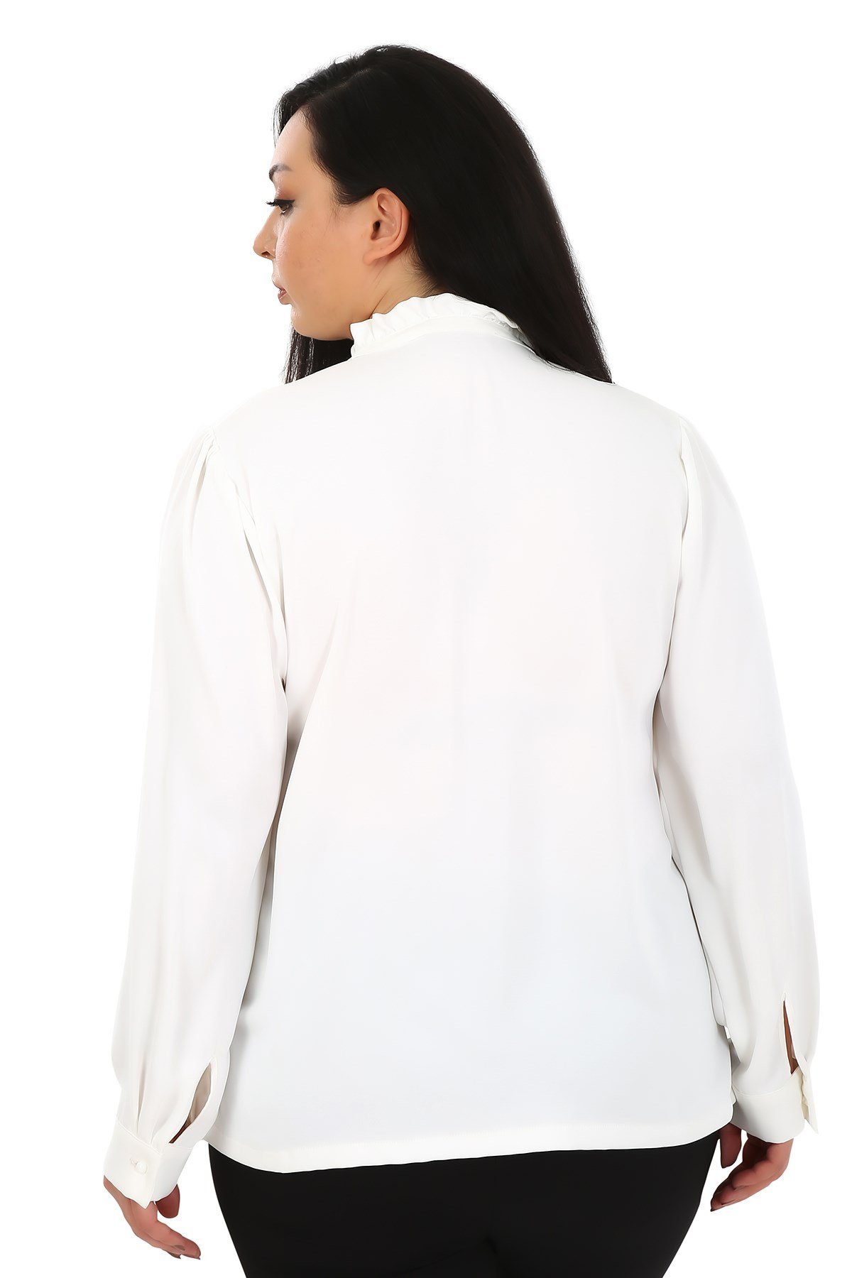 Plus Size White Blouse with Frill Detail on Collar and Chest and Slits on the Side