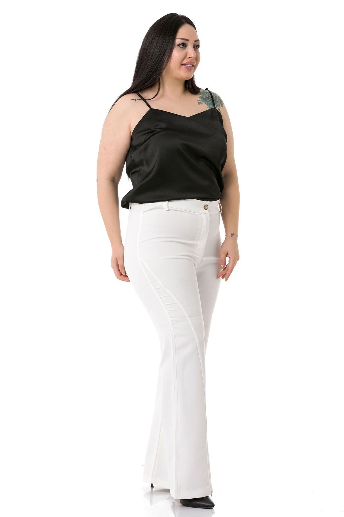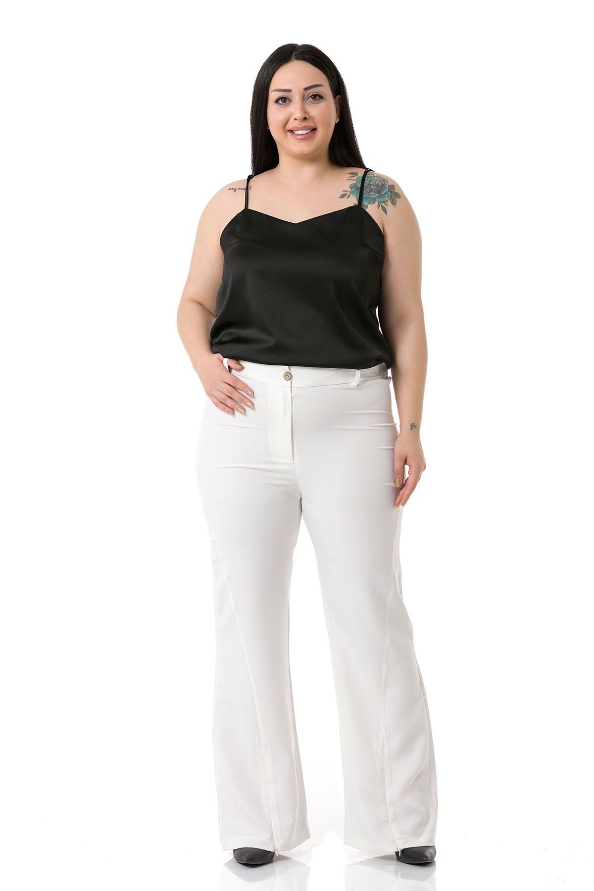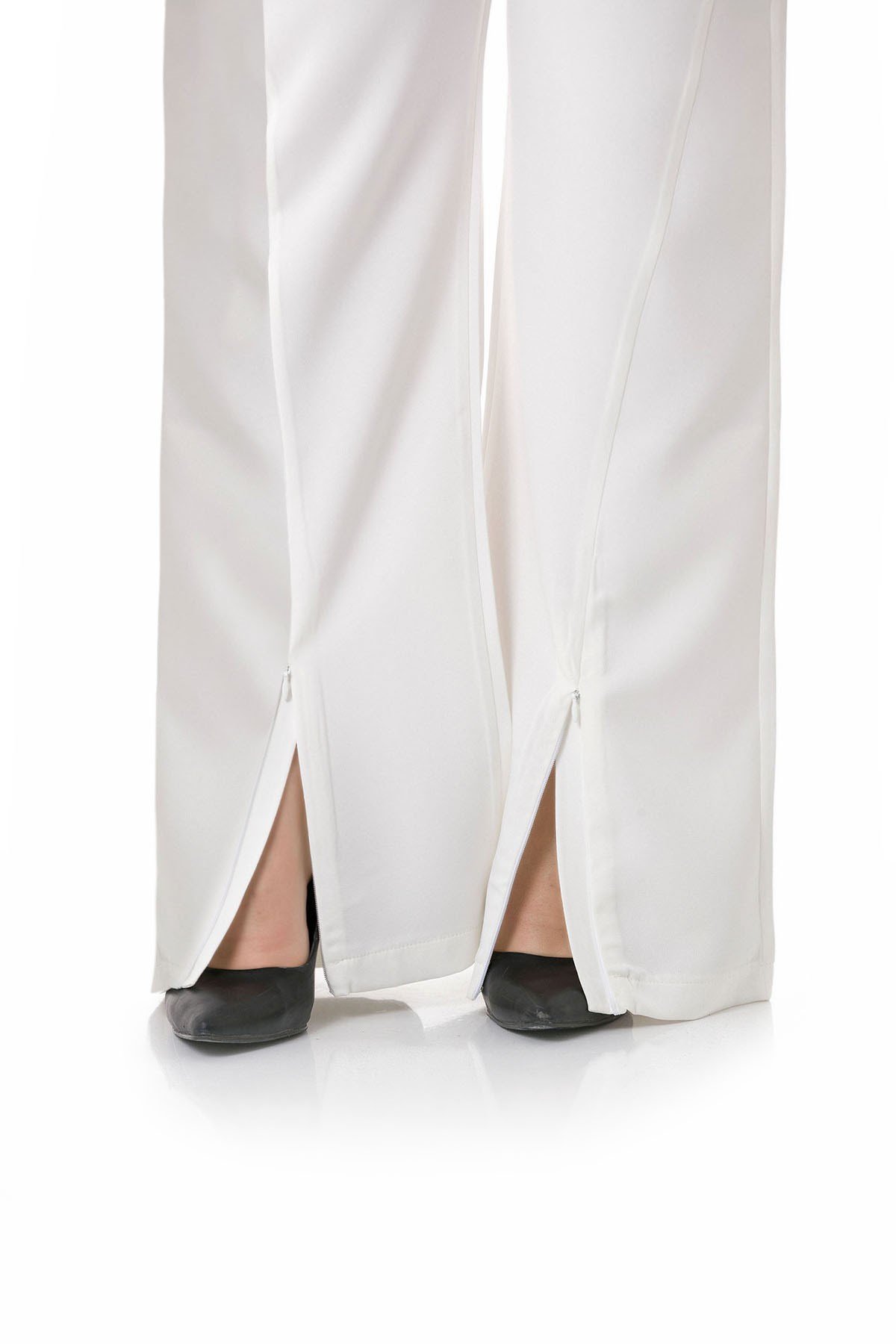 Plus Size White Trousers with Zippered Legs and Elastic Back Waist