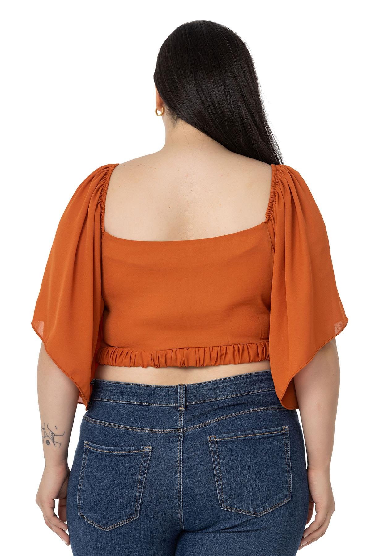Plus Size Wide Sleeve Elastic Waist and Gathered Crop Brick Blouse