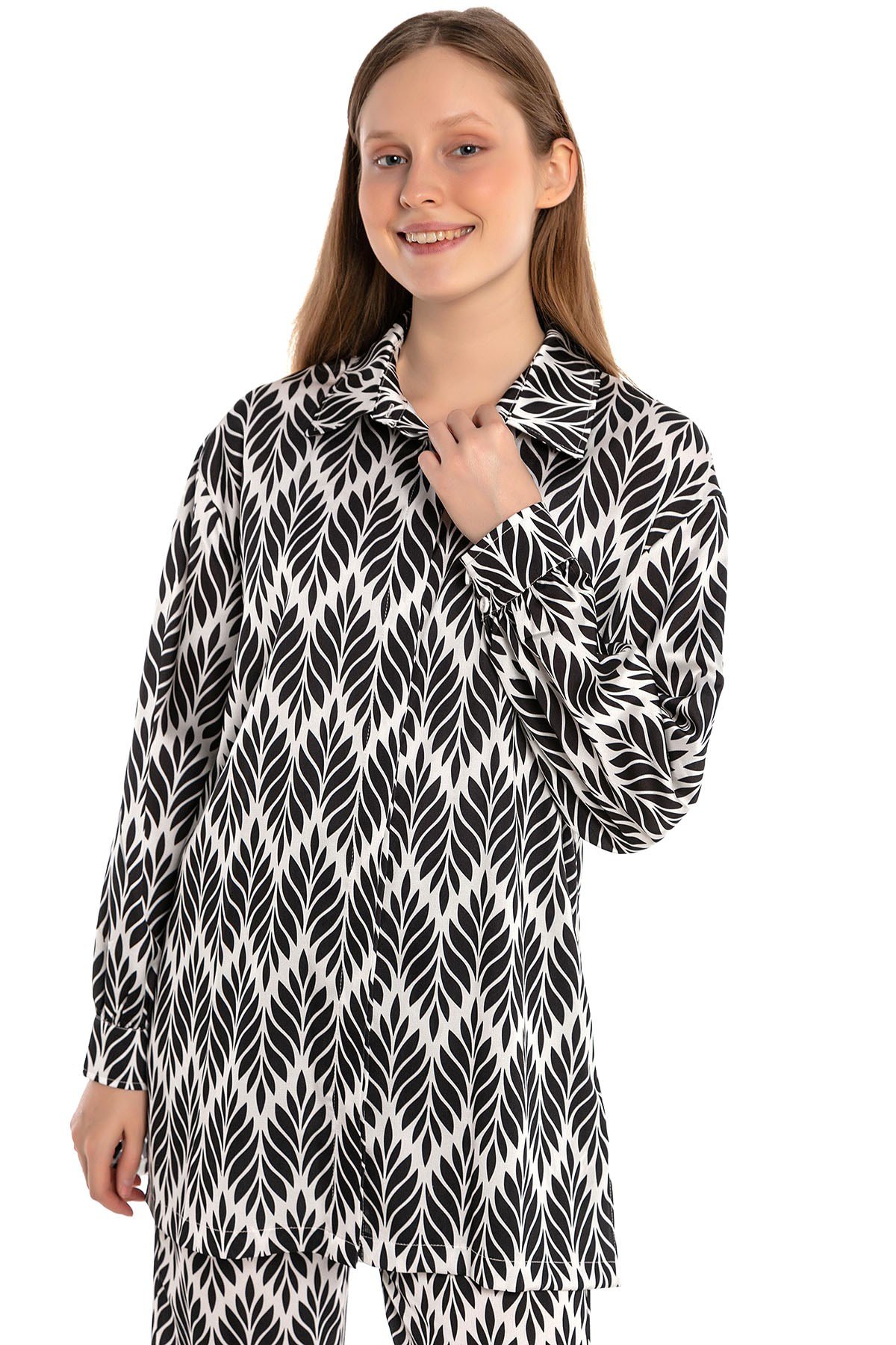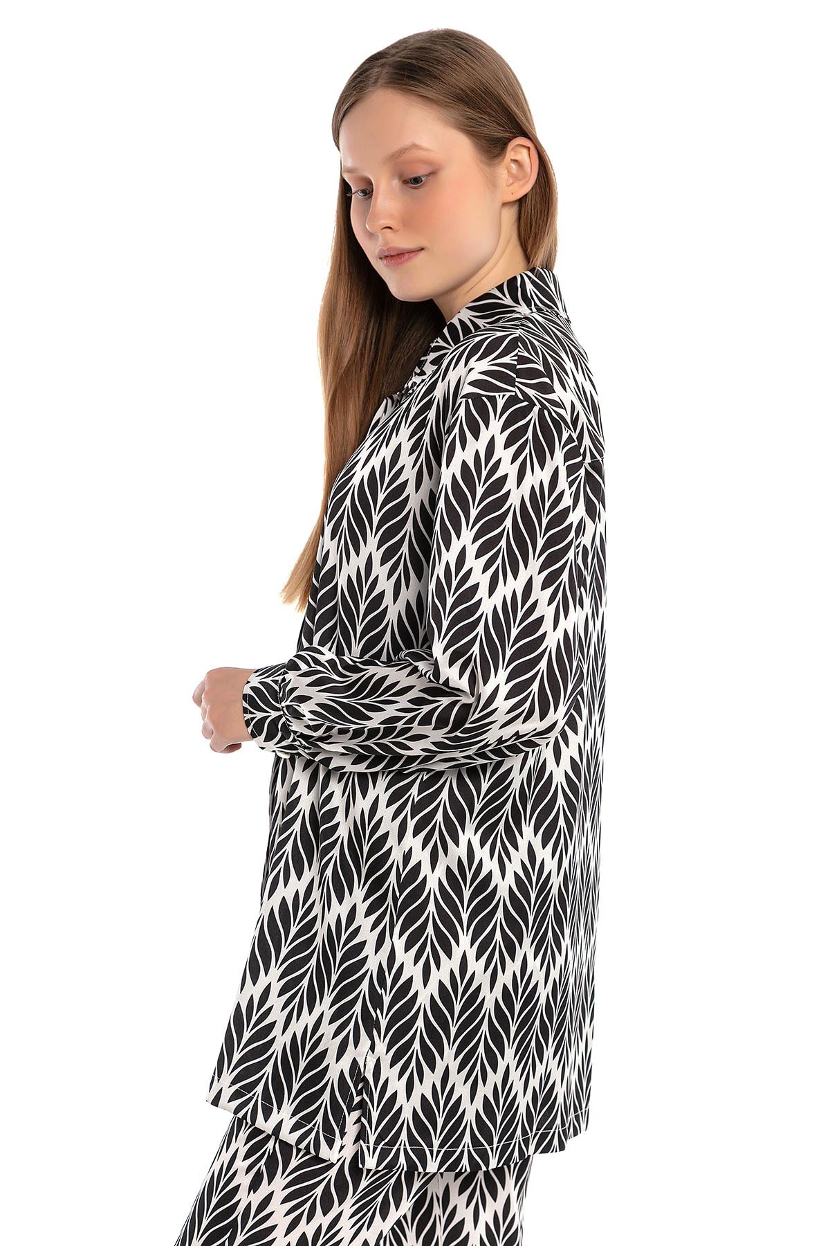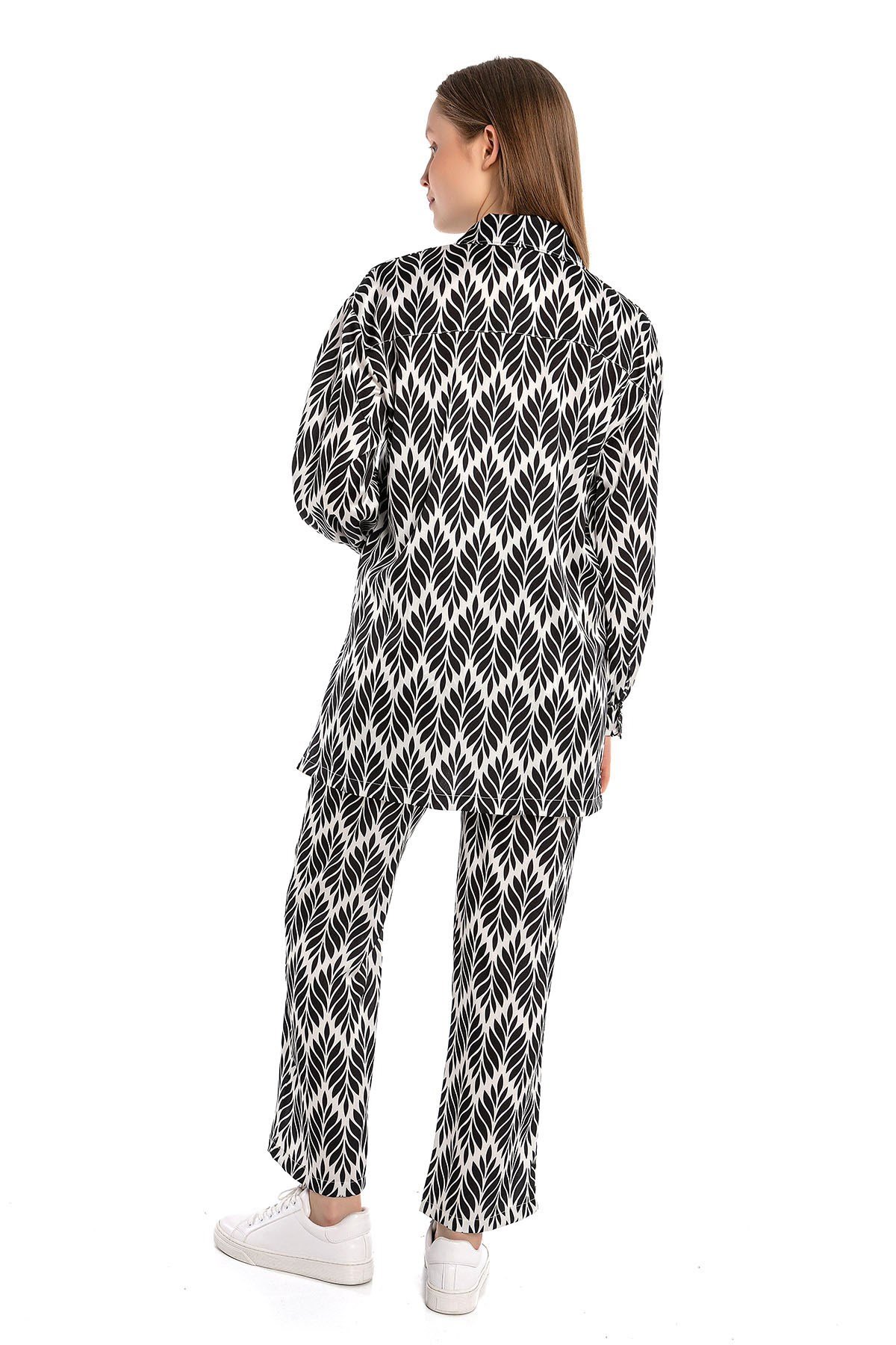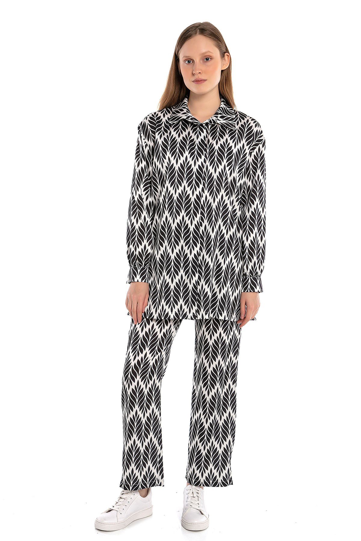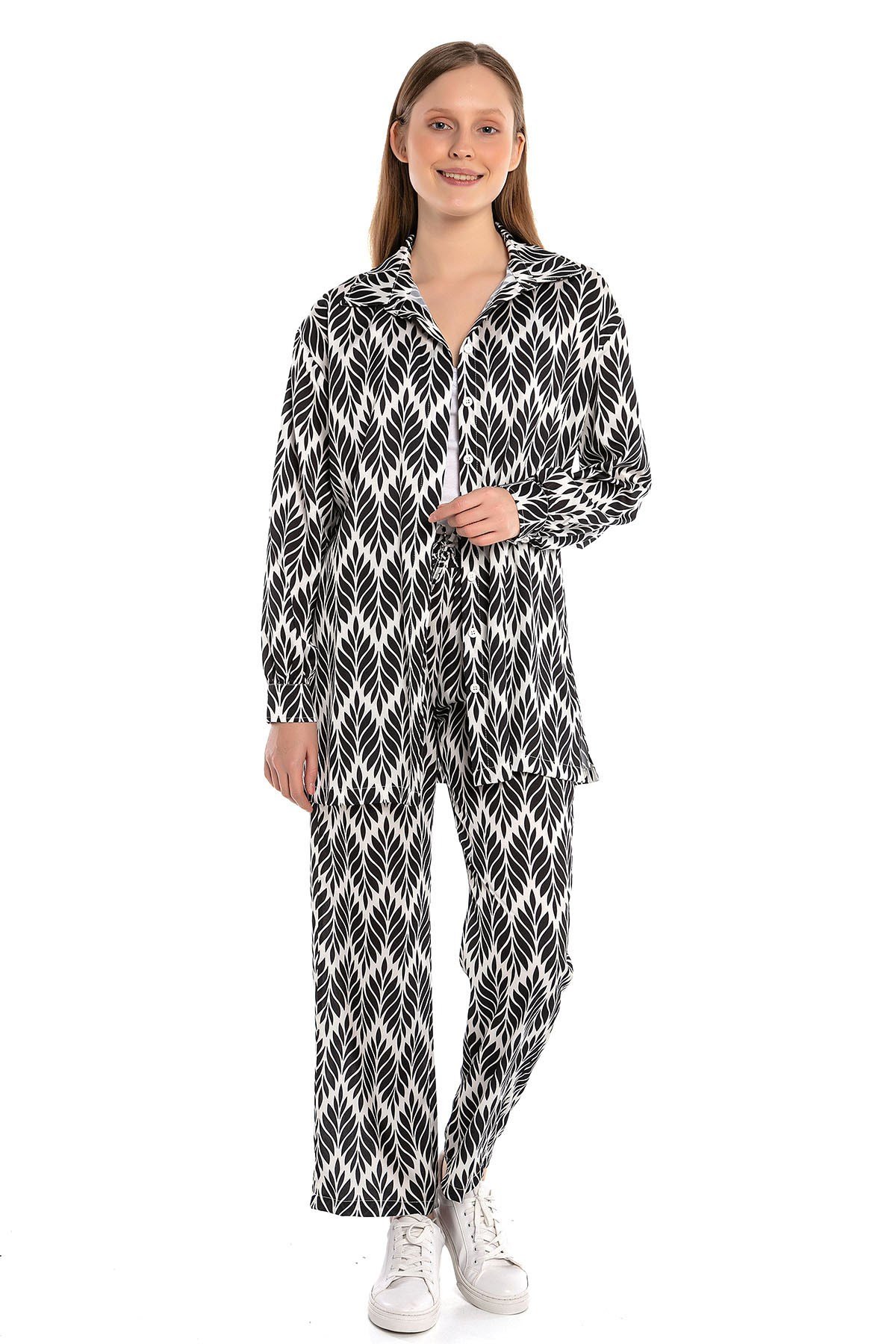 Women's Leaf Patterned Shirt and Trousers Black Suit